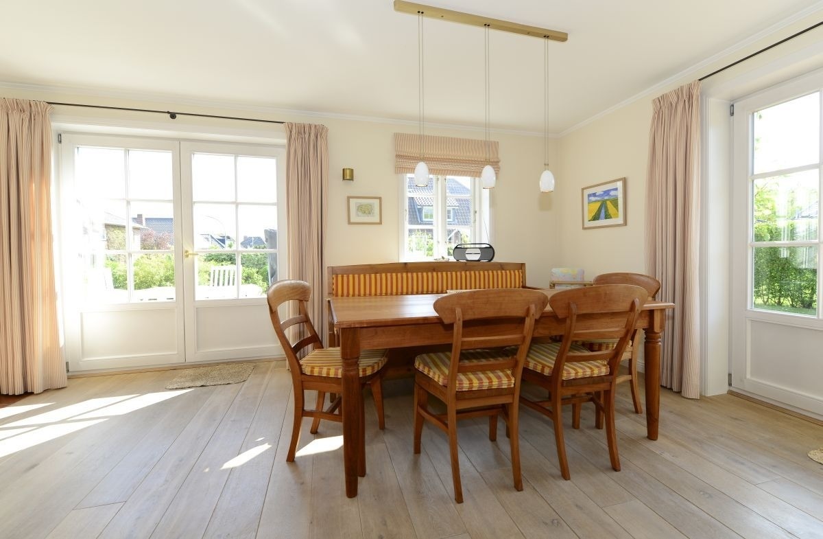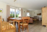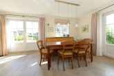 Lassen Sie sich von lichtdurchfluteten Räumen verzaubern! Der großzügige Wohn- und Essbereich ist perfekt für gesellige Stunden, während die offene Wohnküche das Herz jedes Hobbykochs höher schlagen lässt. Im Wohnzimmer können Sie es sich auf der bequemen Sitzgruppe gemütlich machen, während der große Esstisch Raum für fröhliche Runden bietet. Der friesische Kachelofen sorgt für eine behagliche Atmosphäre und lädt zum Entspannen ein.