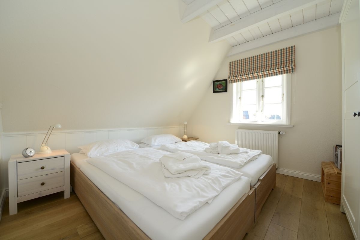 Im Obergeschoss erwarten Sie drei Schlafzimmer: ein großes Doppelzimmer für erholsame Nächte, ein weiteres Zimmer mit zwei komfortablen Einzelbetten und ein charmantes Kinderzimmer. Alle Zimmer sind mit Kleiderschränken ausgestattet, sodass Ihre Urlaubsgarderobe ausreichend Platz findet.