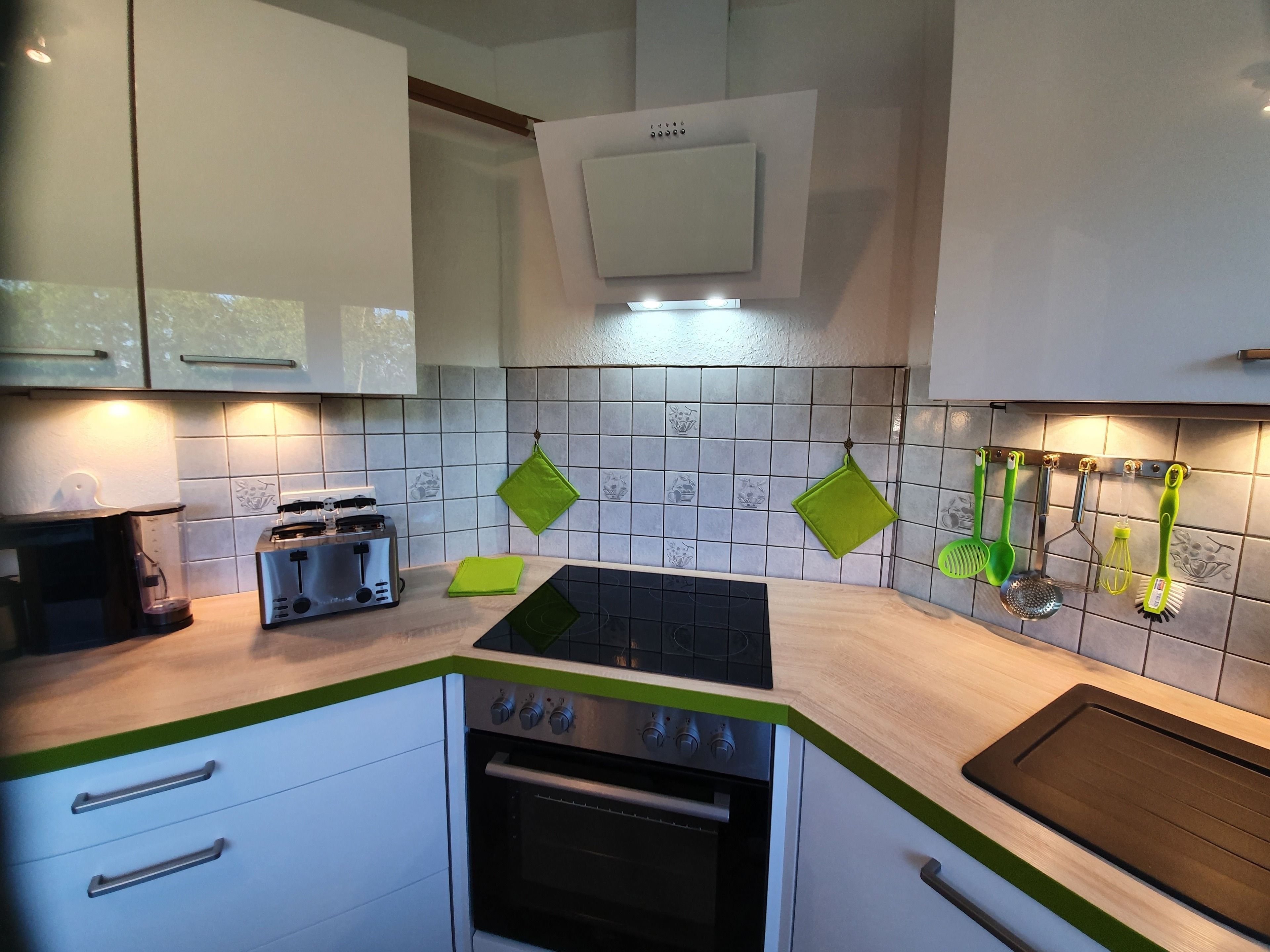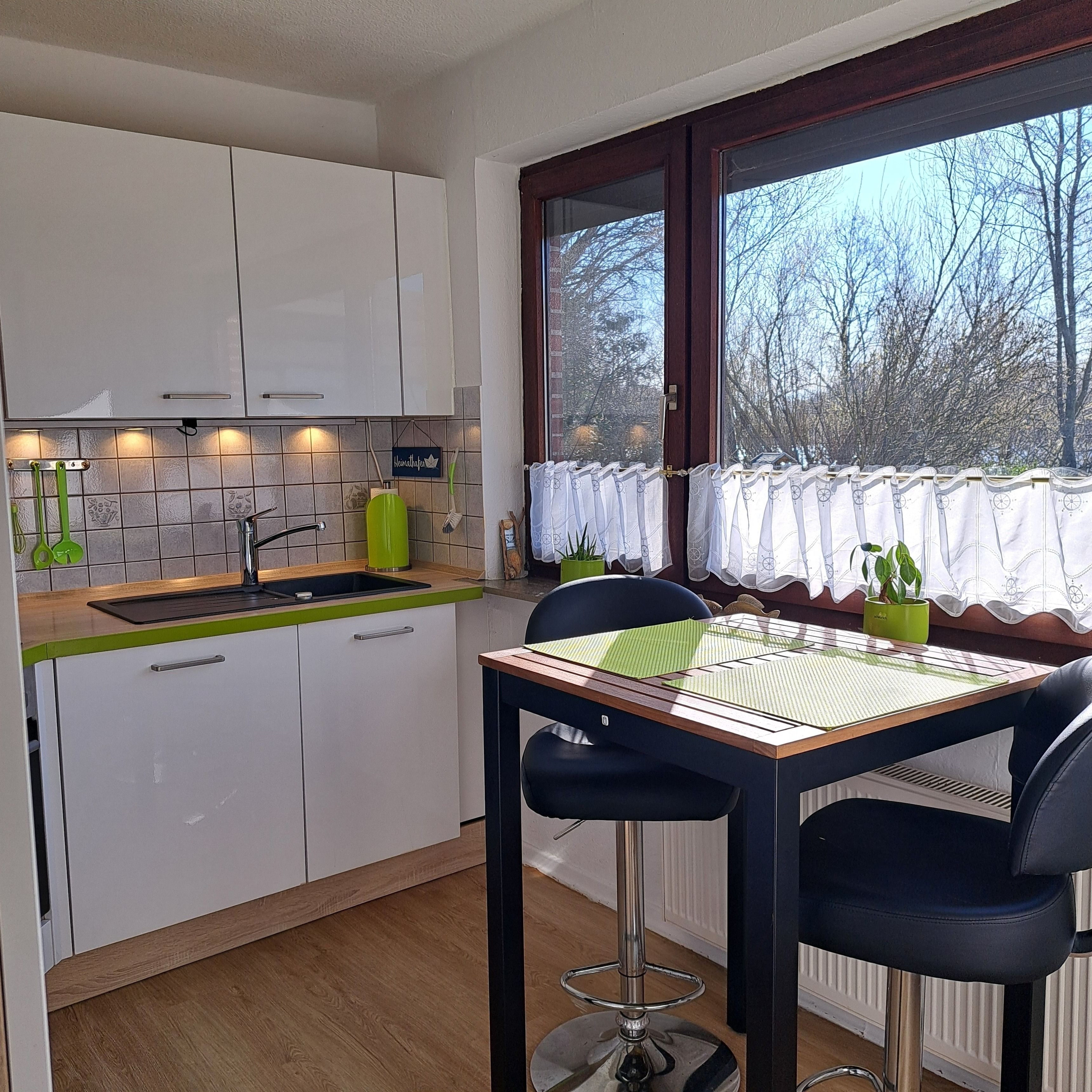Im Erdgeschoss befindet sich die Küche, von der aus Sie einen Blick auf den Kanal genießen können. Die Küche bietet eine gemütliche Sitzgelegenheit, einen Kühlschrank mit Gefrierfach, einen Herd mit Cerankochfeld, einen Umluftbackofen, eine Geschirrspülmaschine, einen Wasserkocher, eine Kaffeemaschine und einen Toaster. Weiterhin finden Sie hier das kleine Badezimmer mit Dusche sowie das großzügige Wohnzimmer mit gemütlicher Sitzecke, Fernseher und Essecke. Vom Wohnzimmer aus gelangen Sie in den Wintergarten, der dank Fußbodenheizung ganzjährig zum Verweilen einlädt. Bitte beachten Sie das der Wintergarten im Sommer sehr warm werden kann. Hier gibt es nur eine kleine Möglichkeit zum Durchlüften.