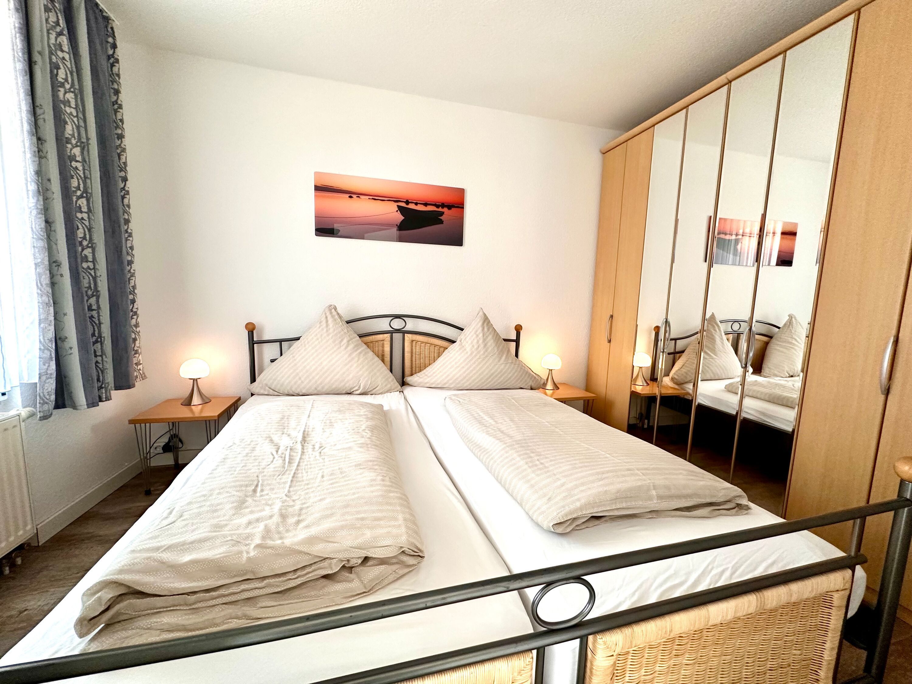 Unsere komplett ausgestattete Komfortferienwohnung J 105 De Brecker ist ca. 47 qm groß. Sie ist ideal für zwei bis drei Personen. Sie verfügt über Bad mit Dusche und ein Schlafzimmer mit Doppelbett; außerdem gibt es ein großes Schlafsofa im Wohnzimmer.