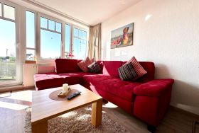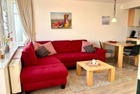 Sie setzt sich auf etwa 45m² aus Wohn-/ Essbereich, Duschbad, Schlafzimmer und Balkon mit Deichblick zusammen.