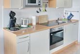 Küche: Geschirr, Töpfe, Mikrowelle, Kühlschrank inkl. Gefrierfach, Backofen, E-Herd mit Ceranfeld, Wasserkocher, Kaffeepad- sowie Filterkaffeemaschine, Toaster, Eierkocher, Geschirrspüler