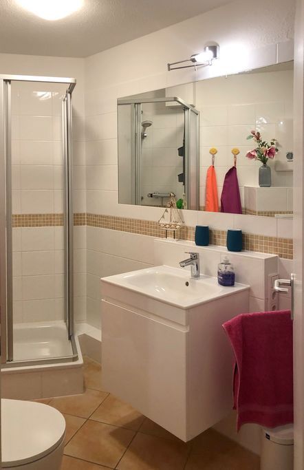 Das Sofa kann als weiteres Bett verwendet werden, so dass die Wohnung 1-3 große Gäste beherbergen kann.