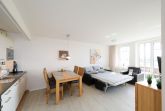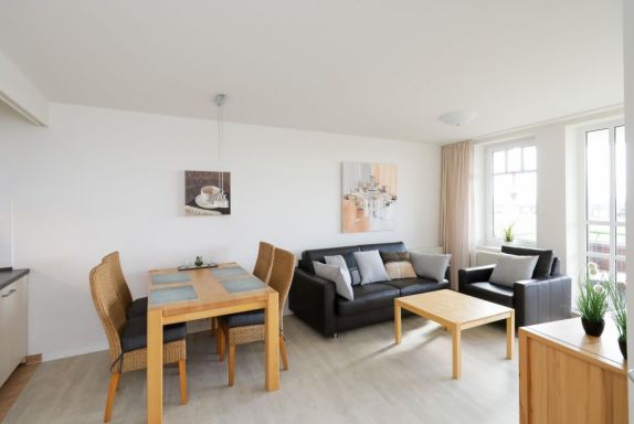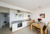 Die Wohnung befindet sich in ruhiger Lage im Ferienhaus Neptun und ist 56 qm groß. Sie besteht aus einem Wohn-Esszimmer mit LCD-Fernseher, aufklappbarer Schlafcouch, Essecke und komplett ausgestatteter Küchenzeile, einem Schlafzimmer mit Doppelbett, einem kleinen Zimmer mit Schlafcouch und einem Badezimmer mit Dusche.