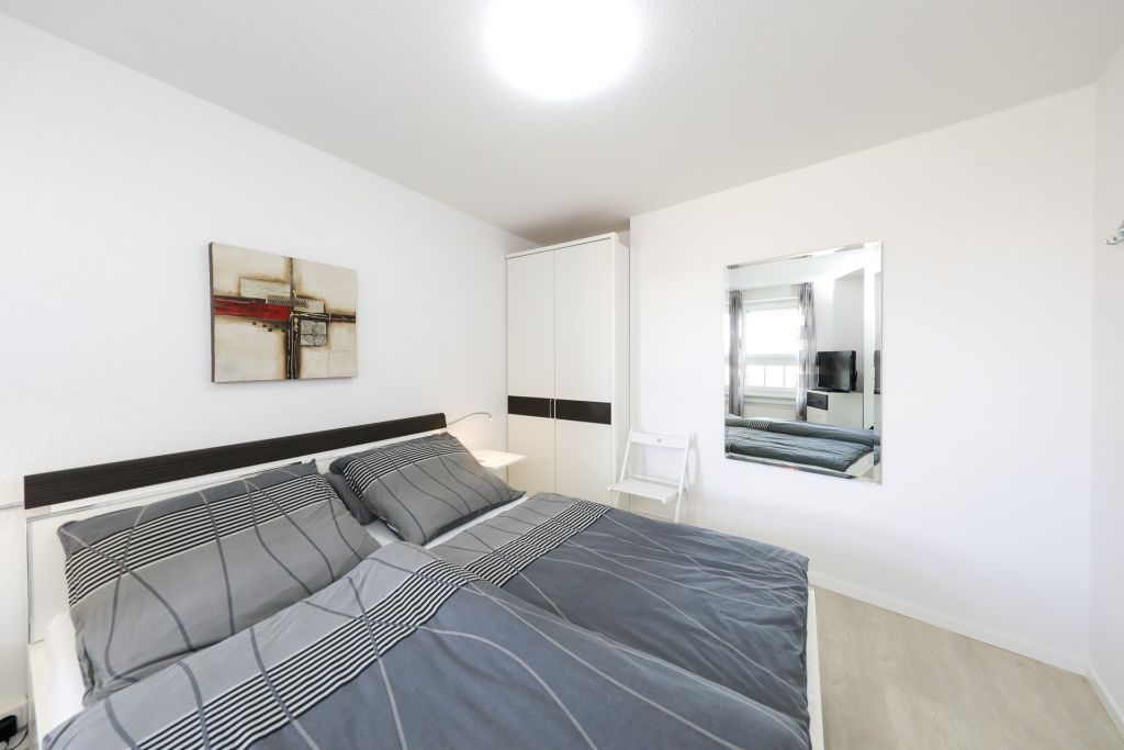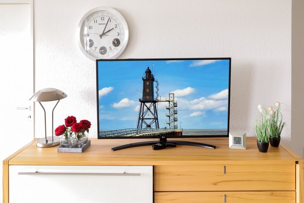 Im Schlafzimmer gibt es einen Fernseher, der über das Internet alle gängigen Fernsehprogramme sowie Apps wie Amazon Prime und Netflix nutzen kann, wenn ein Stick mitgebracht wird.