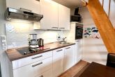 Die Küchenausstattung beinhaltet einen Kühlschrank mit Gefrierfach, Ceranfeld mit 2 Kochplatten, Backofen, Geschirrspüler, Filter-Kaffeemaschine (Filtergröße 1x4), Senseo-Kaffeemaschine, Eierkocher, Wasserkocher, Toaster und Mikrowelle.