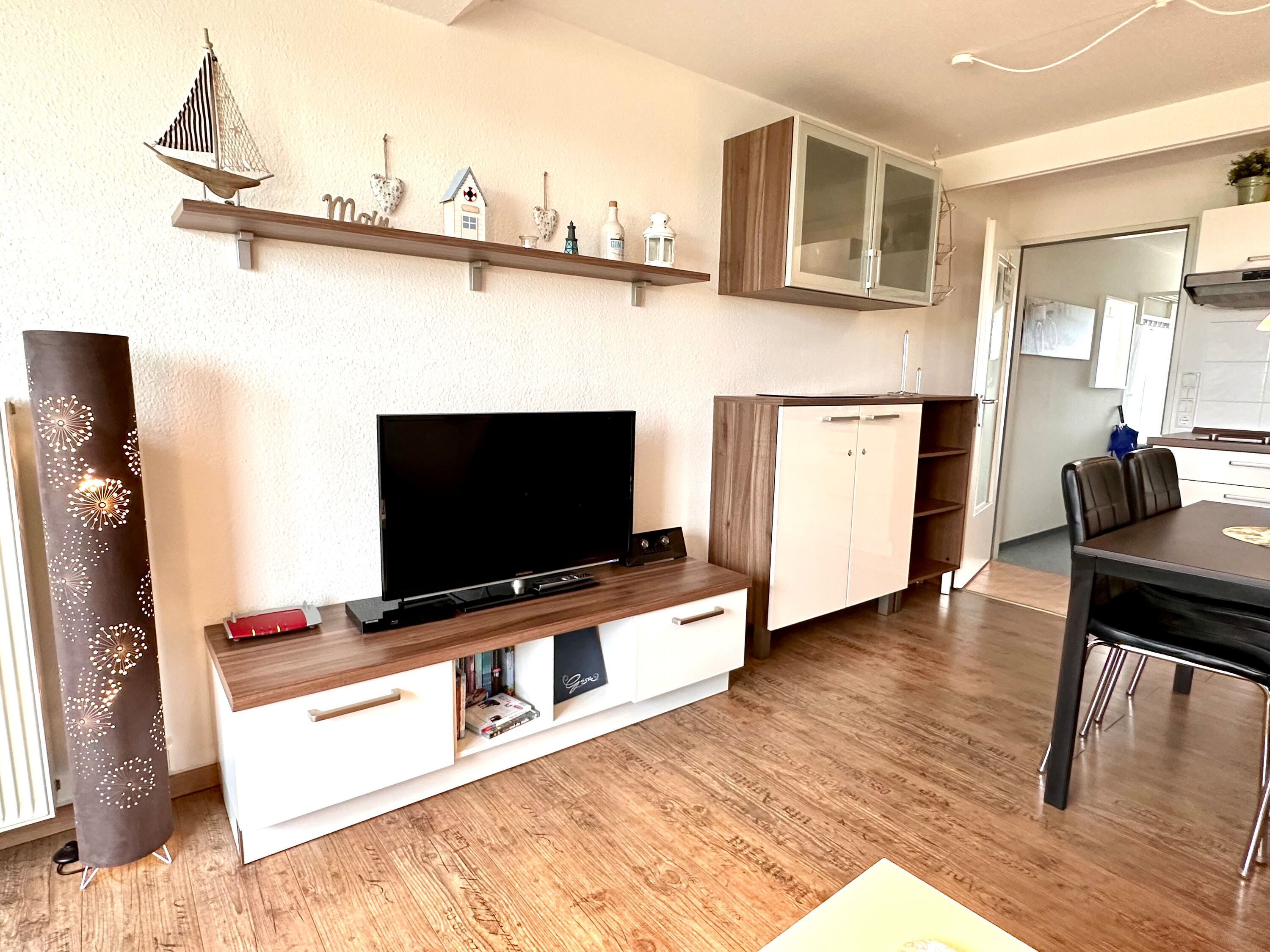 Das Wohnzimmer verfügt über einen großen LCD-Fernseher, DVD-Player, Internetradio und FritzBox für Internet mit WLAN-Gastzugang.