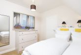 Diese modern stylische Hausscheibe erwartet sie im Dikstig, direkt gegenüber des Fußweges durch die Dünen ans Meer. Der Wohnbereich mit seinem modernen Interior und der großen Fenster- und Terrassenfront Richtung Westen lädt zum Verweilen ein. Die offene Küche und geschützte Terrasse machen das Erdgeschoß komplett. Im Obergeschoss befindet sich das kuschelige Schlafzimmer für Zwei mit französischem Bett und gleich nebenan ein modernes kleines Duschbad. Im Untergeschoss gibt es noch ein weiteres Duschbad sowie viel Platz zum Lagern der Koffer und Golfbags.