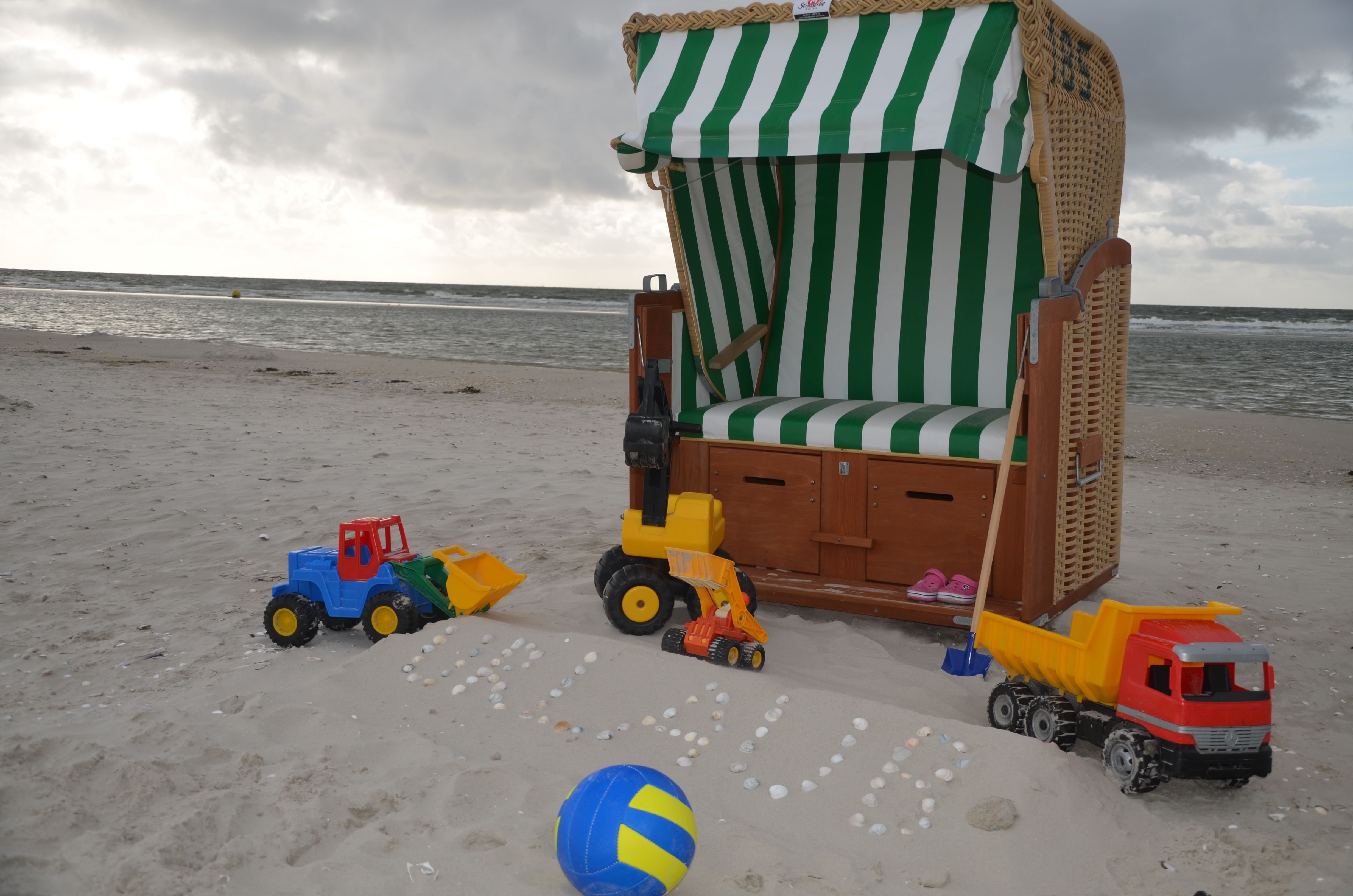 Auch für den Urlaub mit klein Kindern ist alles vorbereitet:Hochstuhl, Kinderbett, Treppenschutzgitter, Bollerwagen mit Strandspielzeug und Kinderbücher finden Sie im Ferienhaus Blume.