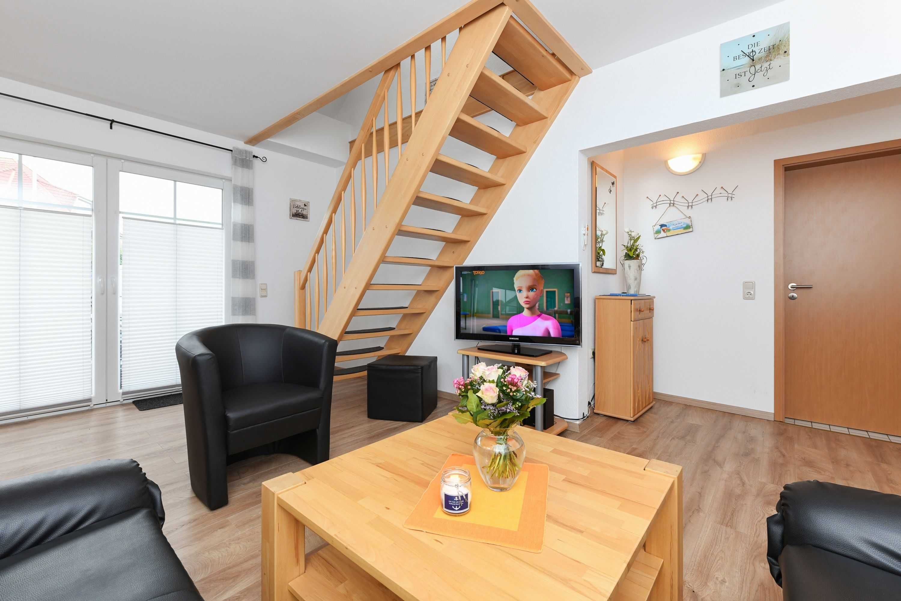 Fühlen Sie sich bei uns wie zu Hause ! Wir sorgen für viel Komfort in Ihrem Feriendomizil, denn uns ist es wichtig, dass Sie sich auch in der Fremde rundherum wohl fühlen. Unsere Ferienwohnung ist sehr gut ausgestattet: In der Küche finden Sie vom Korkenzieher bis zur Kaffeemaschine alles, was Sie zum Kochen und genussvollen Essen benötigen.Das einladende Wohnzimmer ist u.a. mit einer gemütlichen Rundsitzecke und einem Fernseher ausgestattet.Sie können sich nach einem ereignisreichen Tag erstmal auf der bequemen Couch entspannen. Alles in allem ist unser Ferienhaus heimelig und gemütlich eingerichtet. Alles lädt zur Entspannung in kuscheliger Atmosphäre ein. Ausstattung Ferienwohnung Haus Möwe: Küche mit Esszimmer; Wohnzimmer mit Rundecke und TV mit intregiertem Esszimmer, 2 Schlafzimmer; Kinderreisebett; Badezimmer mit Dusche und WC; Garten; Terrasse mit Gartenmöbeln; 2 Stellplätze vorm Haus.