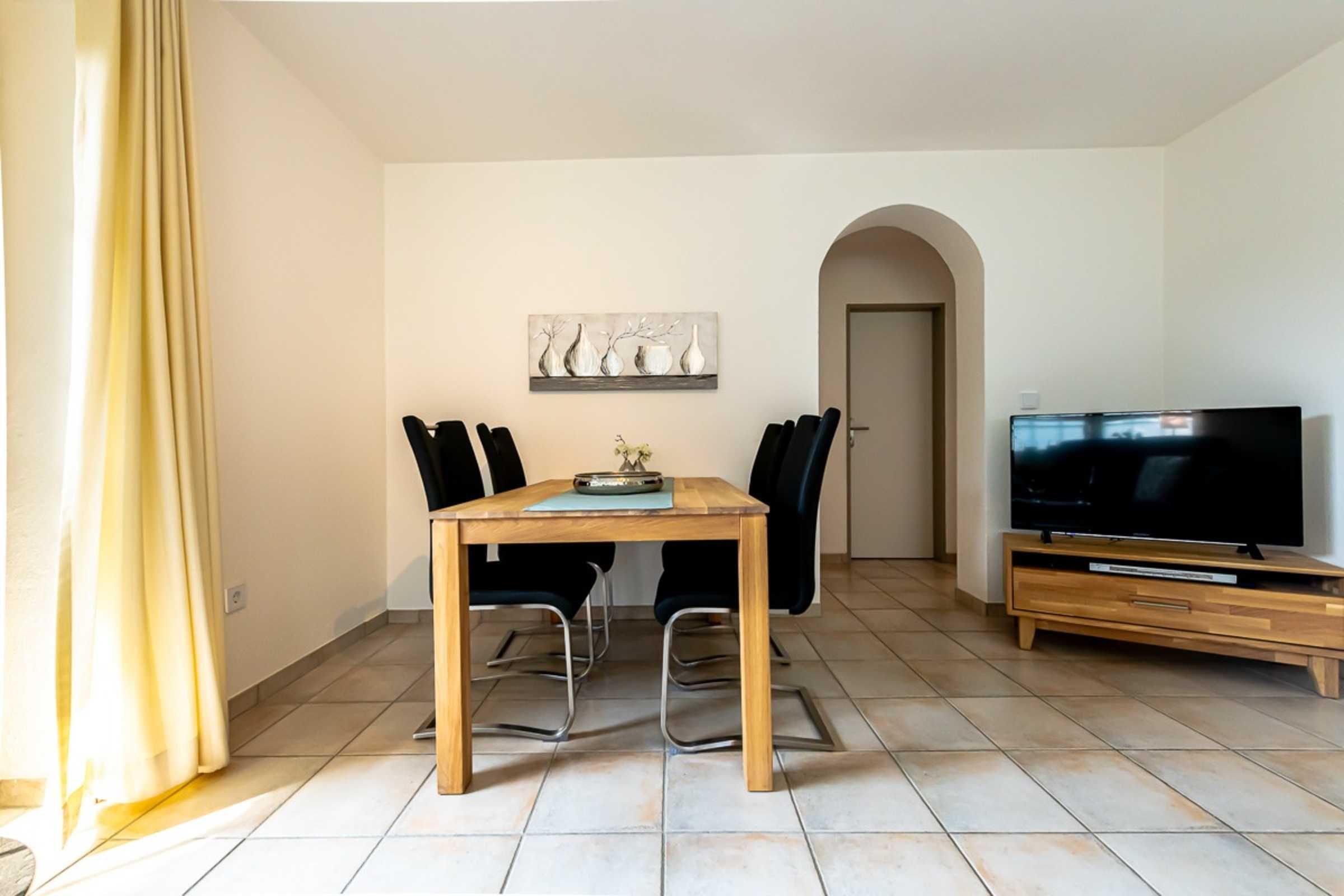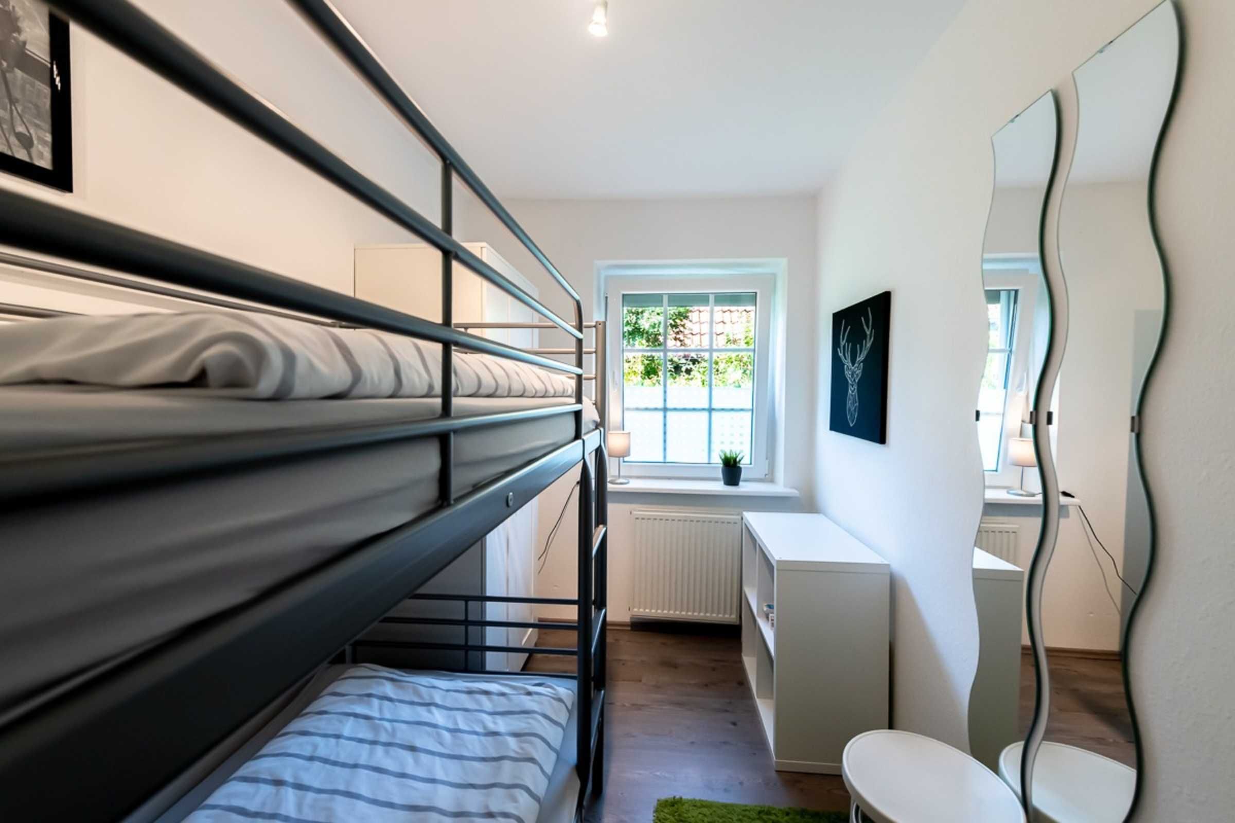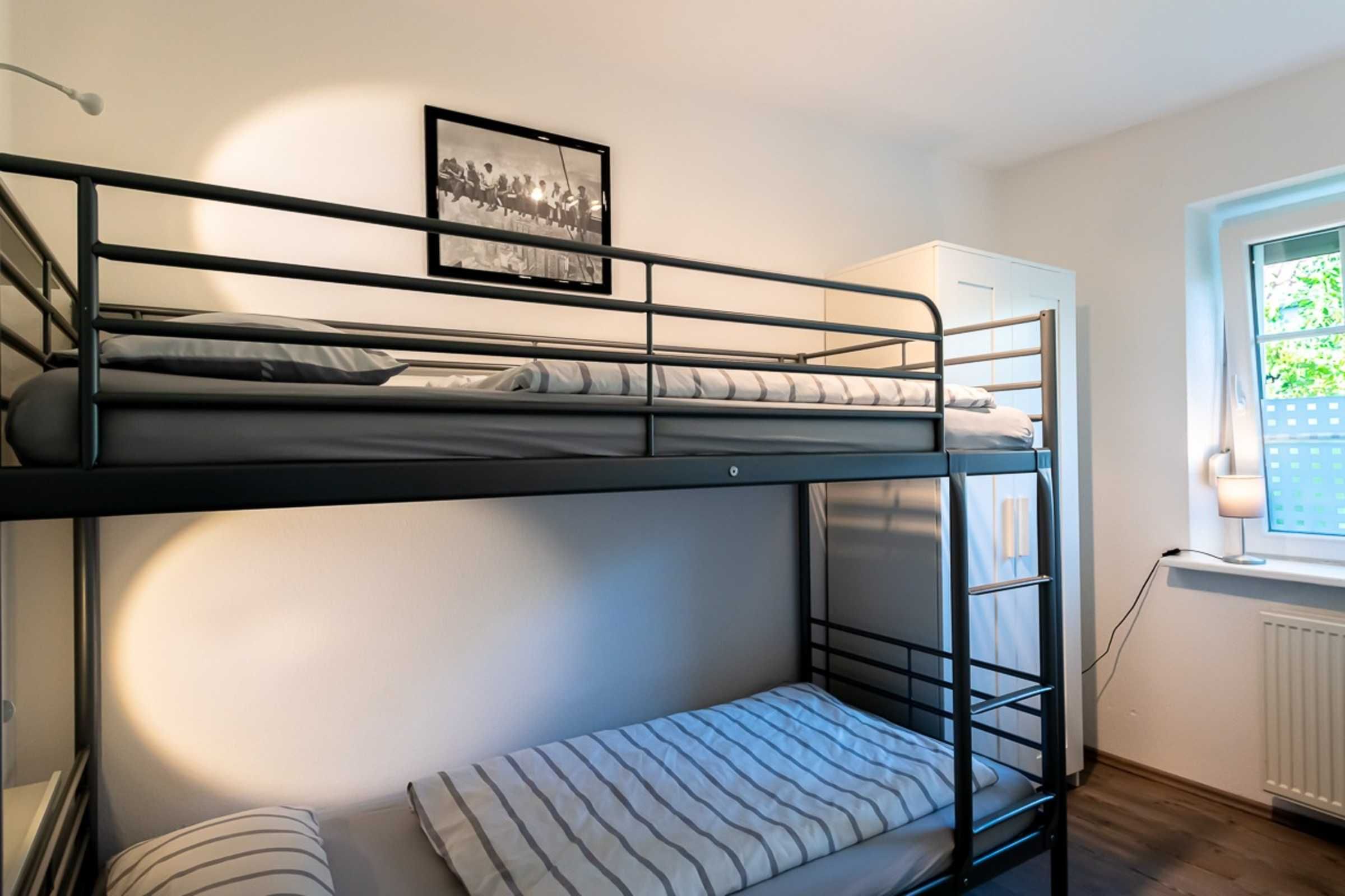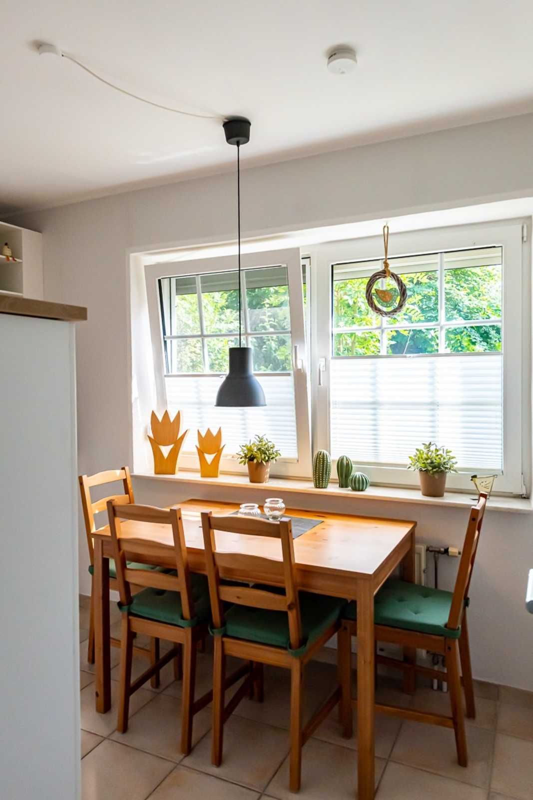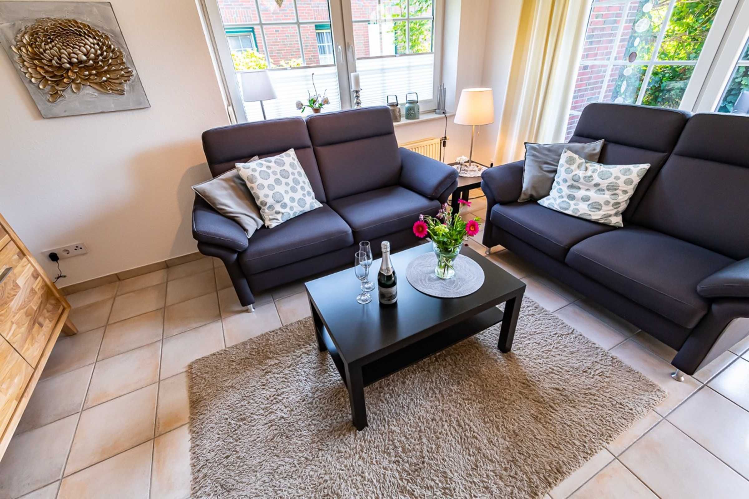 Die helle EG-Wohnung (60qm) mit WLAN bietet bequem Platz für 2-4 Personen und lädt zum Nordseeurlaub ein. Durch das Wohnzimmer mit Essplatz gelangen Sie auf unsere Terrasse und den Garten. (Gartenmöbel und -liegen vorhanden). Die separate Küche verfügt über Spülmaschine, Kaffee- und Senseopadmaschine, Kühlschrank mit Gefrierfach, Herd mit Backofen, Wasserkocher, Toaster etc.. Ein Schlafzimmer ist ausgestattet mit einem Doppelbett (1,80 x 2,00 Meter, 2 Matratzen)das andere Schlafzimmer ist ausgestattet mit einem Etagenbett. Das Bad verfügt über Dusche und WC. (Haartrockner vorhanden)
