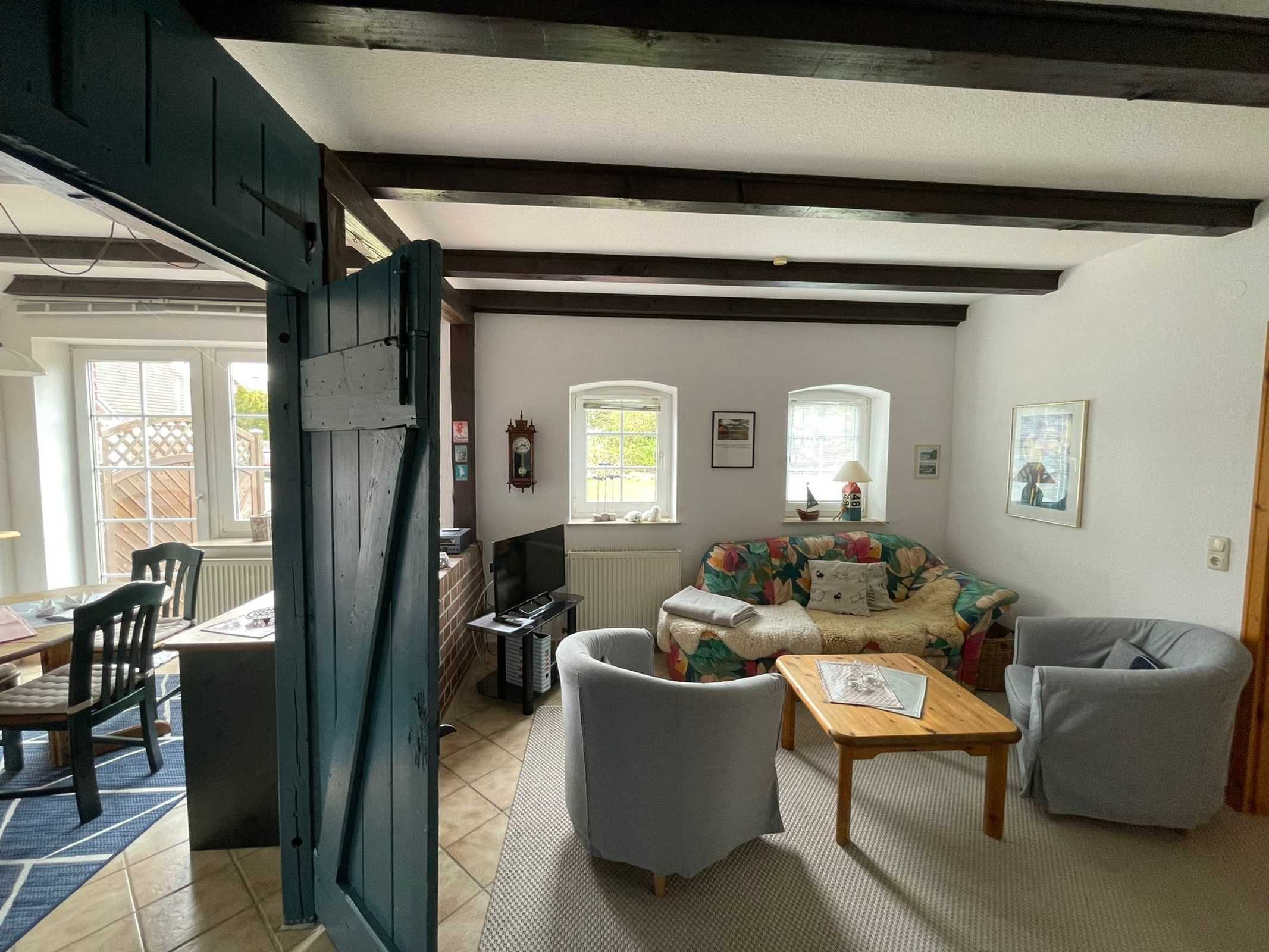 Diese außergewöhnliche Ferienwohnung liegt am Ortseingang von Carolinensiel in einem 1996 umgebauten Bauernhaus, wenige Gehminuten vom Museumshafen entfernt. Unseren Gästen steht ein Saisonstrandkorb am Badestrand von Harlesiel zur Verfügung. Anspruchsvolle, individuelle Wohnungseinrichtung durch gelungene Symbiose zwischen alt und neu.