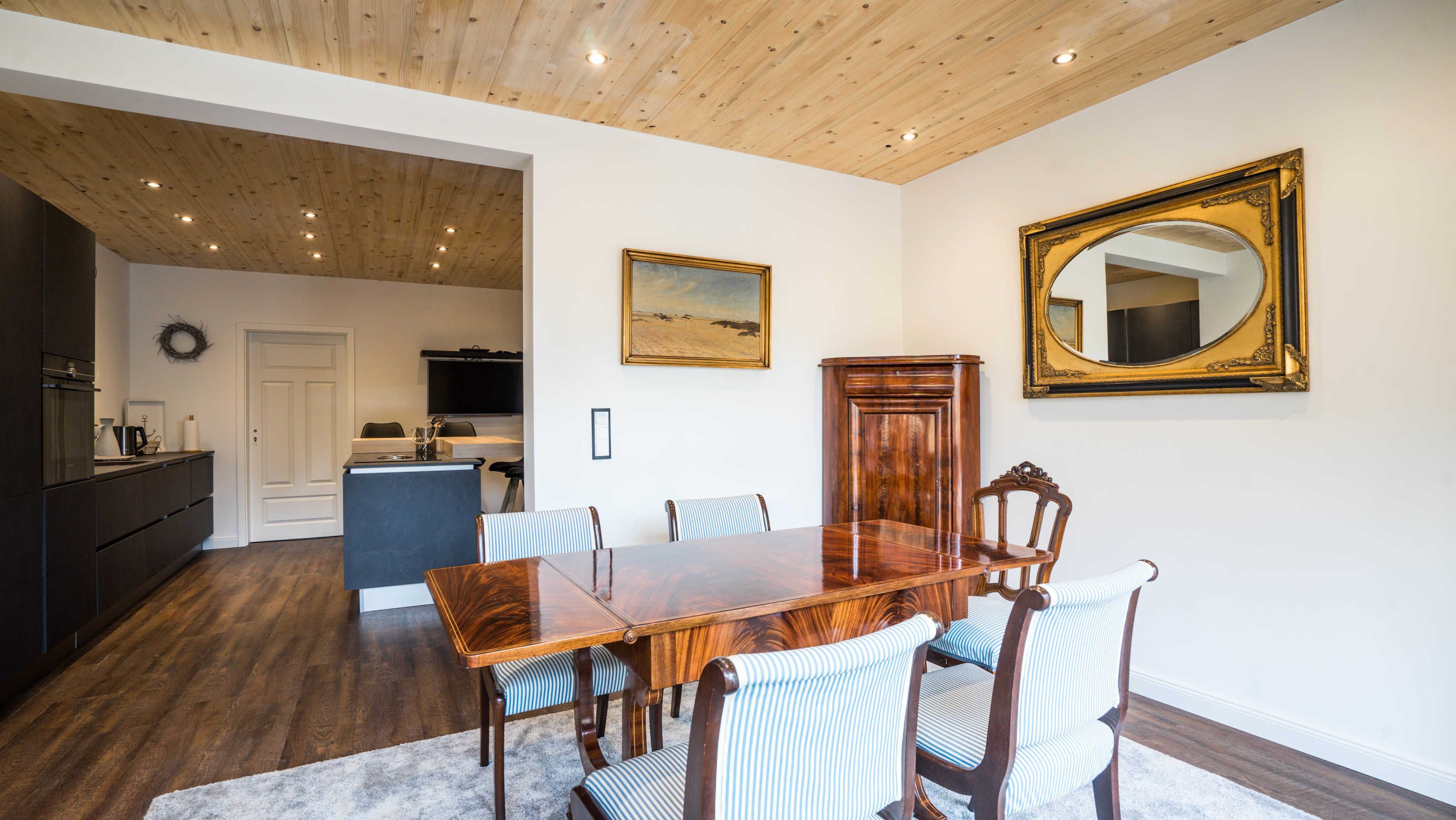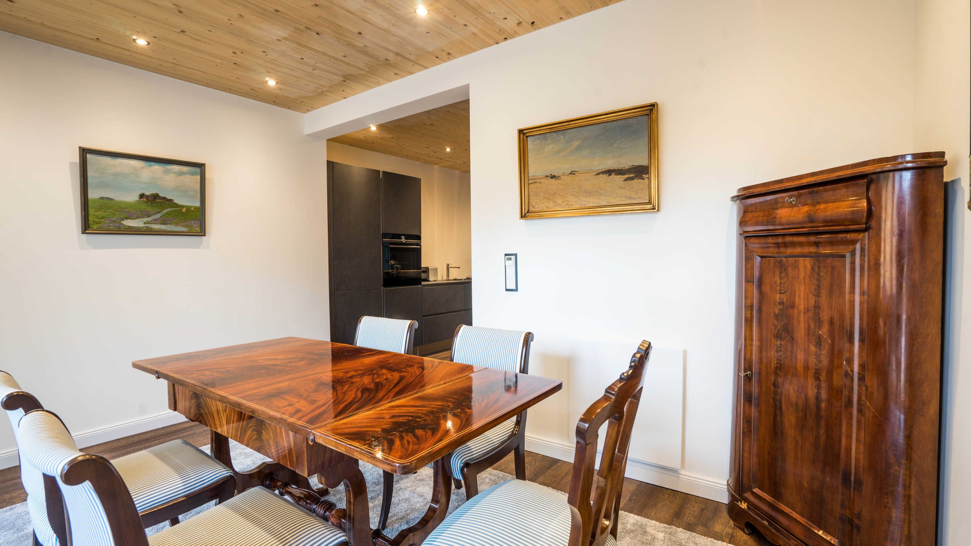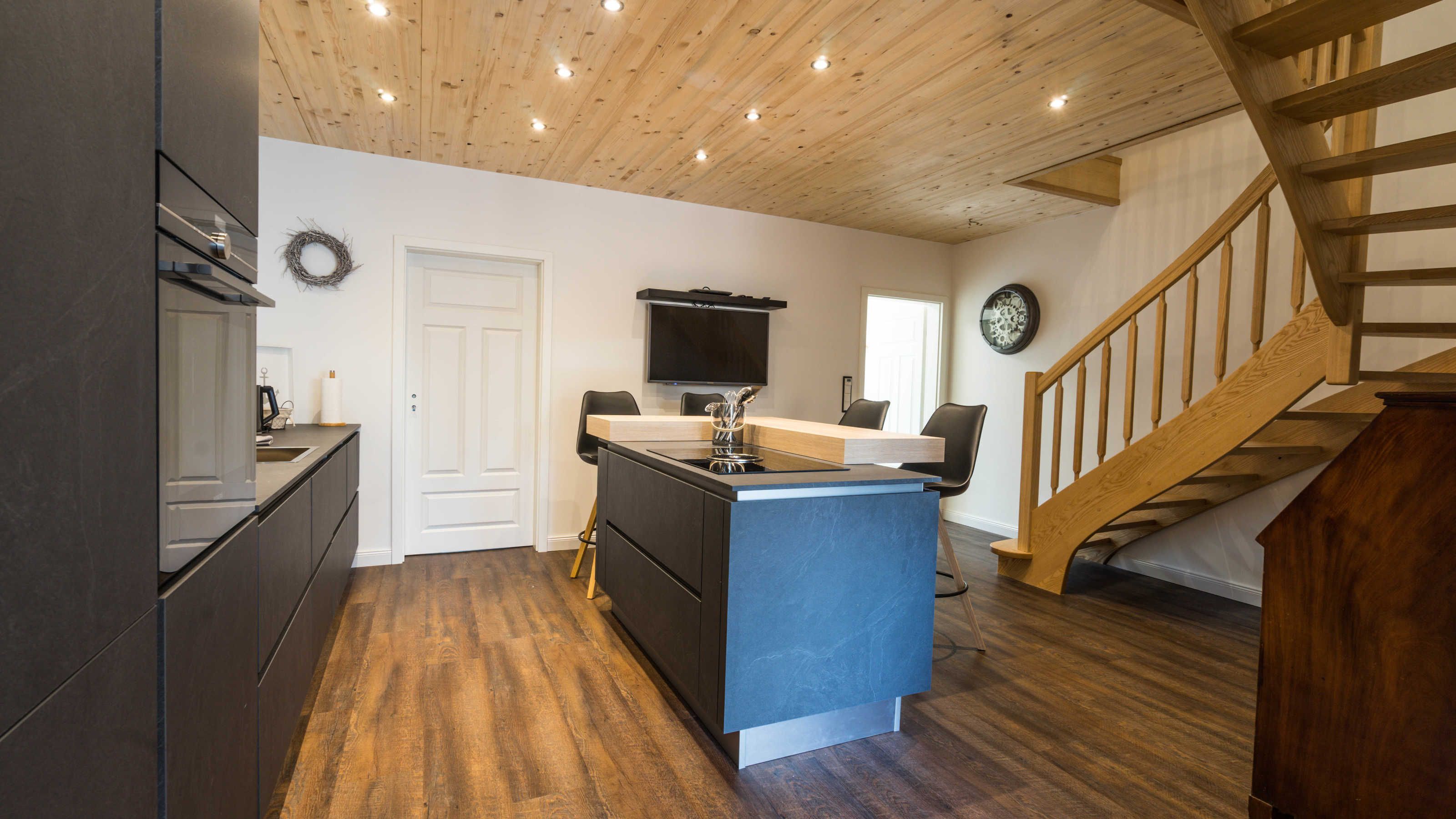 Die offene Küche mit Tresen und 4 Barhockern ist mit Geschirrspüler, Backofen, Induktionskochfeld mit 4 Herdplatten, Kühlschrank mit Gefrierfach, Filterkaffeemaschine (Filtergröße 4), Wasserkocher und Toaster eingerichtet. Das offene Wohnzimmer lädt mit einem Flachbild-TV (Kabel) und großem Esstisch zum Verweilen ein. Die Wohnung verfügt über 3 Schlafzimmer, die mit einem Boxspring-Bett, einem Schlafsofa und gemütlichen Schlaf-Alkoven ausgestattet sind: Schlafzimmer 1 mit 180 x 200 Matratze und TV, Wohn-/Schlafzimmer 2 mit 180 x 200 und TV, Schlafalkoven 3 mit 1,50 x 200. Die Wohnung wird für deine Anreise mit Bettwäsche, Handtüchern und Seife ausgestattet.