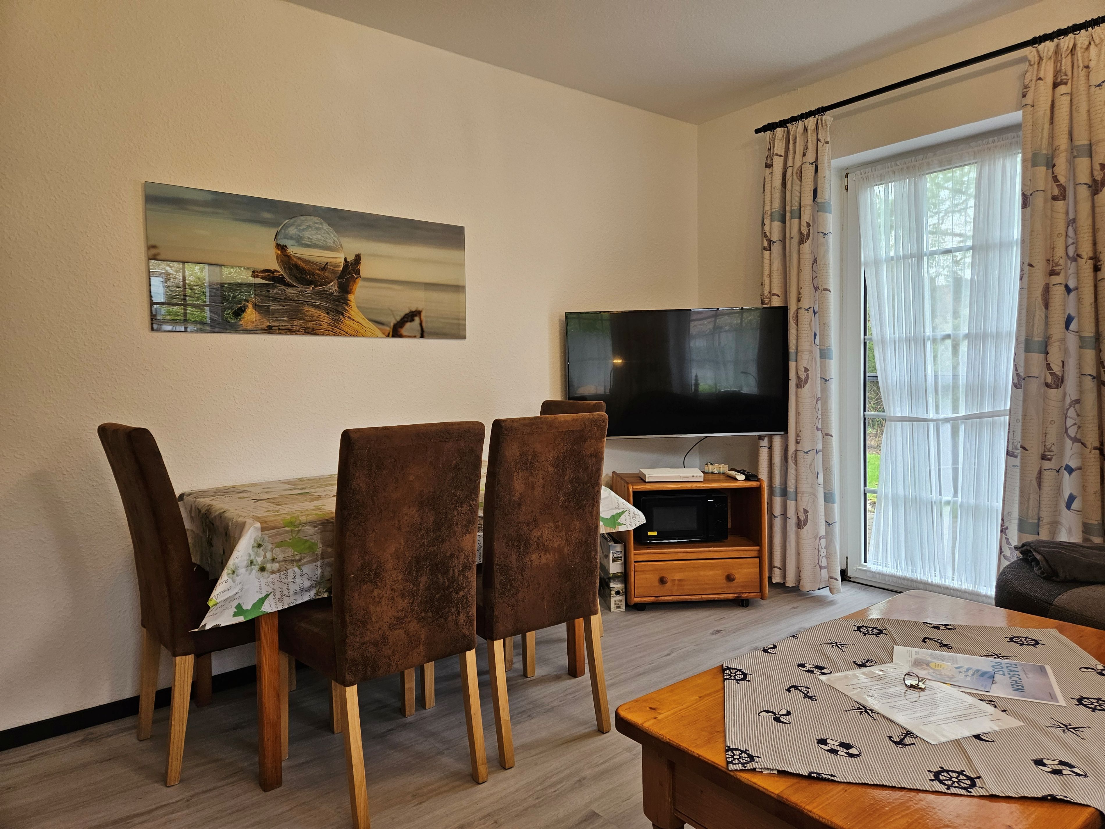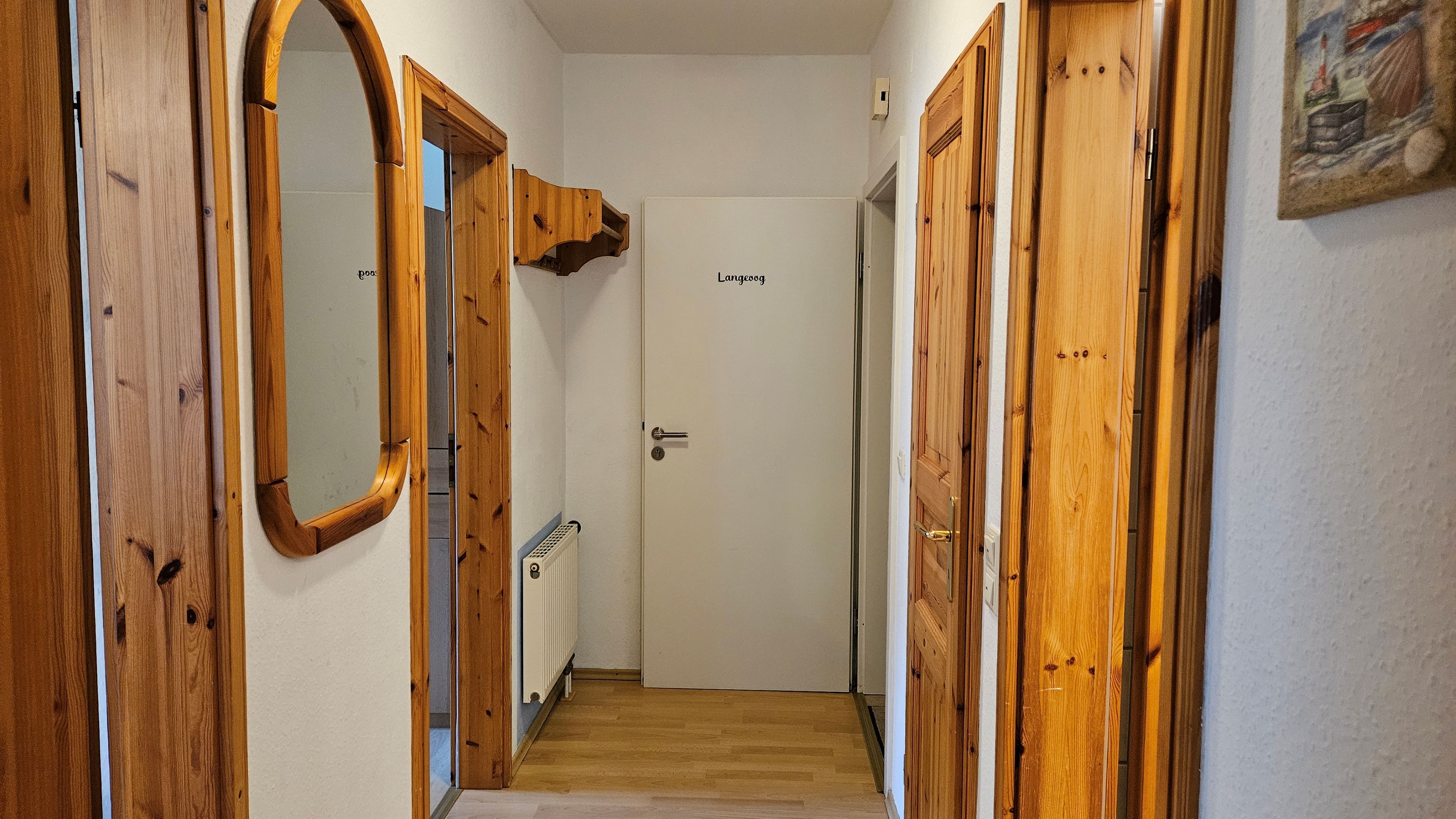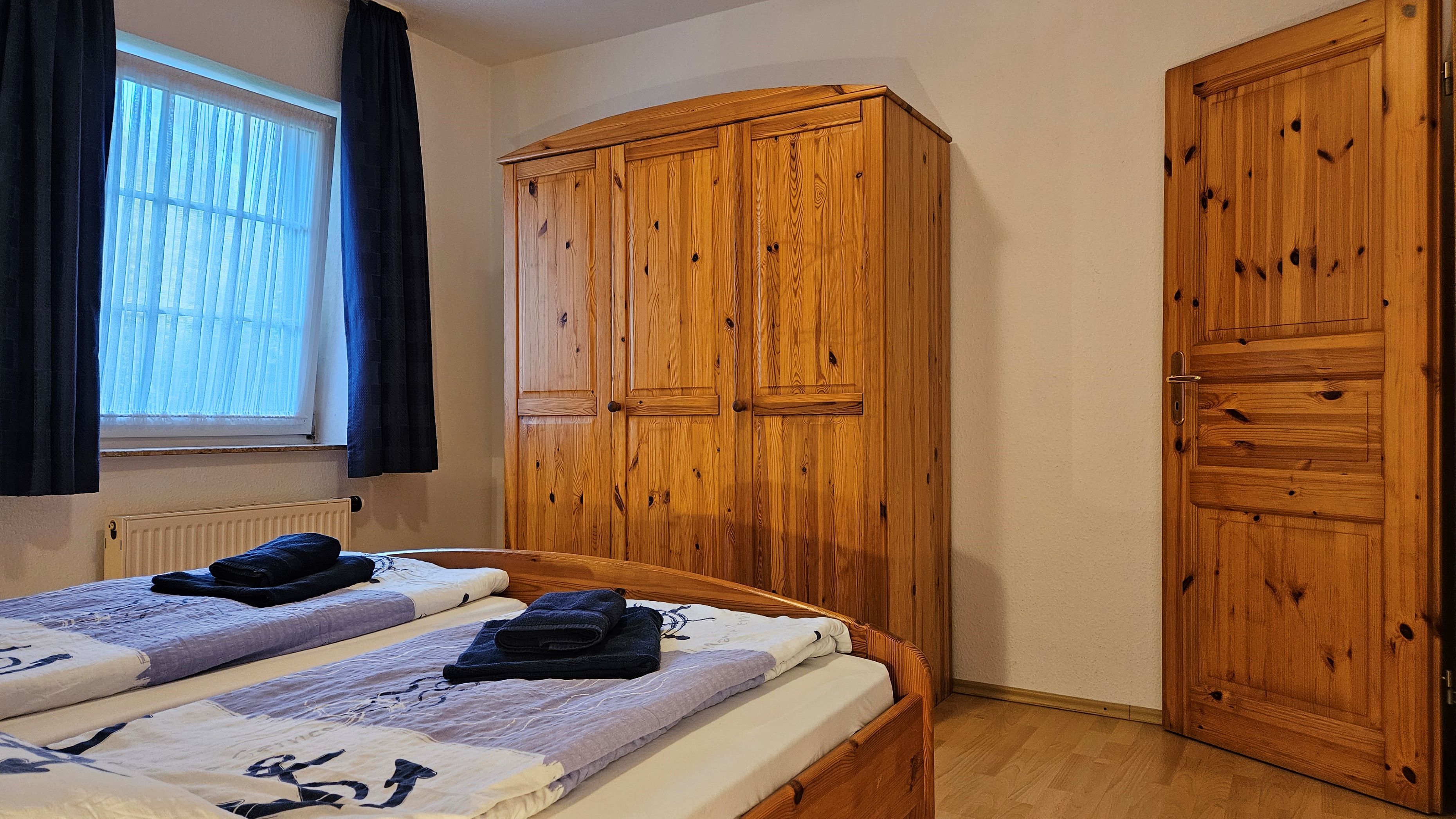 Die Erdgeschoßwohnung Langeoog verfügt über einen gemütlichen Wohnraum mit Küchenzeile sowie angrenzender Terrasse zum Garten. Weiterhin bietet sie zwei Schlafräume (eines mit Doppelbett und eines mit einem Etagenbett), ein Bad mit Dusche und einen Abstellraum. Alle Böden sind mit Laminat- und Fliesenböden ausgestattet. Flachbildfernseher, Blu-ray-Player und WLAN gehören selbstverständlich zur Ausstattung.