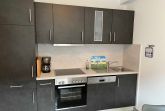 Das Erdgeschoss enthält ein großes Wohnzimmer mit Essbereich, ein Bad mit Dusche, eine Küche sowie einen Abstellraum in dem sich die Waschmaschine befindet.