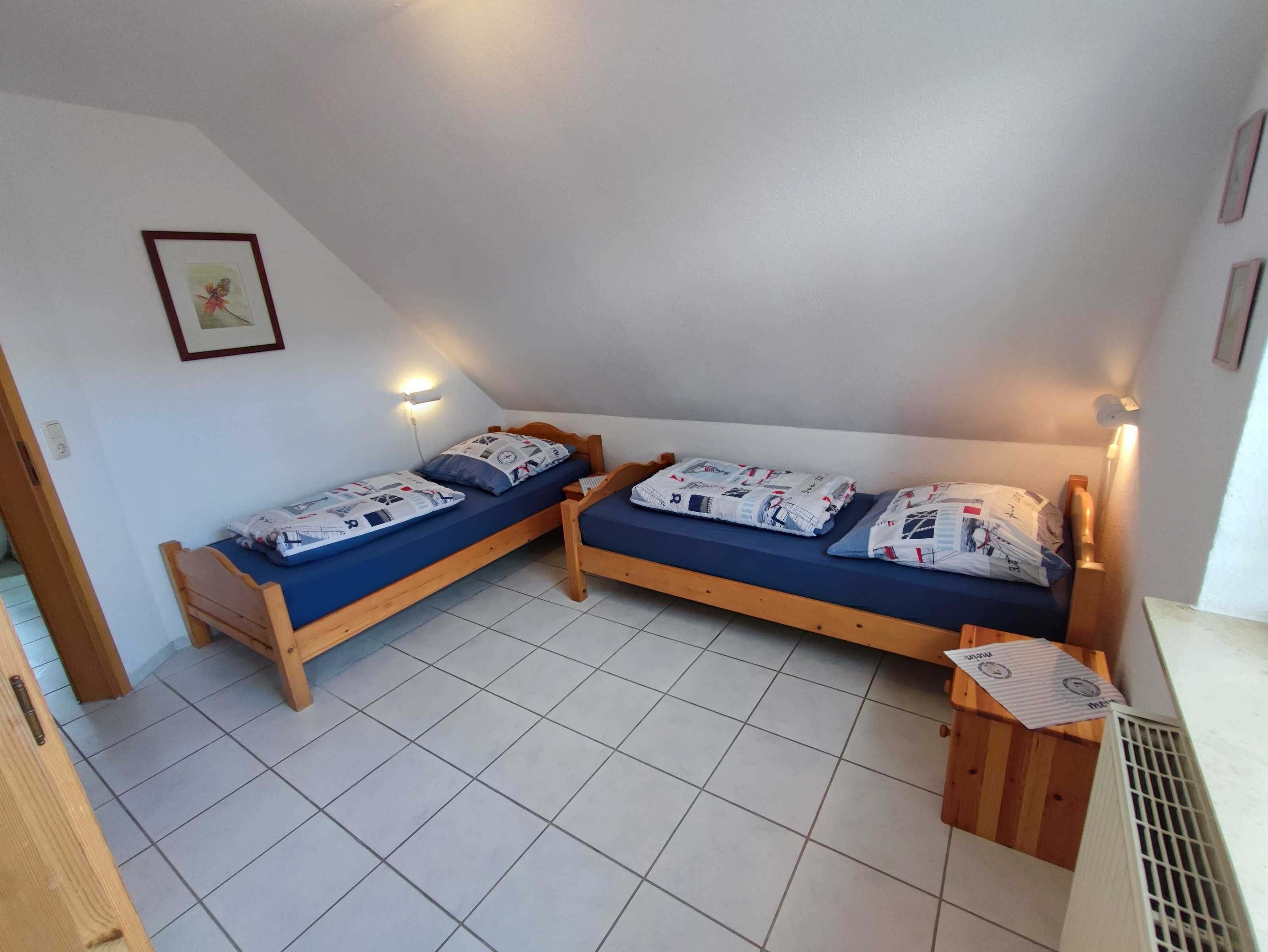 Zwei Schlafräume verfügen über je ein Doppelbett, ein Schlafraum verfügt über zwei Einzelbetten.