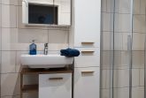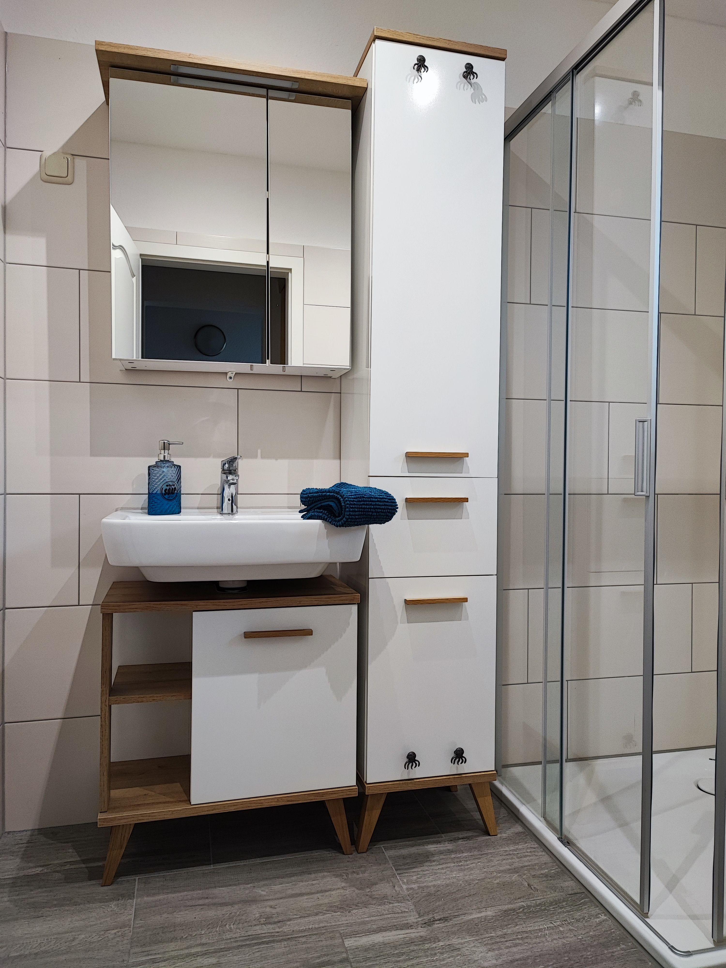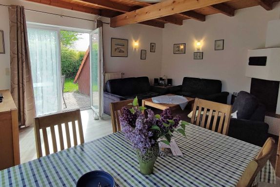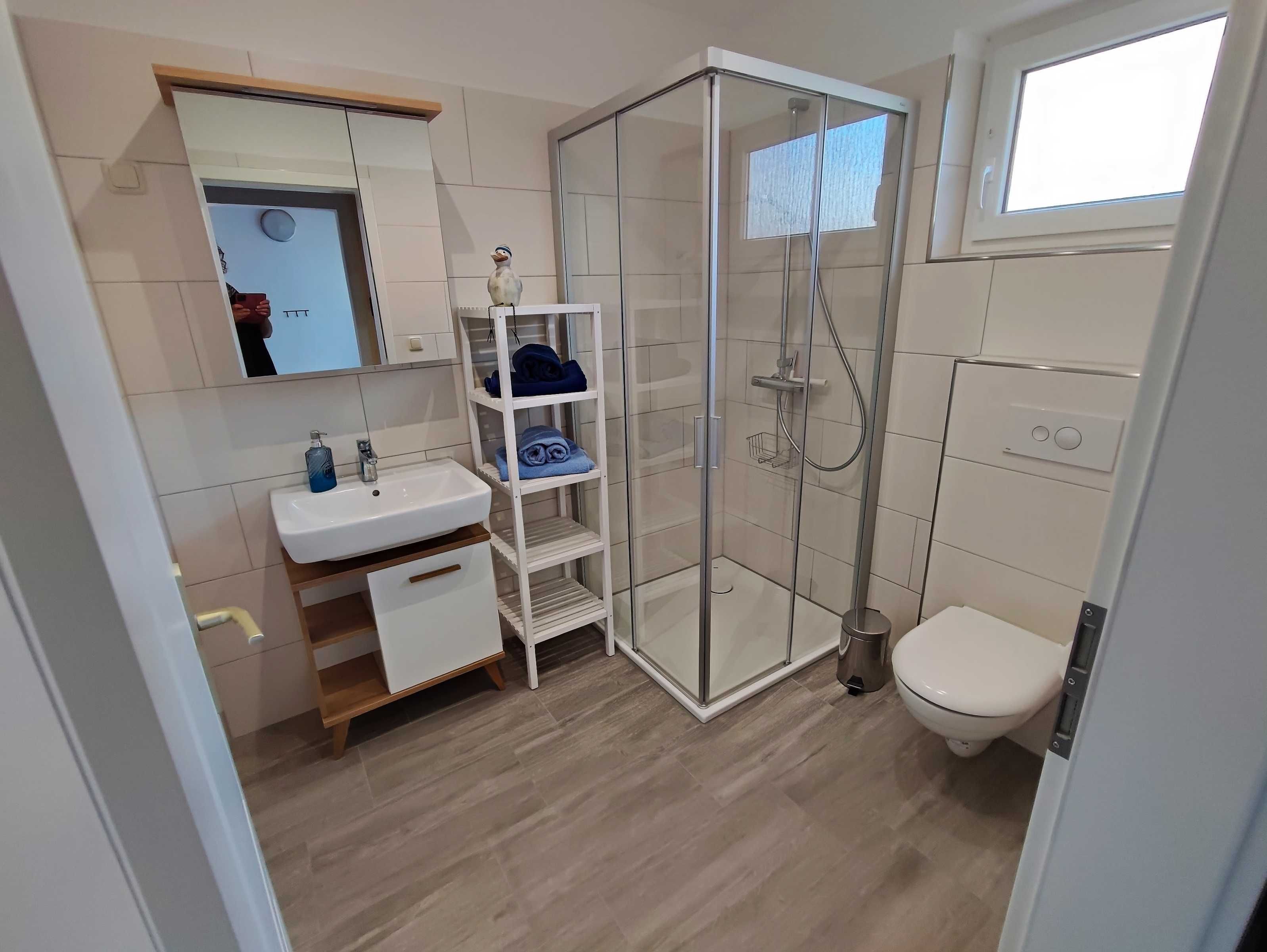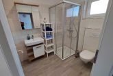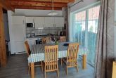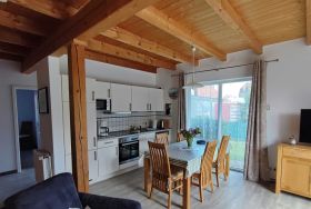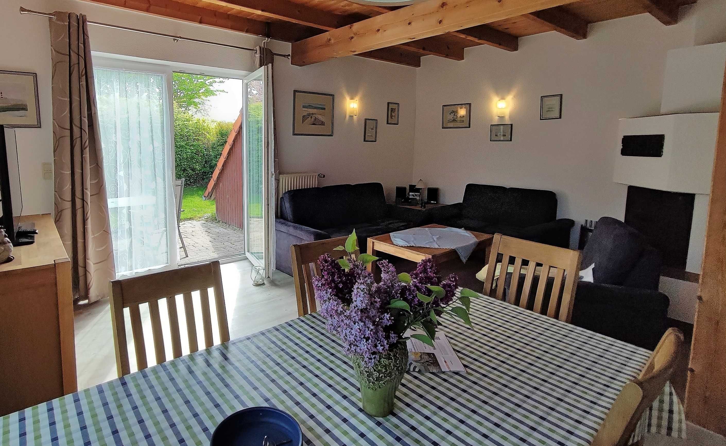 Das Wohnzimmer mit offener Küche, Essbereich und Kamin bietet Raum für einen Familienurlaub. Das Bad mit Dusche befindet sich ebenfalls im Erdgeschoss. Im 1.Obergeschoss sind zwei weitere Schlafräume sowie ein Gäste WC.