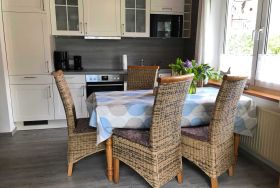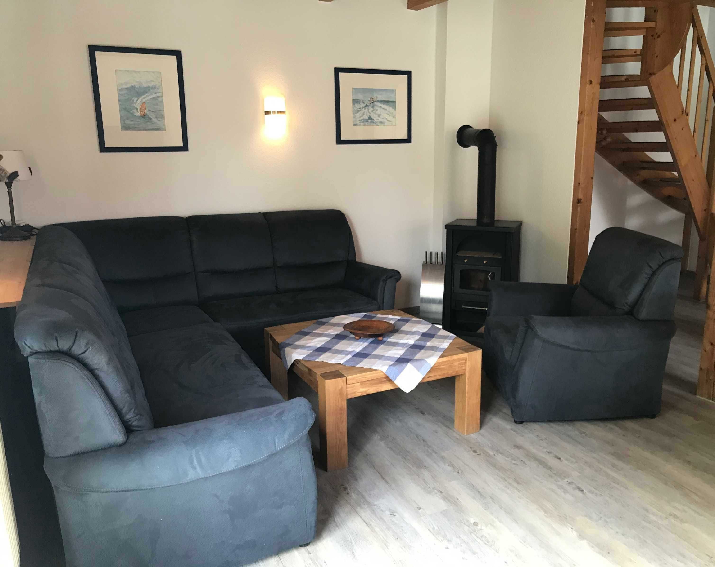 Haus Deichblick 2 ist ein Doppelhaus, ausgestattet mit 3 Schlafräumen wovon sich ein Schlafraum mit Doppelbett im Erdgeschoss befindet und zwei Schlafräume (eins mit Doppelbett, eins mit zwei Einzelbetten) in der ersten Etage. Das Haus ist familienfreundlich, der Wohnraum mit offendem Küchen- und Essbereich bietet ein gemütliches Miteinander.