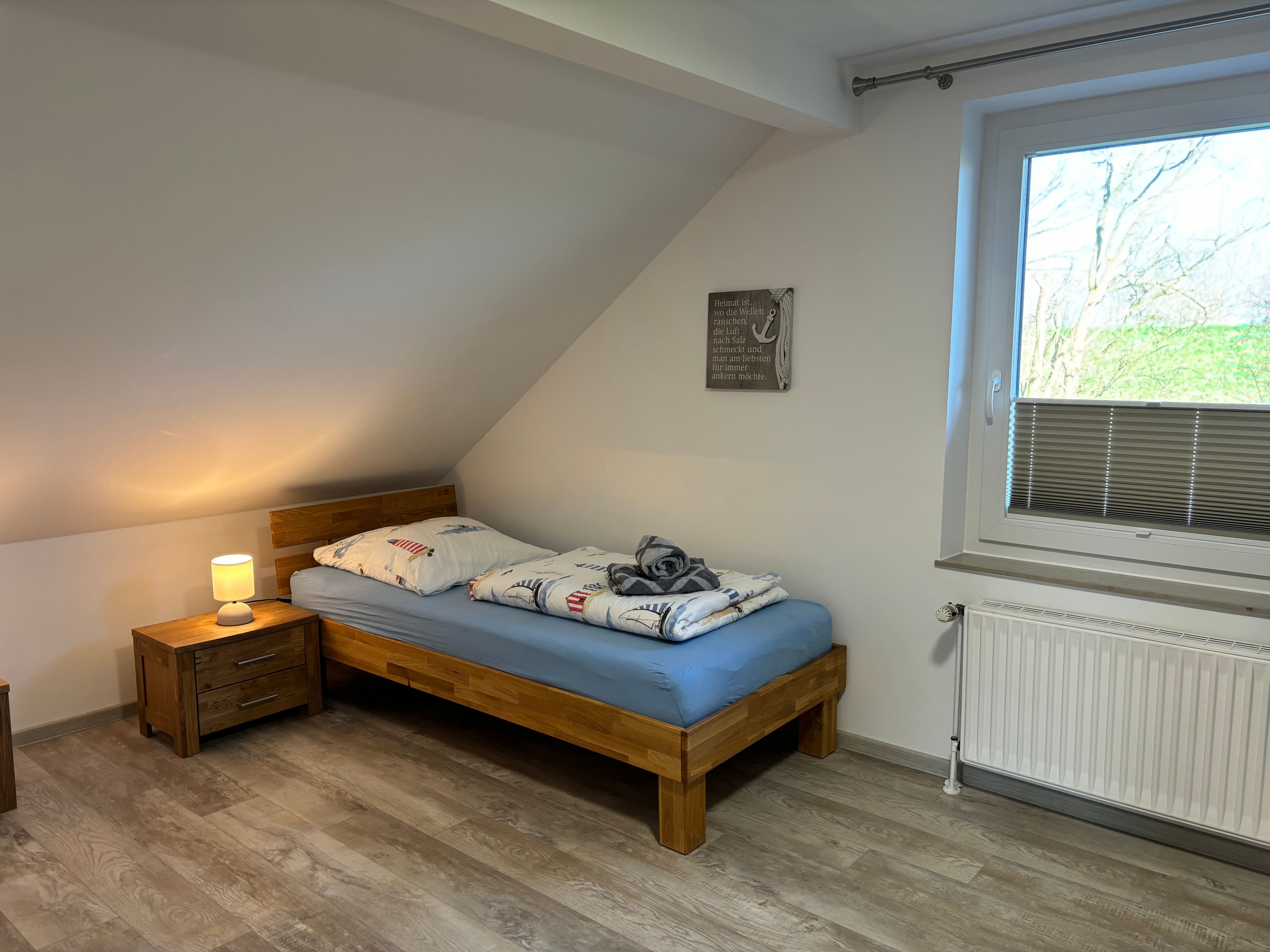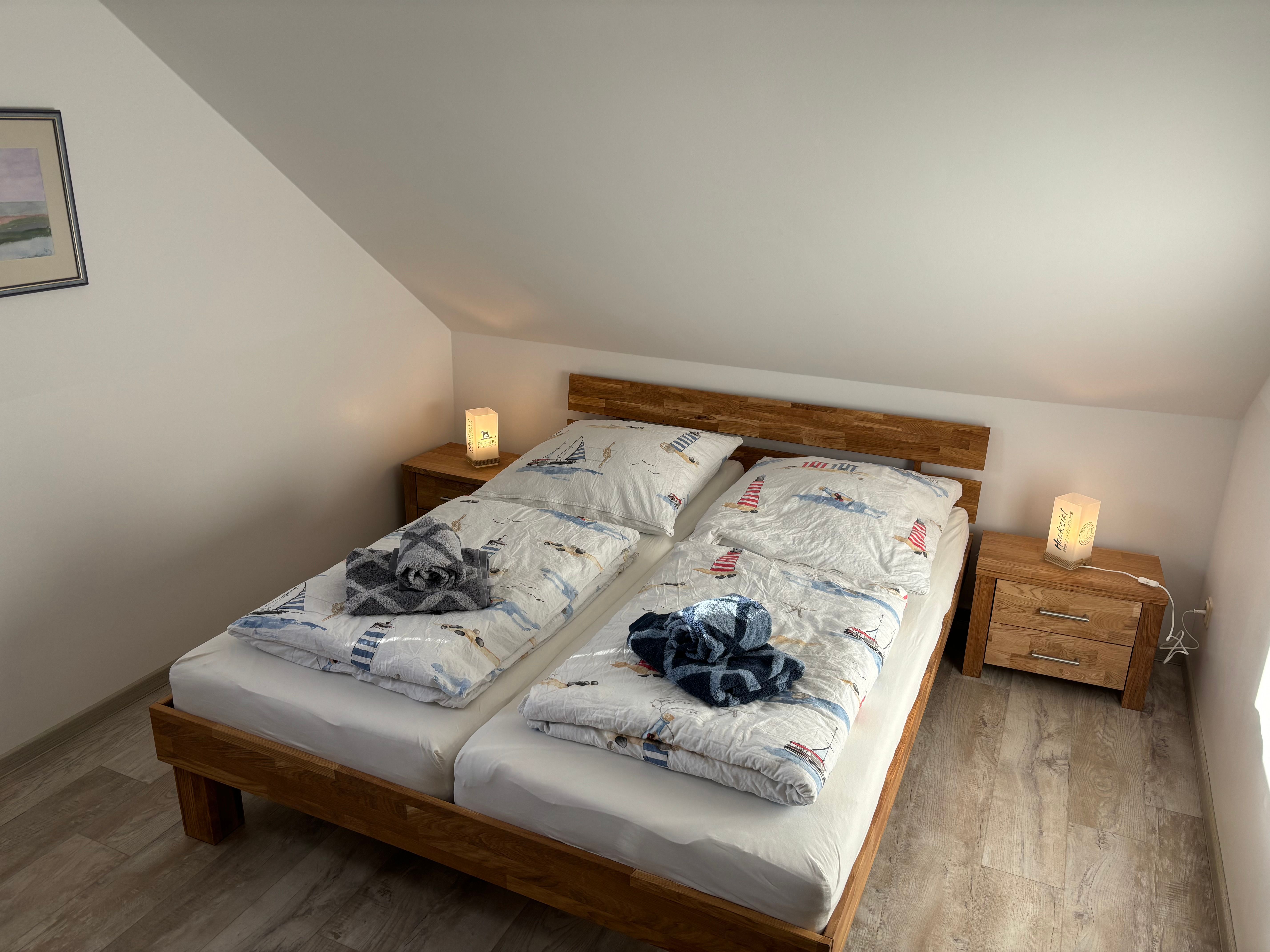Im 1. Obergeschoss befinden sich 2 Schlafräume, ein Schlafraum ist mit einem Doppelbett und der andere Schlafraum mit zwei Einzelbetten ausgestattet.