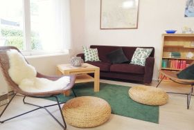 Dieser gemütliche, ebenerdige Reihenbungalow befindet sich in ruhiger Lage direkt am Flusslauf Tief. Er ist ca. 50 m² groß und verfügt über zwei Schlafräume mit jeweils zwei Einzelbetten, einen Wohn- Essraum mit direktem Zugang auf die überdachte Südterrasse mit Garten sowie einer offenen vollausgestatteten Küche. Das Bad mit Dusche und WC verfügt über eine Waschmaschine. Ein ausgeschilderter Parkplatz befindet sich nahe des Hauses auf dem großen Parkplatz. Zum Strand und in das Zentrum von Horumersiel mit dem Hafen und den Restaurants sind es nur wenige Gehminuten. Kostenfreier WLan-Zugang!