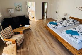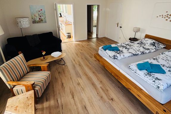 Entdecken Sie Ihr perfektes Apartment für erholsame Ferien! Unsere charmante Ferienwohnung, kleine aber gut geschnittende 43qm², verführt mit einem einladenden Wohn/Schlafzimmer mit modernem TV, einer gut ausgestatteten separaten Küche und einem modernen Du/WC.