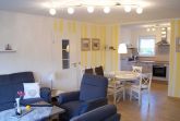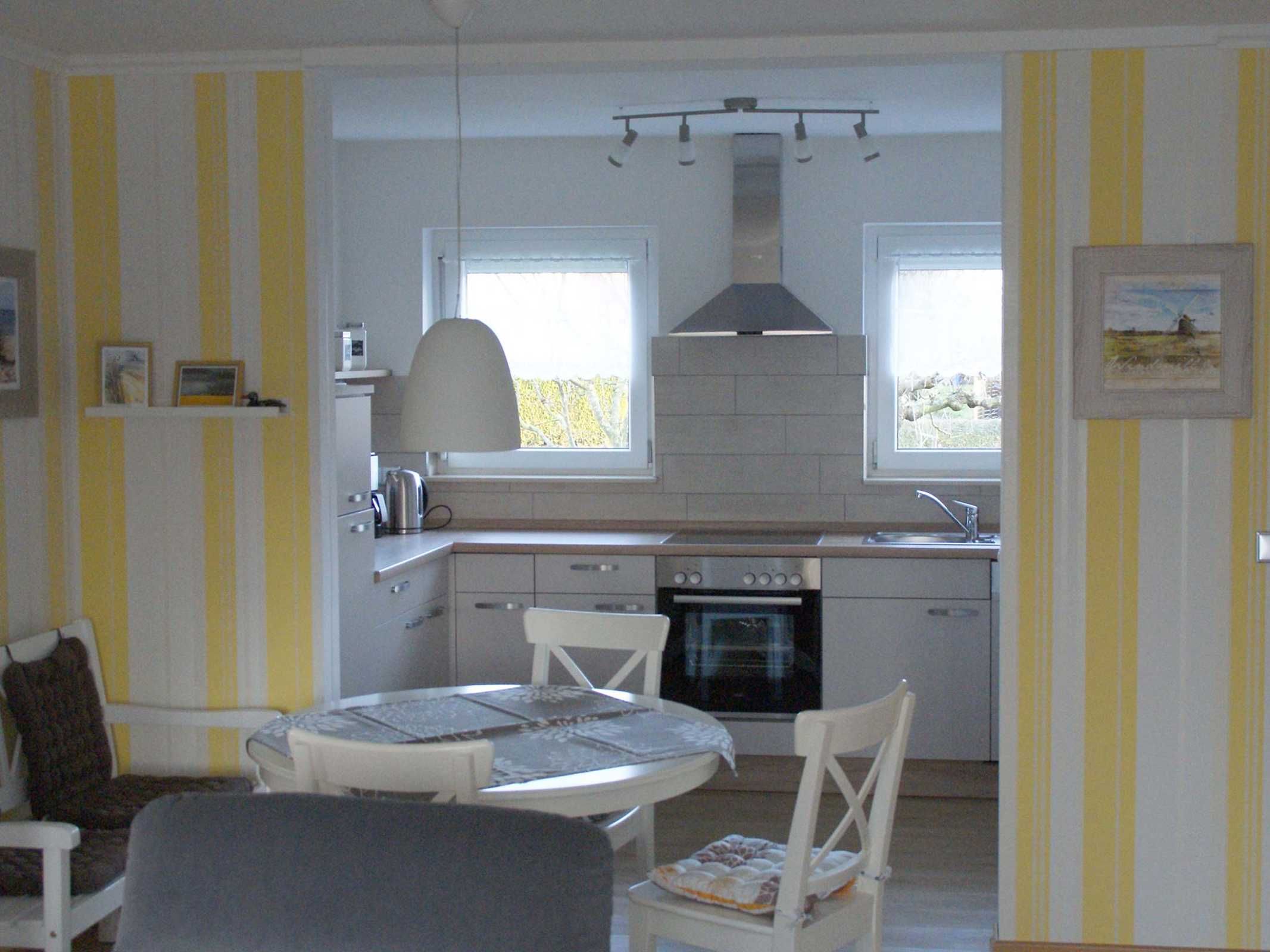Komplett ausgestattetes Ferienhaus mit gemütlichem Wohnzimmer und angrenzender gut ausgestatteter Küche. Zwei Schlafräume mit Doppel- bzw. Einzelbetten und Bad mit Dusche/WC. Westterrasse mit Garten.