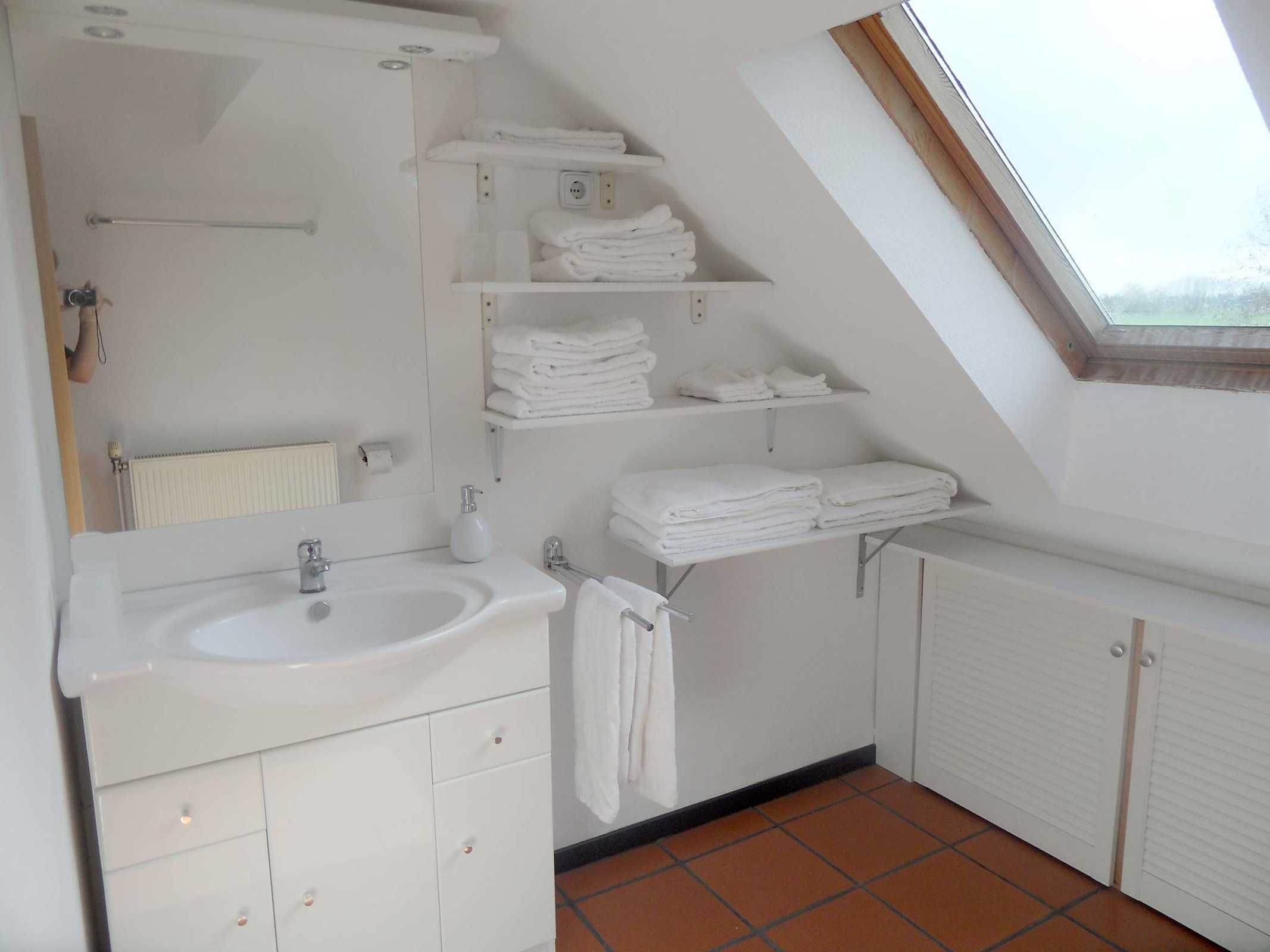 Die ca 90m² Wohnung im 2. Stock verfügt über zwei separate Schlafzimmer, eine vollausgestattete, separate Küche (Herd mit Backofen, Kühlschrank, Gefrierschrank, Mikrowelle, Wasserkocher, Kaffeemaschine, Eierkocher) und zwei Badezimmer: Eins mit Toilette und großem Waschbecken und eins mit Dusche und Badewanne. Das geräumige Wohnzimmer hat einen Fernseher, DVD Player und riesiges Panoramafenster mit Blick über unsere Ländereien. Eine gemütliche Sitzecke mit Ohrensessel lädt zum Schmöckern ein.