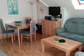 Unsere zwei Ferienwohnungen, im 1. Obergeschoss unseres Hauses Mühlenblick 48 in Carolinensiel, sind gemütlich eingerichtet und bieten Platz für 2 bis 3 Personen. Beide Ferienwohnungen verfügen über einen Wohn-/Essraum mit komplett ausgestatteter Küchenzeile, 2 getrennte Schlafzimmer (1x Doppelbett, 1x Einzelbett) und Duschbad. Kinderbett und Hochstuhl sind ebenfalls vorhanden. Die überdachte Terrasse im Garten mit Grillplatz und Strandkorb steht zur freien Verfügung und ein großer Kinderspielplatz befindet sich nur wenige Meter entfernt. Aus Rücksicht auf nachfolgende Gäste sind Haustiere nicht erwünscht. Für Ihren PKW haben wir Parkplätze direkt am Haus und für Ihre Fahrräder einen verschlossenen Abstellraum.