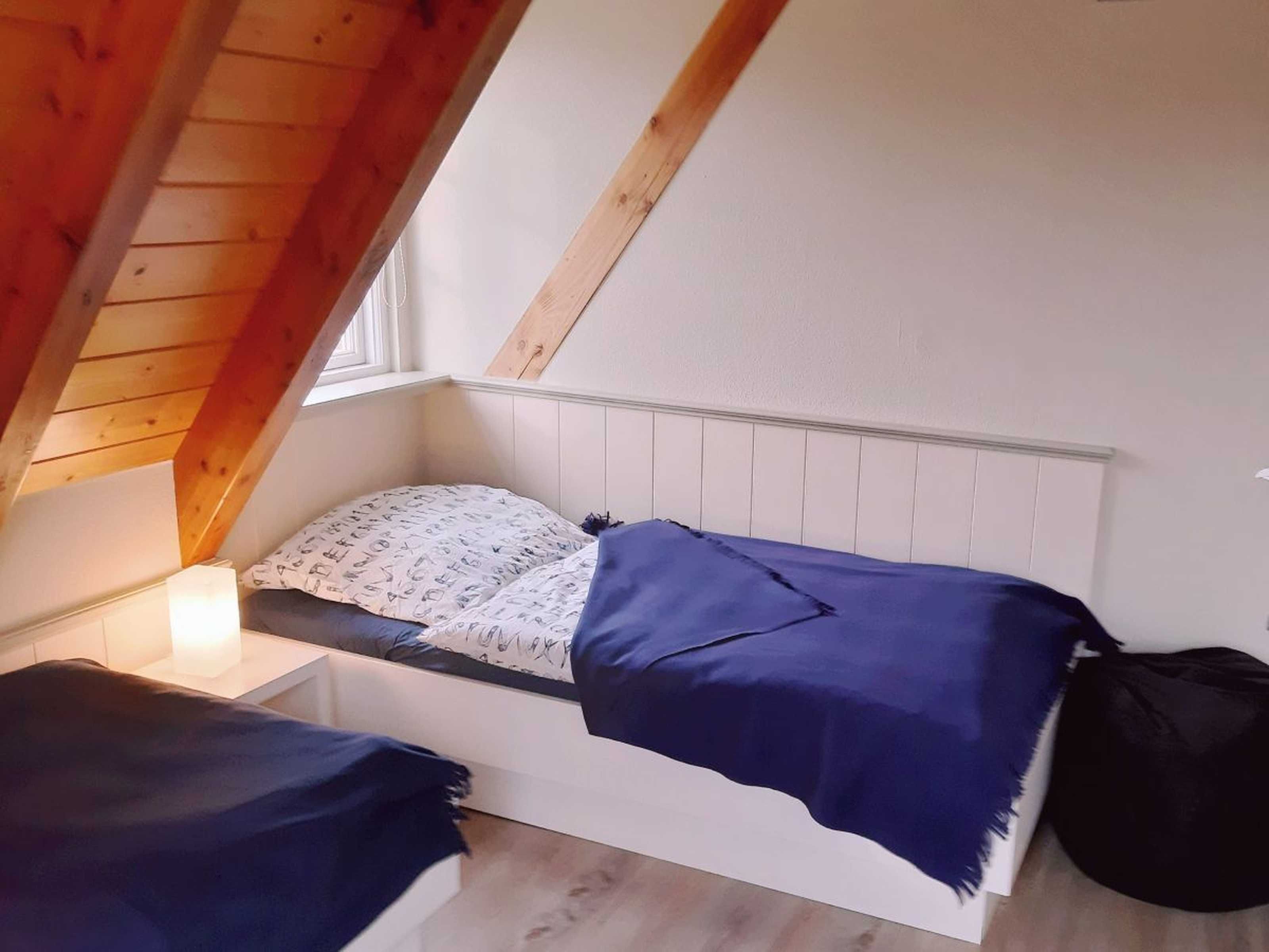 Im Erdgeschoss liegt das geräumige Wohnzimmer mit einliegender Einbauküche. Vom Wohnbereich gelangt man direkt auf die Terrasse mit einem schönem Gartenanteil. Im ersten Obergeschoss befindet sich ein Schlafzimmer mit Doppelbett, ein Schlafzimmer mit zwei Einzelbetten und ein helles Badezimmer mit Dusche.
