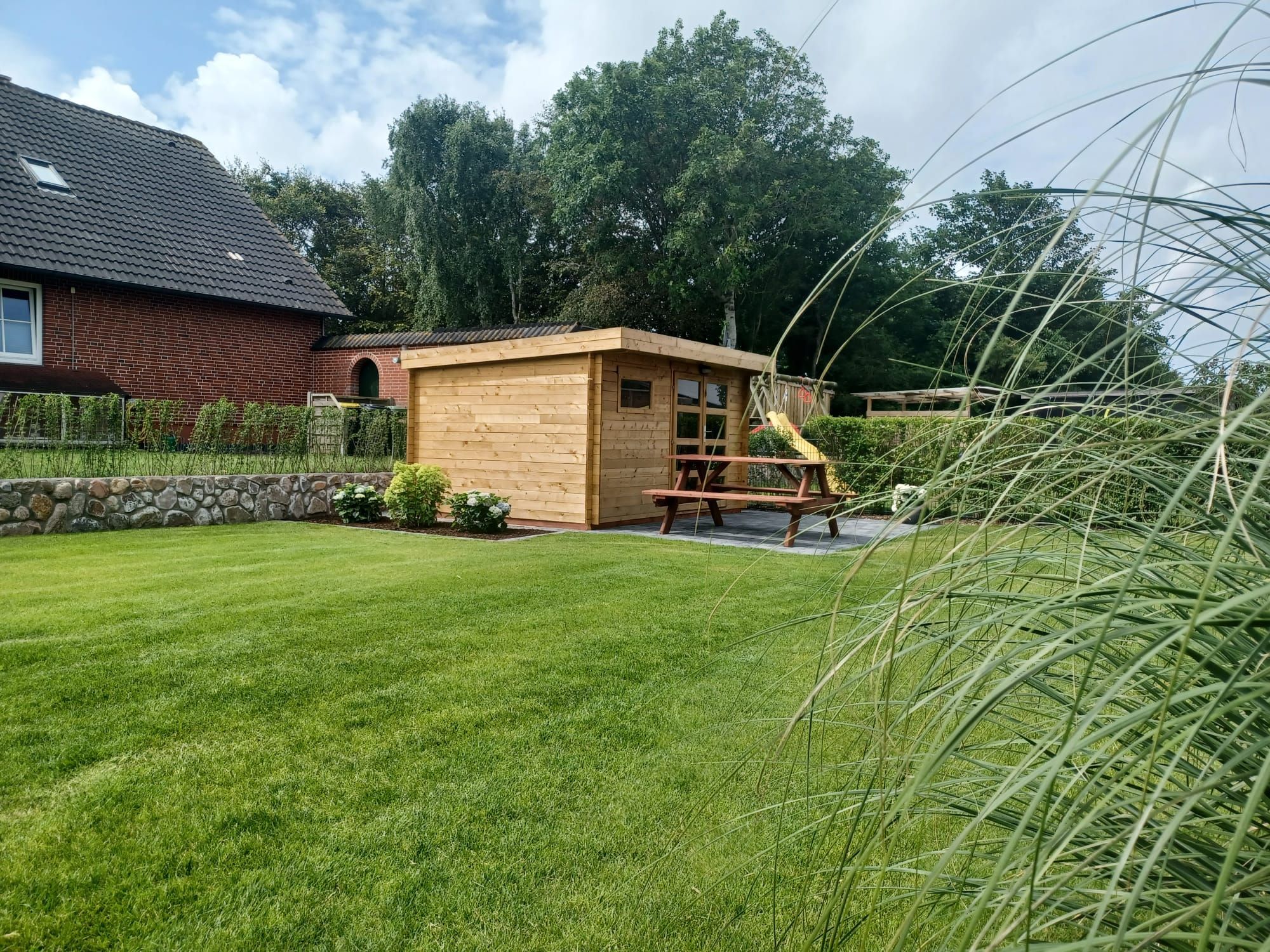 Eine Waschmaschine steht Ihnen im Eingangsbereich zur Verfügung. Die Fahrräder können in einer Gartenhütte untergestellt werden. Auch PKW-Stellplatz ist vorhanden.
