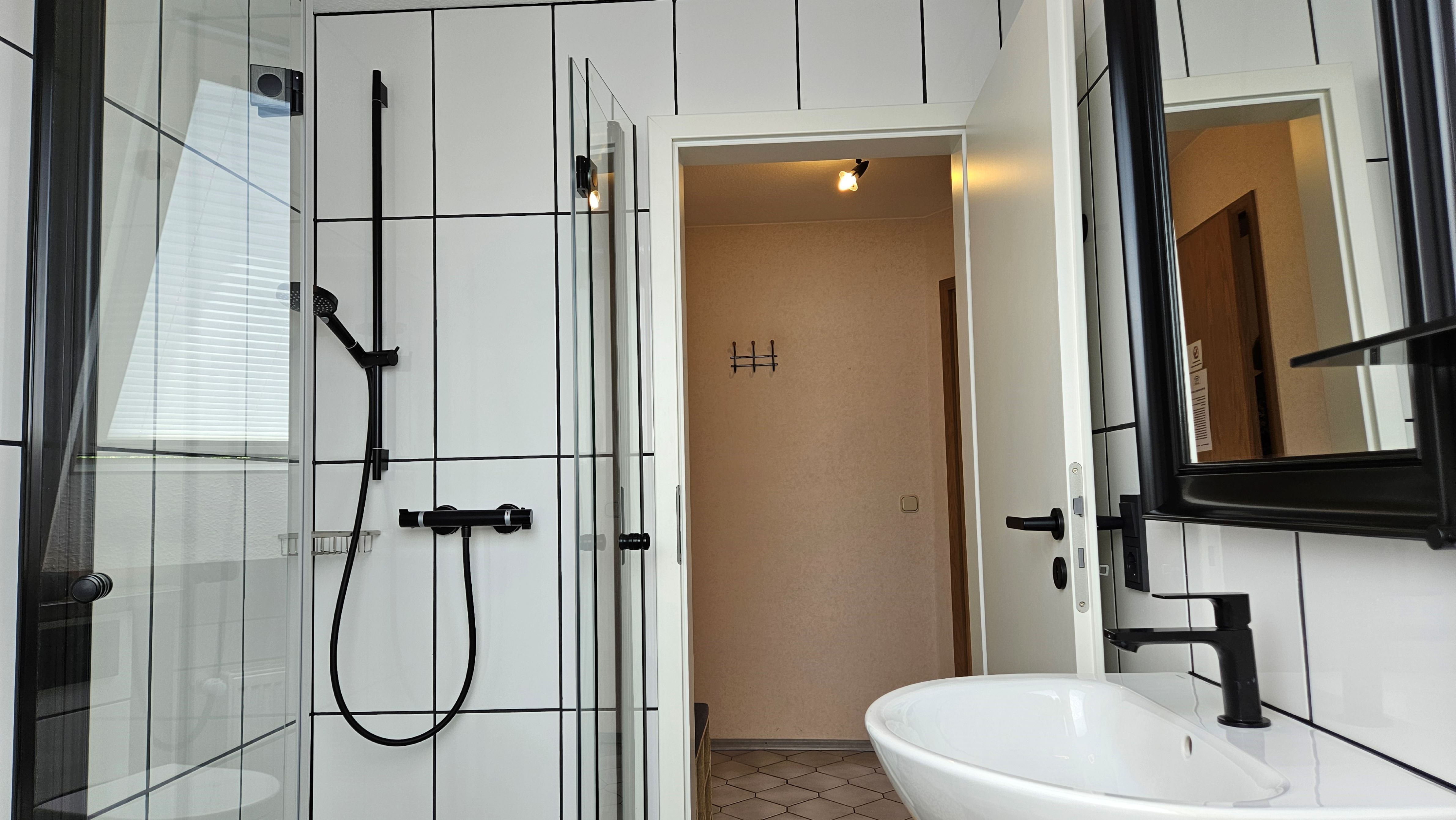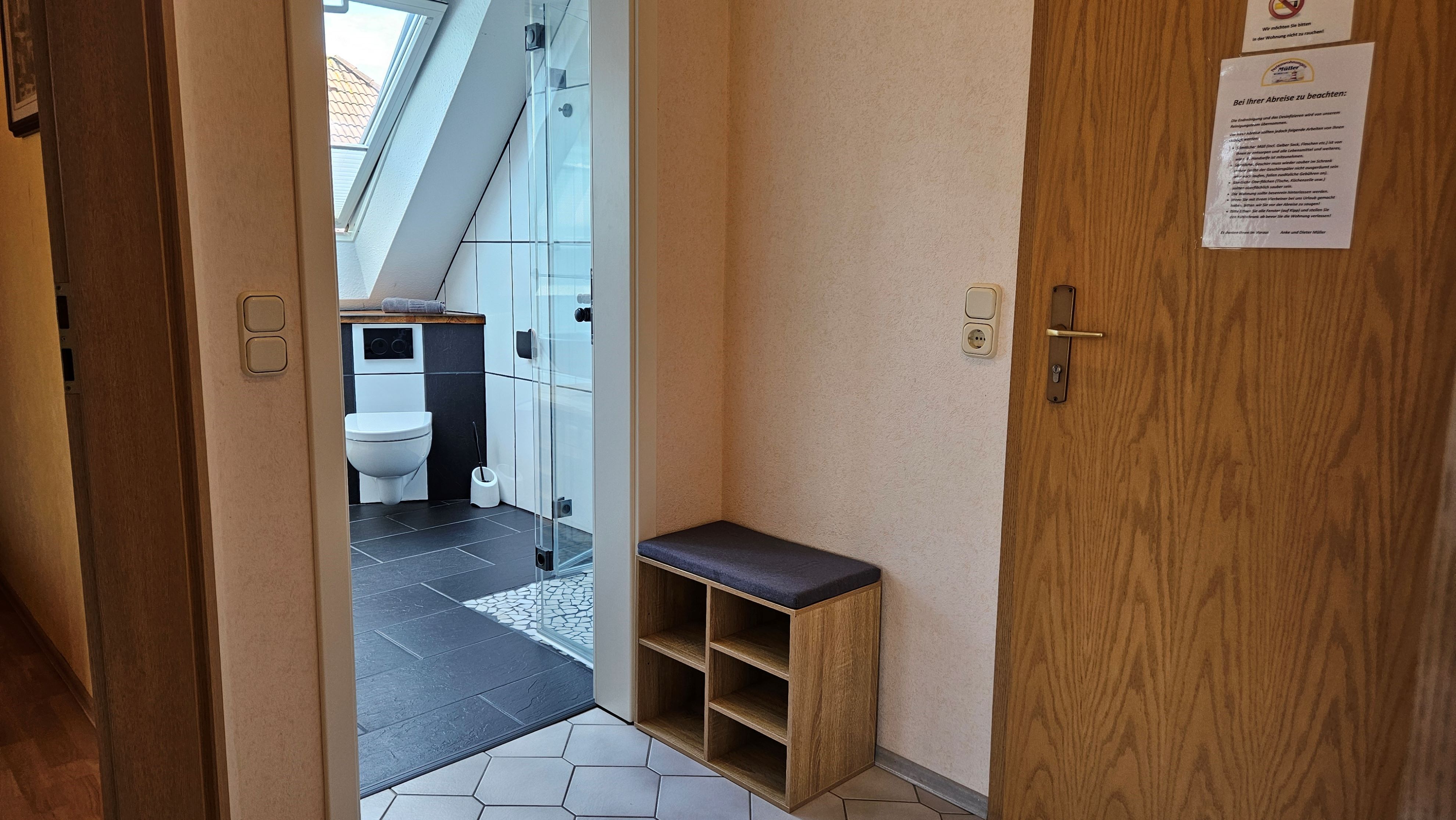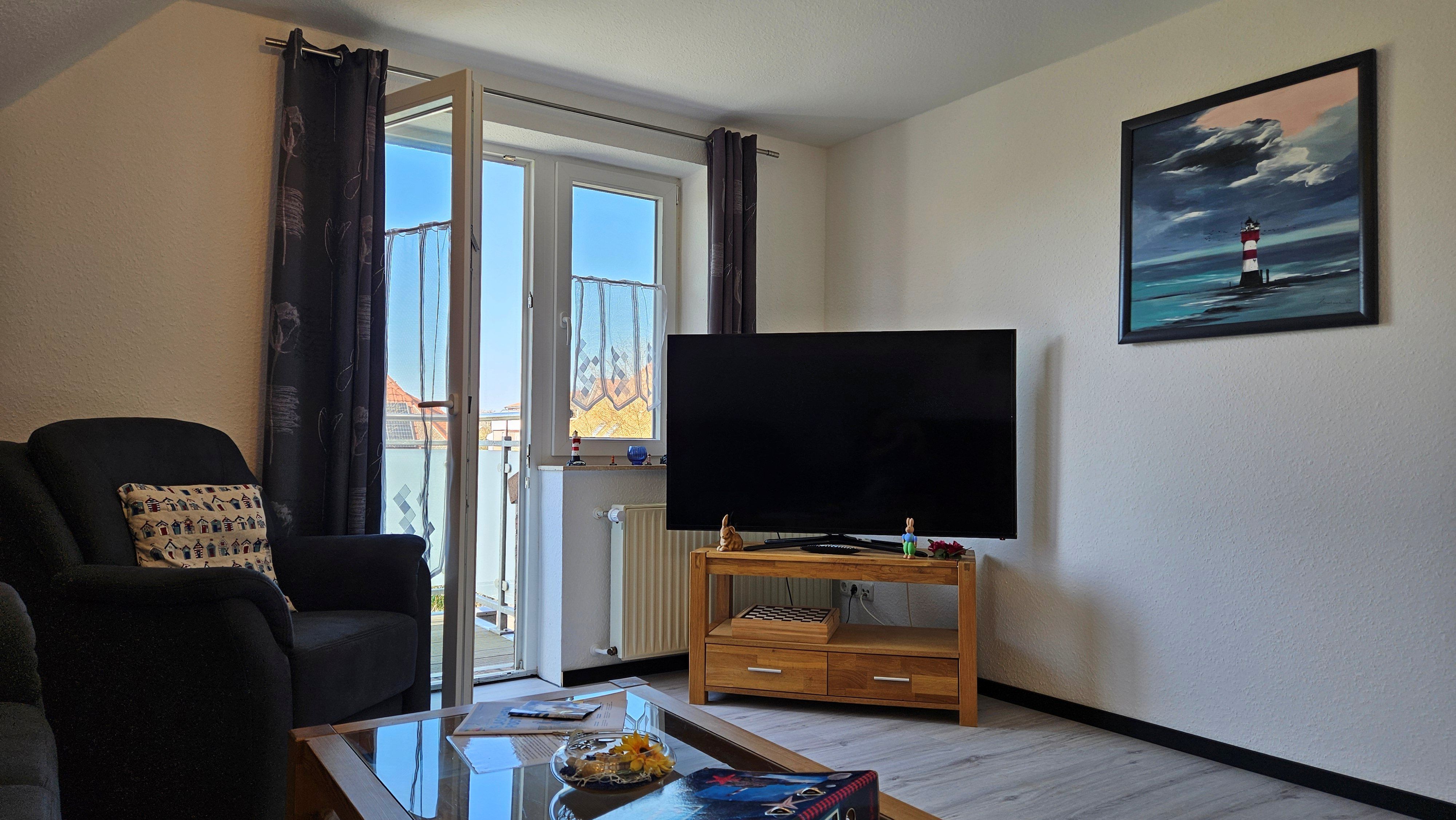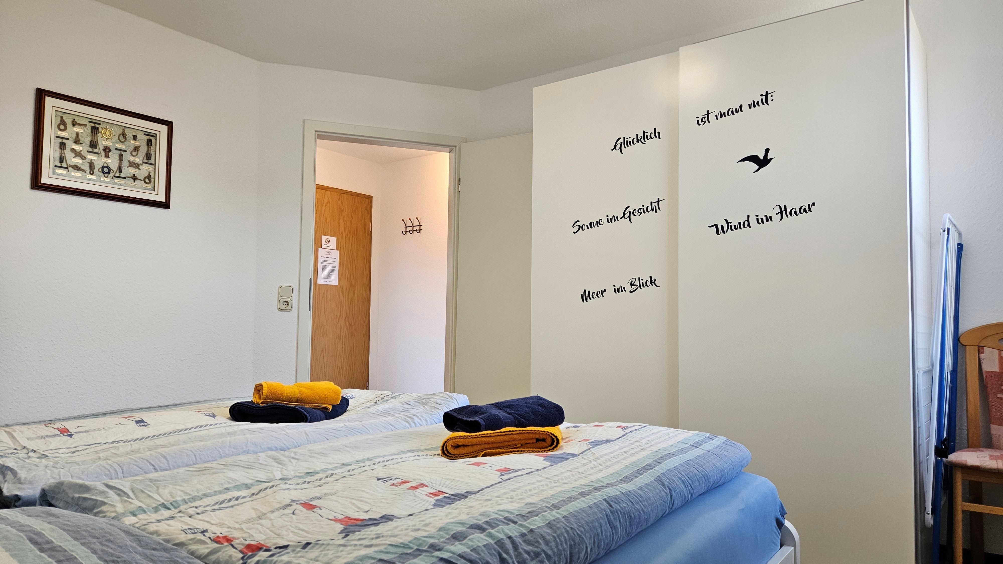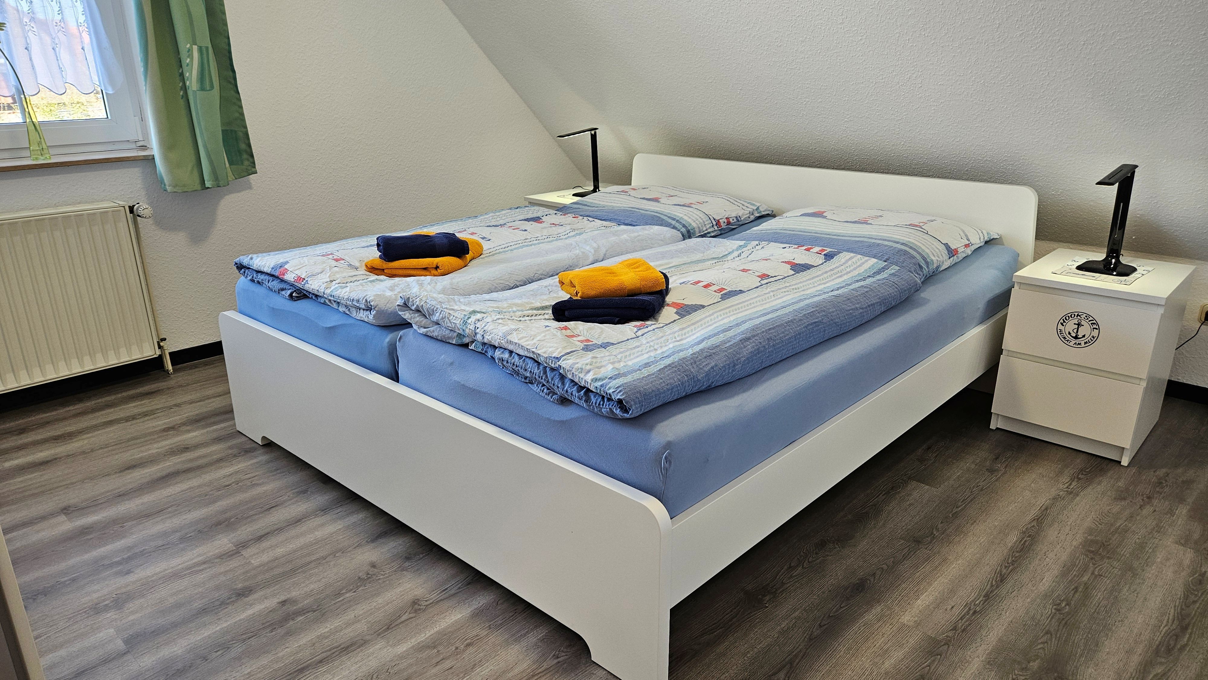Die Nichtraucherwohnung Roter Sand befindet sich im Obergeschoß und bietet einen gemütlichen Wohnraum, einen Schlafraum mit Doppelbett, eine separate Küche mit Sitzecke sowie ein Badezimmer mit Tageslicht und ebenerdiger Dusche. Sie ist komfortabel und gemütlich eingerichtet und mit Fliesen- und Laminatböden ausgestattet. Sie verfügt über einen Flachbild-Fernseher und einen Blu-ray-Player. In der Küche steht für die Selbstversorgung alles zur Verfügung (Geschirrspüler, Backofen, Wasserkocher, Mikrowelle, Kühlschrank mit Eisfach).
