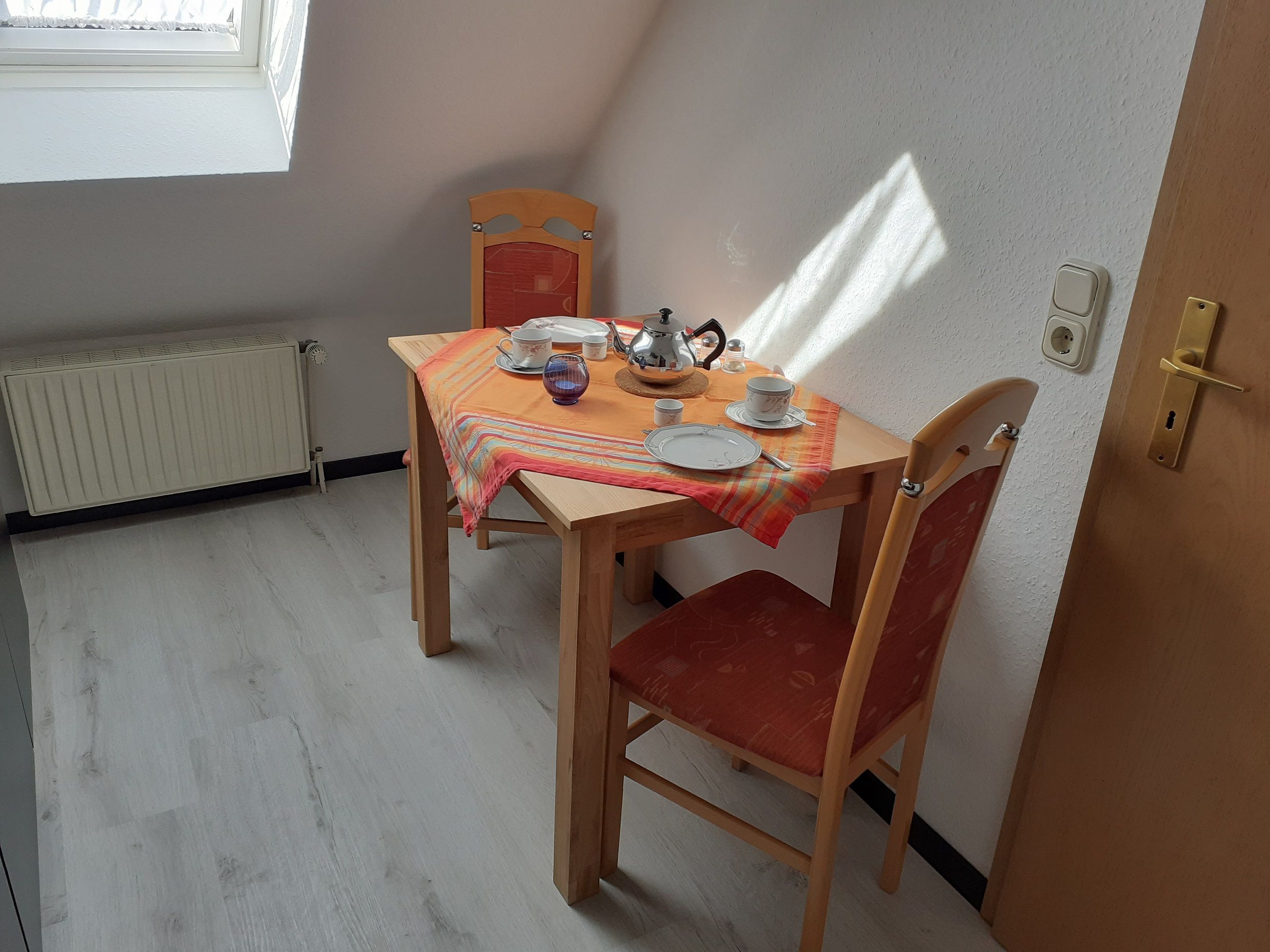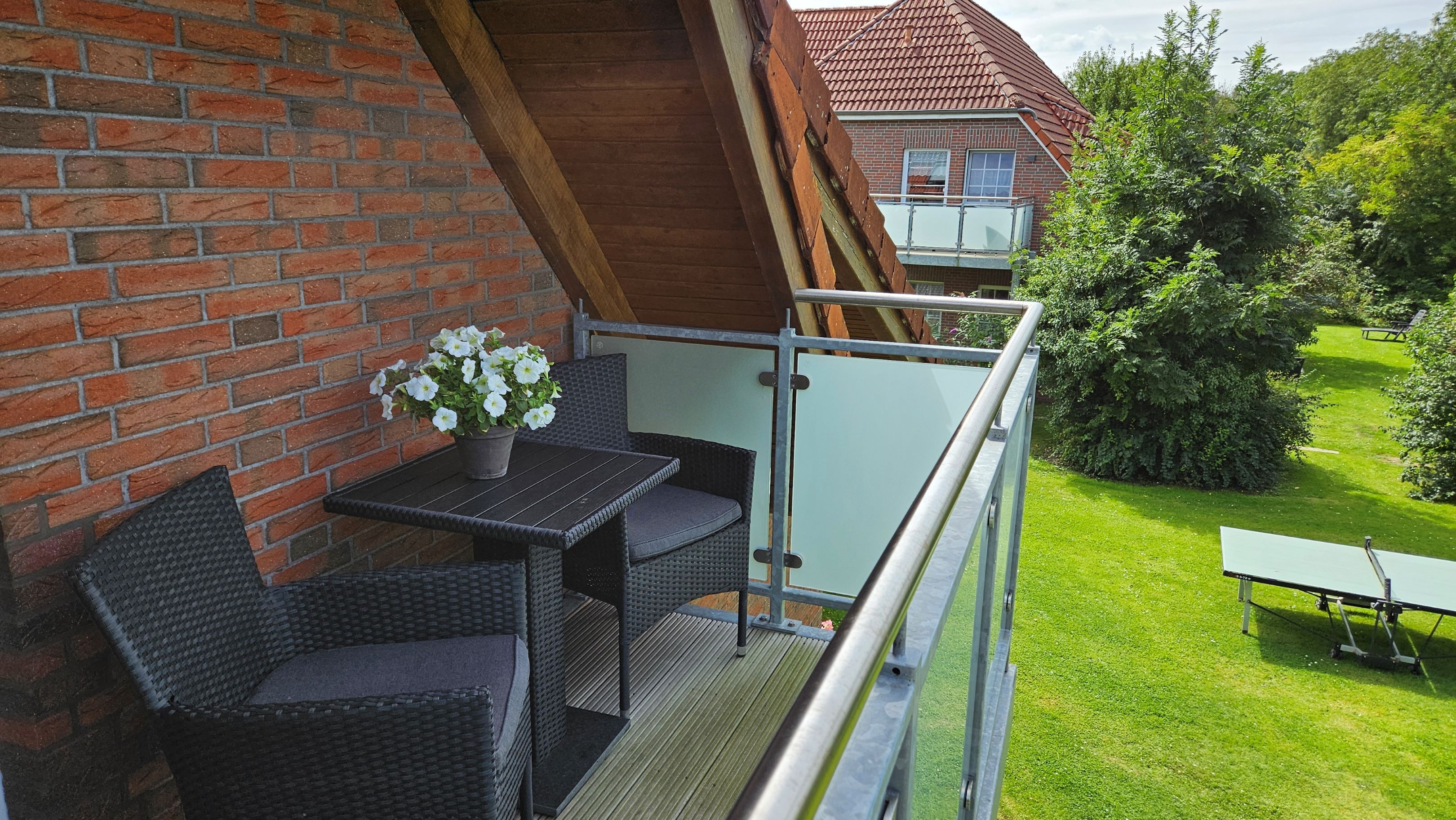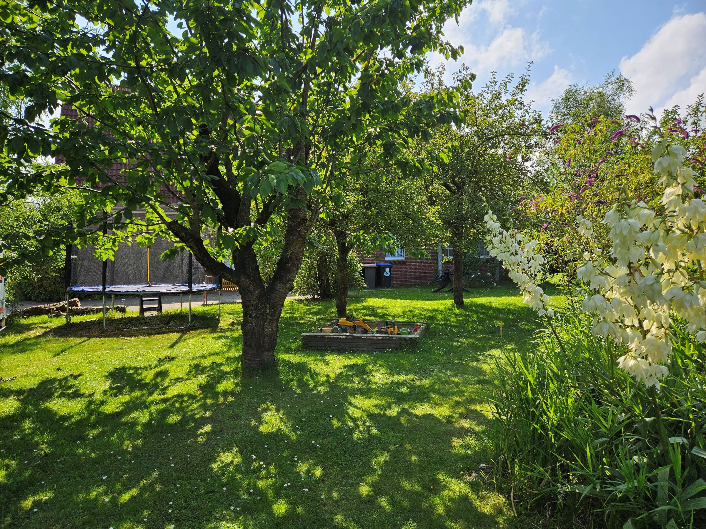 Die Nichtraucher-Ferienwohnung Roter Sand befindet sich im Obergeschoß des Hauses. Der große Garten mit vielen Apfelbäumen steht für Sie zur Benutzung zur Verfügung. Dort stehen Sitz- und Liegemöglichkeiten für Sie bereit.