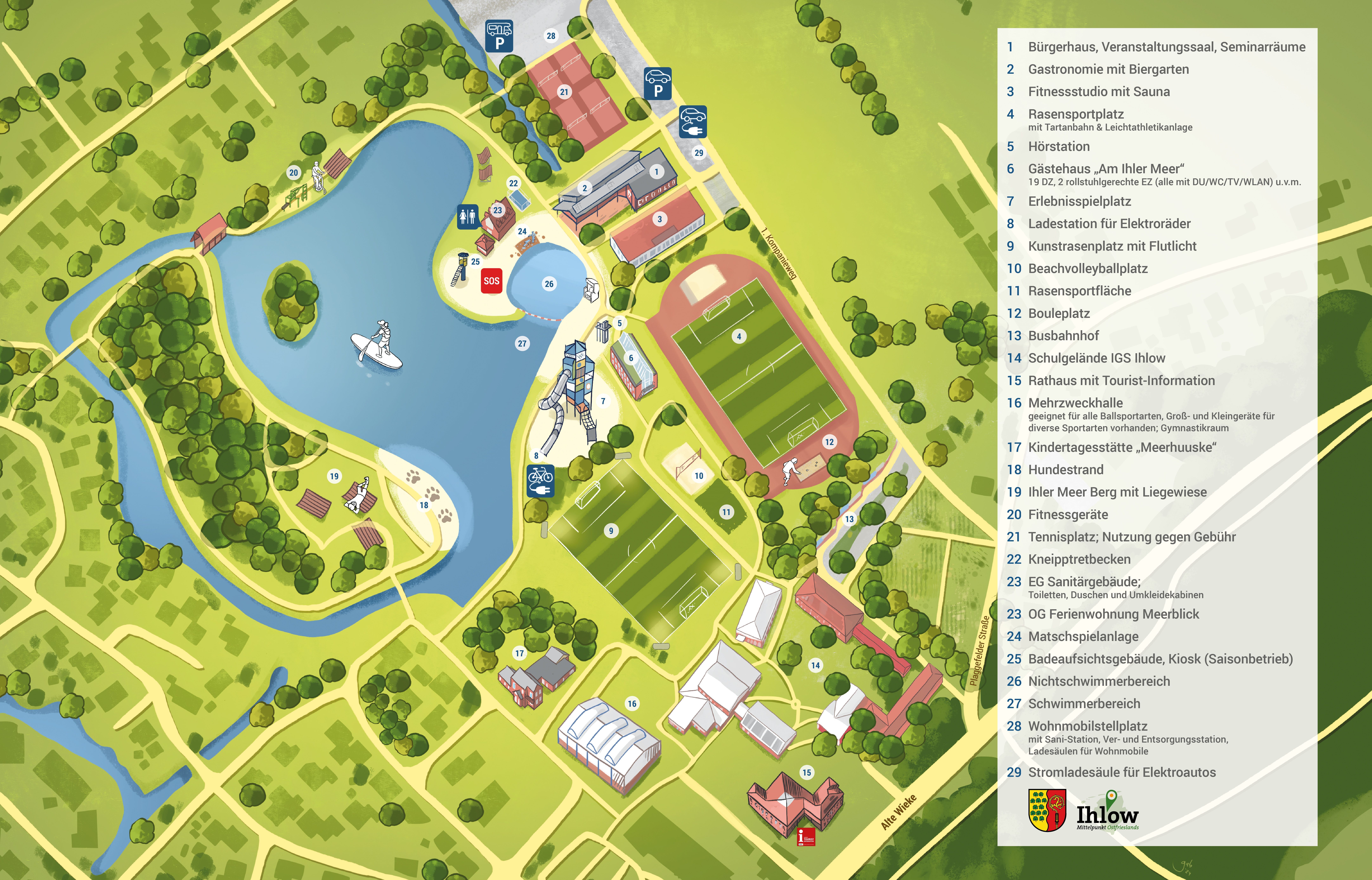 Seit 2023 mit neuem Erlebnisspielplatz und einer Matschanlage für Kinder sowie Outdoor Fitnessgeräte für die Erwachsenen.
