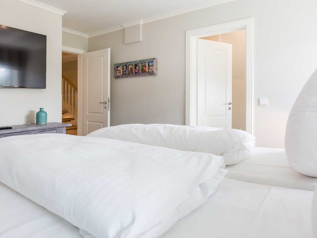 Über eine Wendeltreppe gelangen Sie zu den drei separaten, individuell eingerichteten Schlafzimmern im Obergeschoss. Die hochwertigen Doppelbetten gewährleisten tiefen, gesunden Schlaf. Ebenso komfortabel ist das Bad / WC eingerichtet. Ein Gäste-WC ergänzt die Räumlichkeiten.