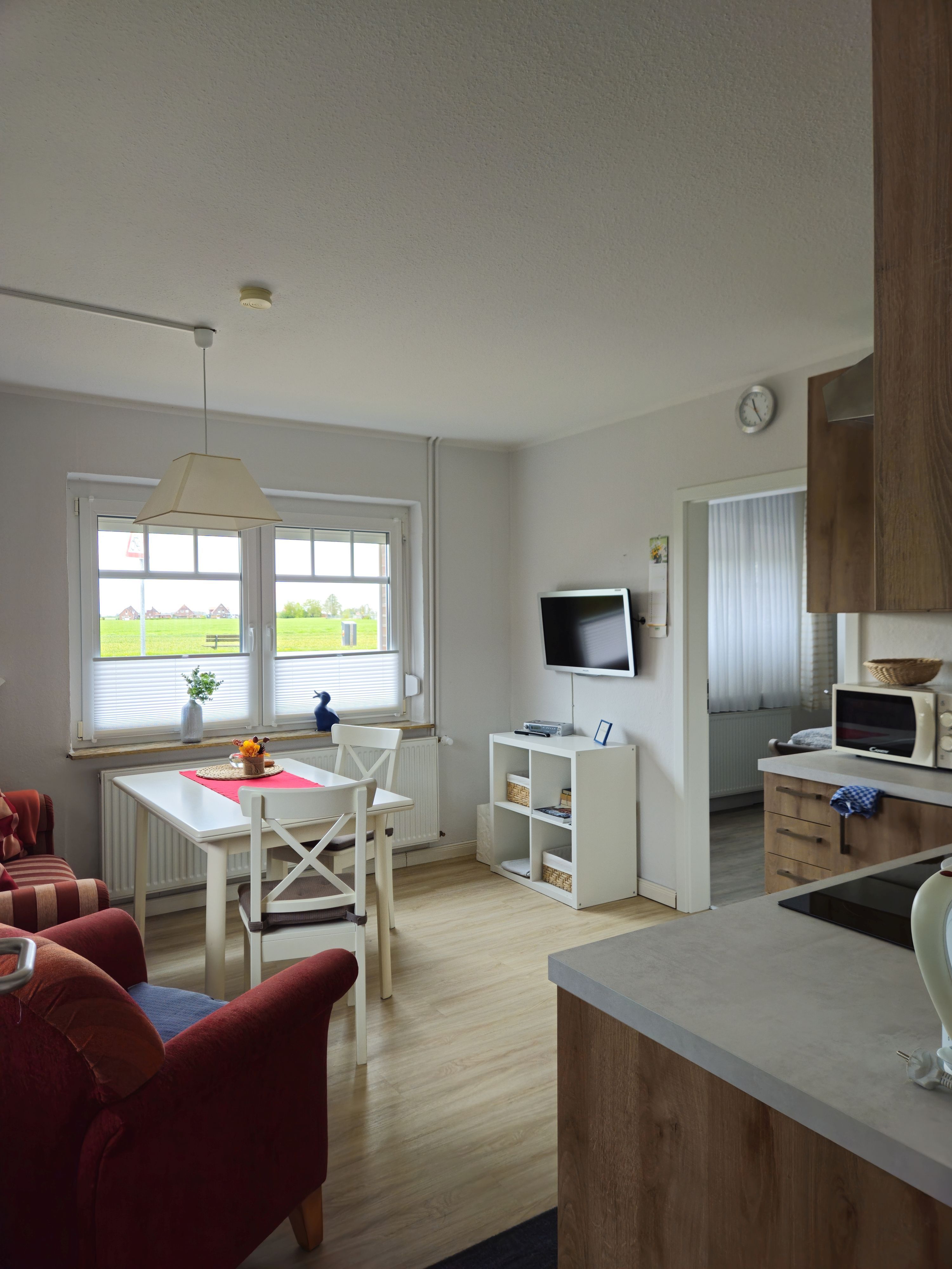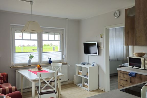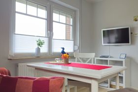 Diese helle und freundliche Ferienwohnung liegt am Ortseingang von Carolinensiel, wenige Gehminuten vom Museumshafen entfernt. Eine kleine Terrasse sowie ein Parkplatz für Ihren PKW steht für Sie bereit. Unterstellmöglichkeit für Fahrräder ist vorhanden.