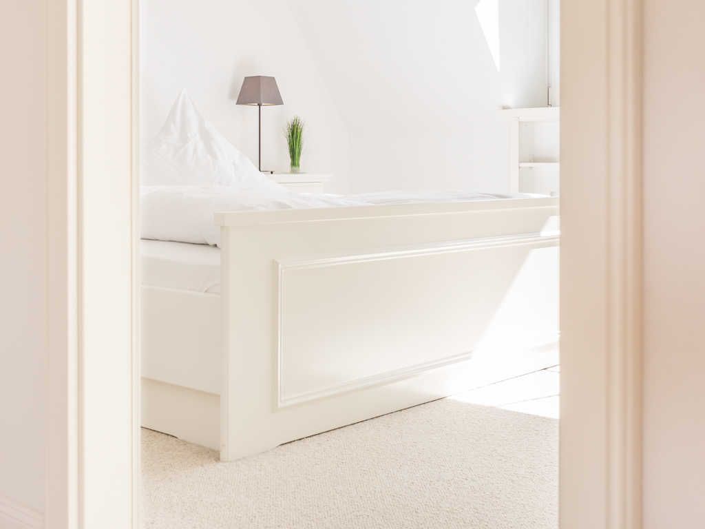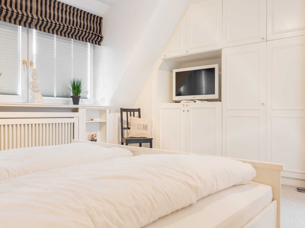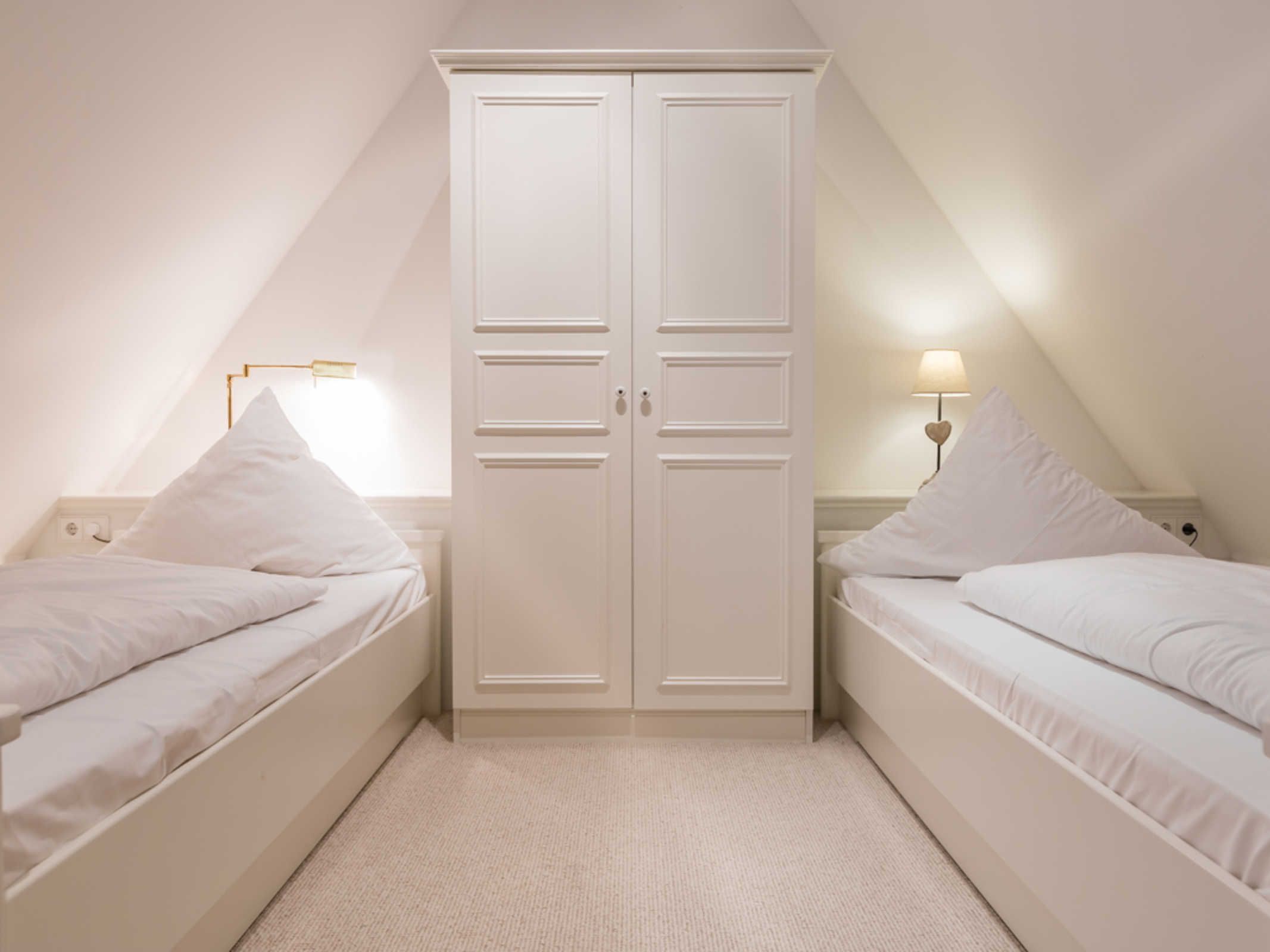 In der oberen Etage befinden sich 2 Schlafräume, die mit einem Doppelbett bzw. zwei Einzelbetten ausgestattet sind.