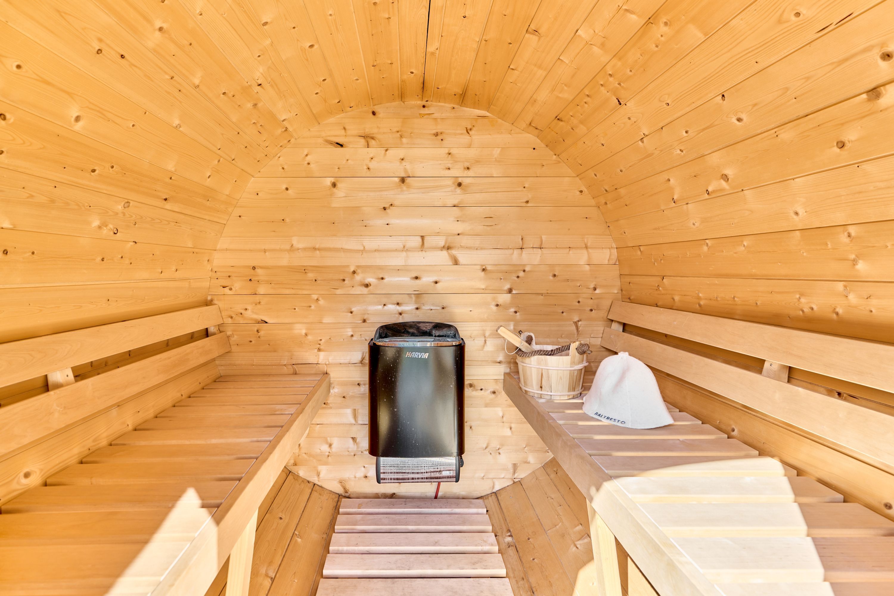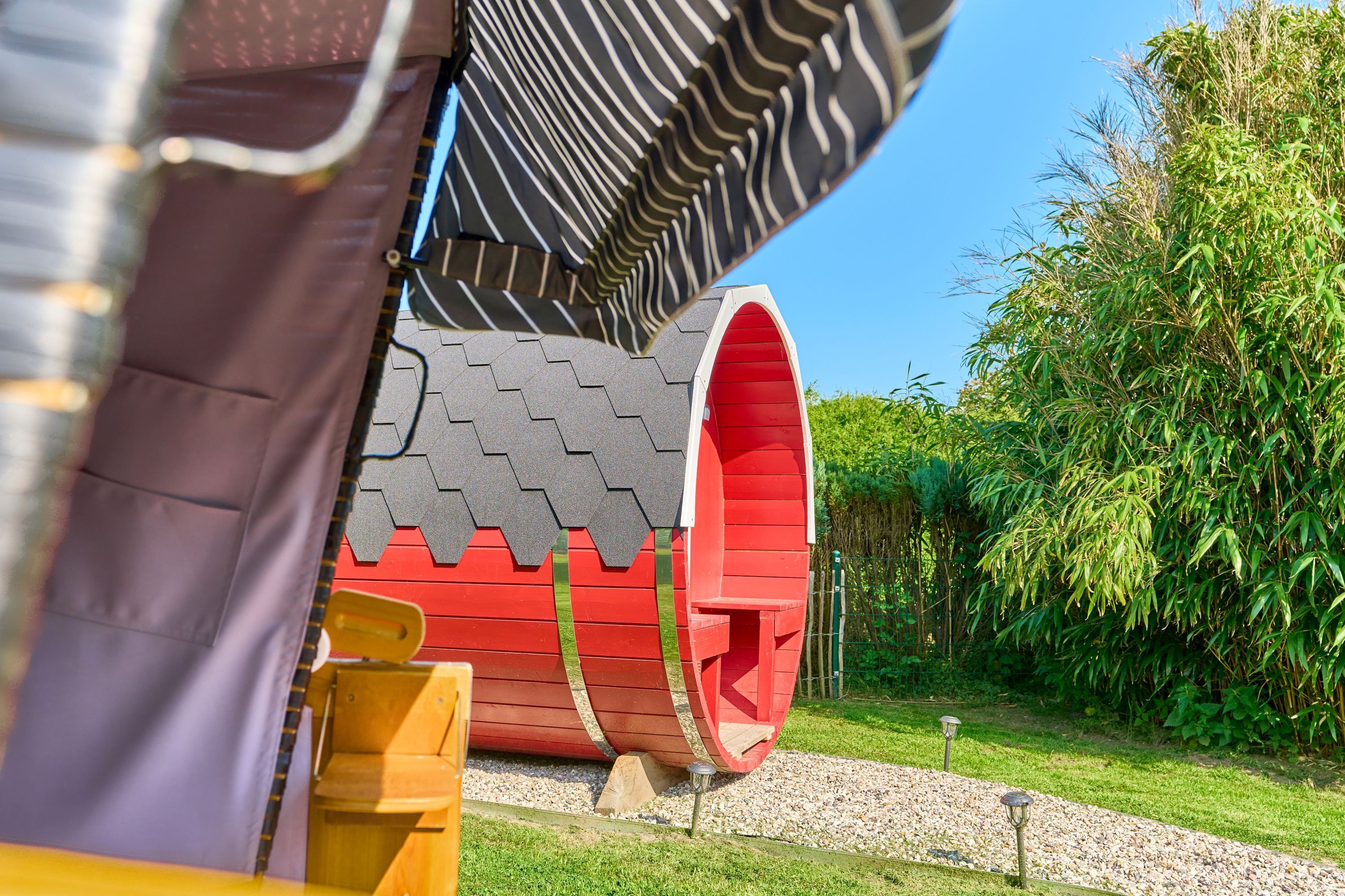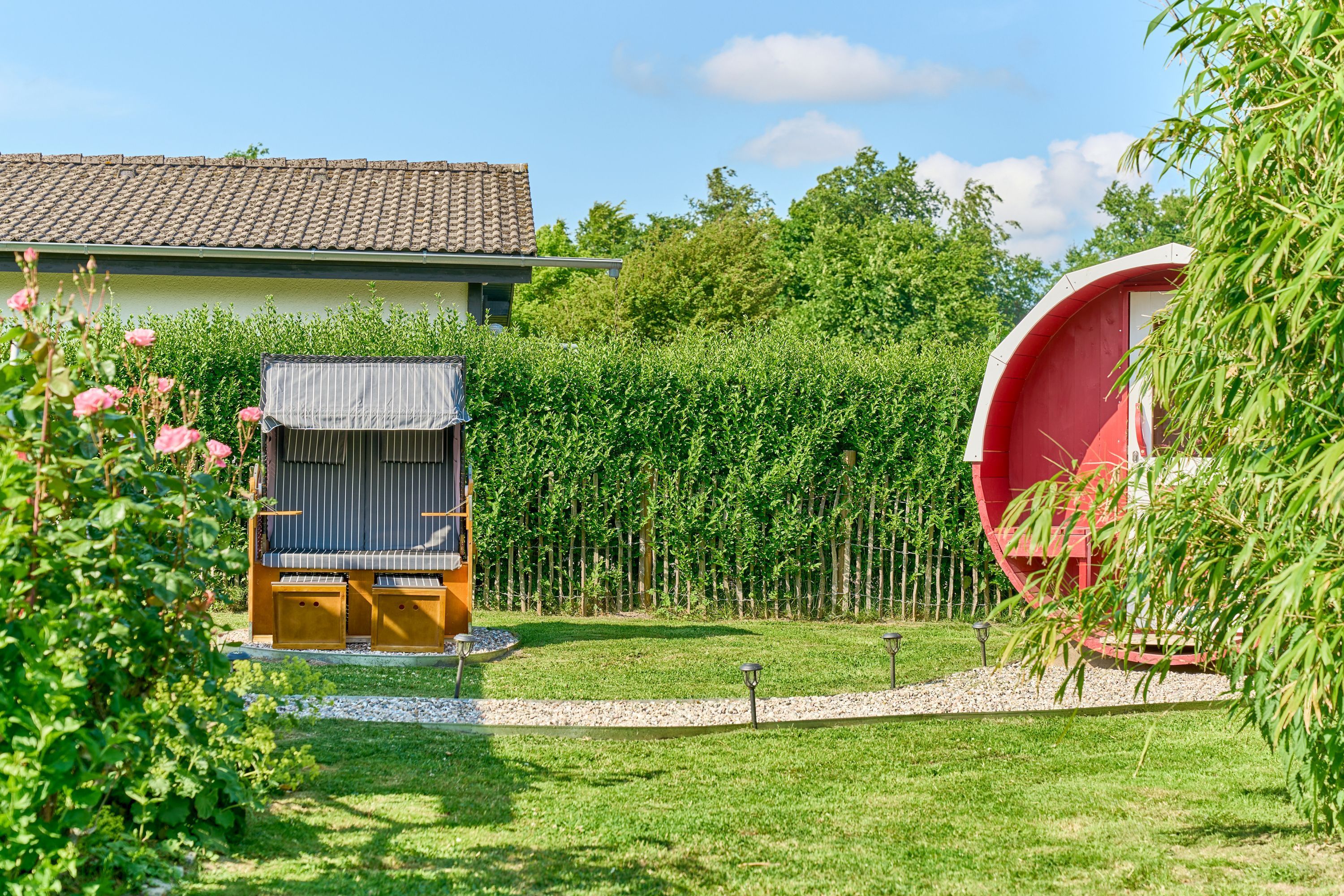 Überdachte Terrasse in Ostlage & Südlage mit Gartenmöbel, PKW Stellplatz, Fasssauna