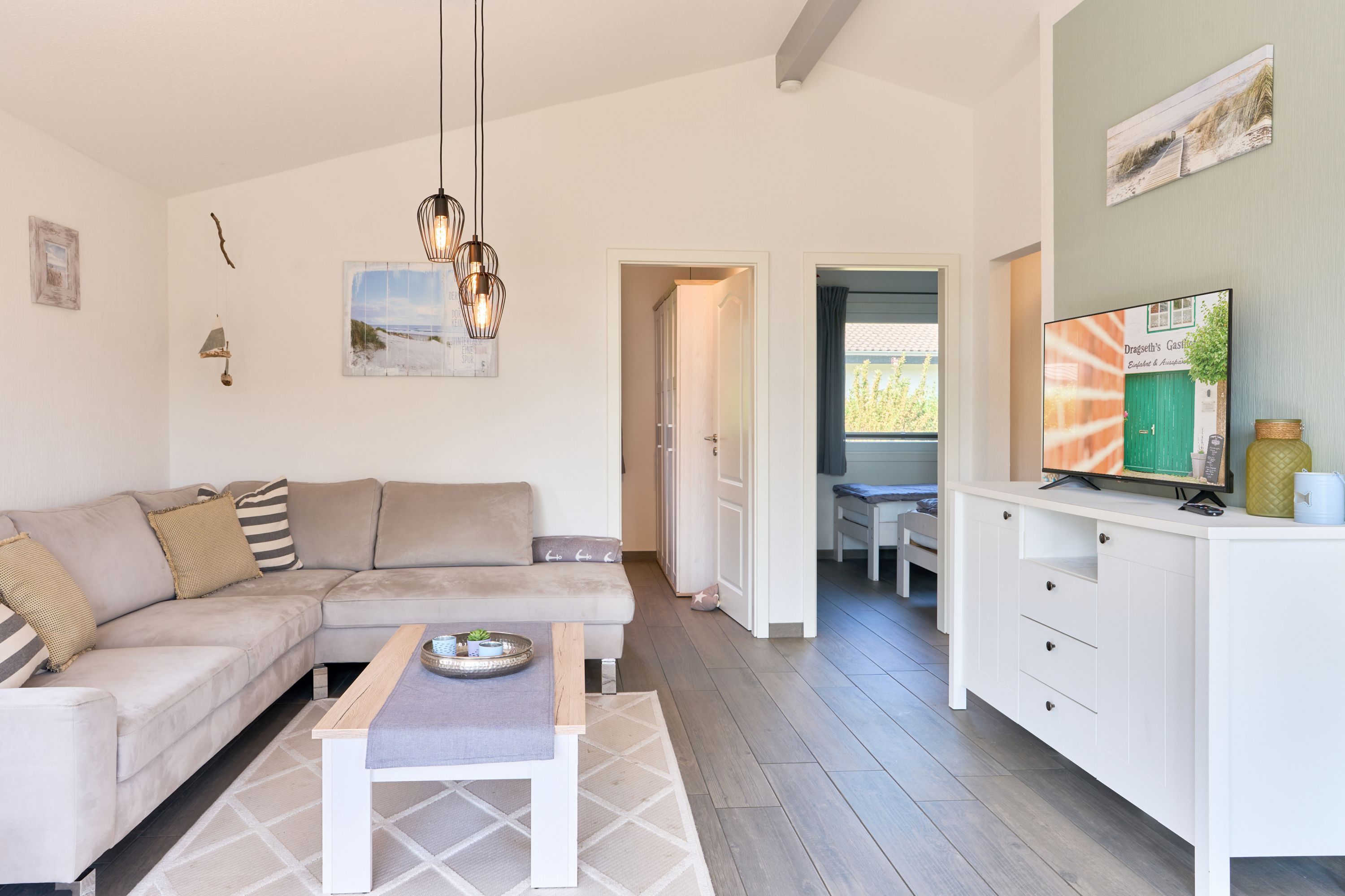 Wohnzimmer, Küche, 2 Schlafräume 1x 160er Bett 2x 80er Betten, 1 Dusch/WC mit bodengleicher Dusche, Fußbodenheizung im ganzen Haus mit WLAN und Waschmaschine.