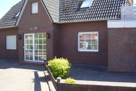 Nichtraucher Erdgeschoss Ferienwohnung in einem gepflegten Ferienhaus mit nur 4 Wohneinheiten und mit einer grossen, komplett eingezäunten Terrasse, für bis zu zwei 2 Personen und einem Baby. Sandstrand, Fischereihafen, Binnensee Mahlbusen mit Kurpark, Meerwasserschwimmbad, Reethaus am Meer und der Ortskern mit allen Geschäften und Restaurants sind bequem fussläufig erreichbar. Keine Hautiere erlaubt