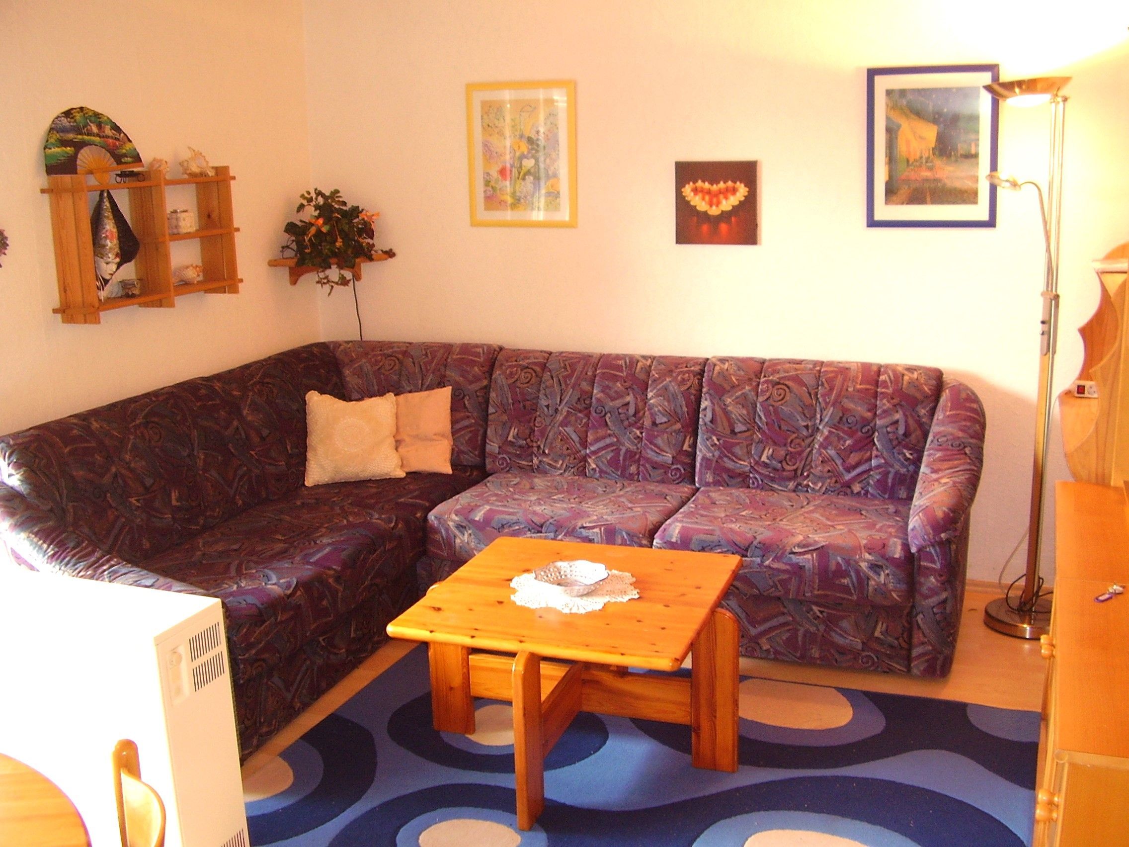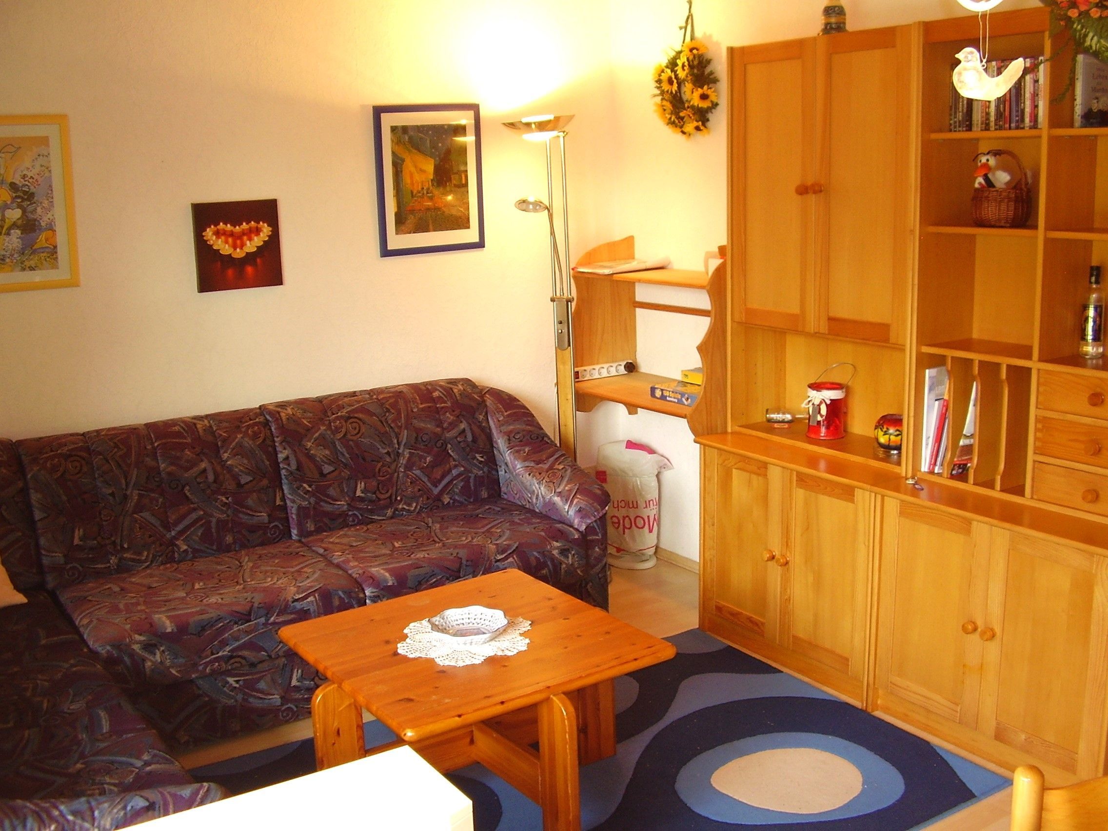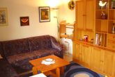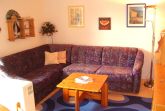 Die Erdgeschosswohnung bietet einen kombinierten Wohn- und Essbereich mit gemütlicher, grosser Sitzecke und Flachbild-TV mit Satempfang sowie einen Esstisch mit Bestuhlung.