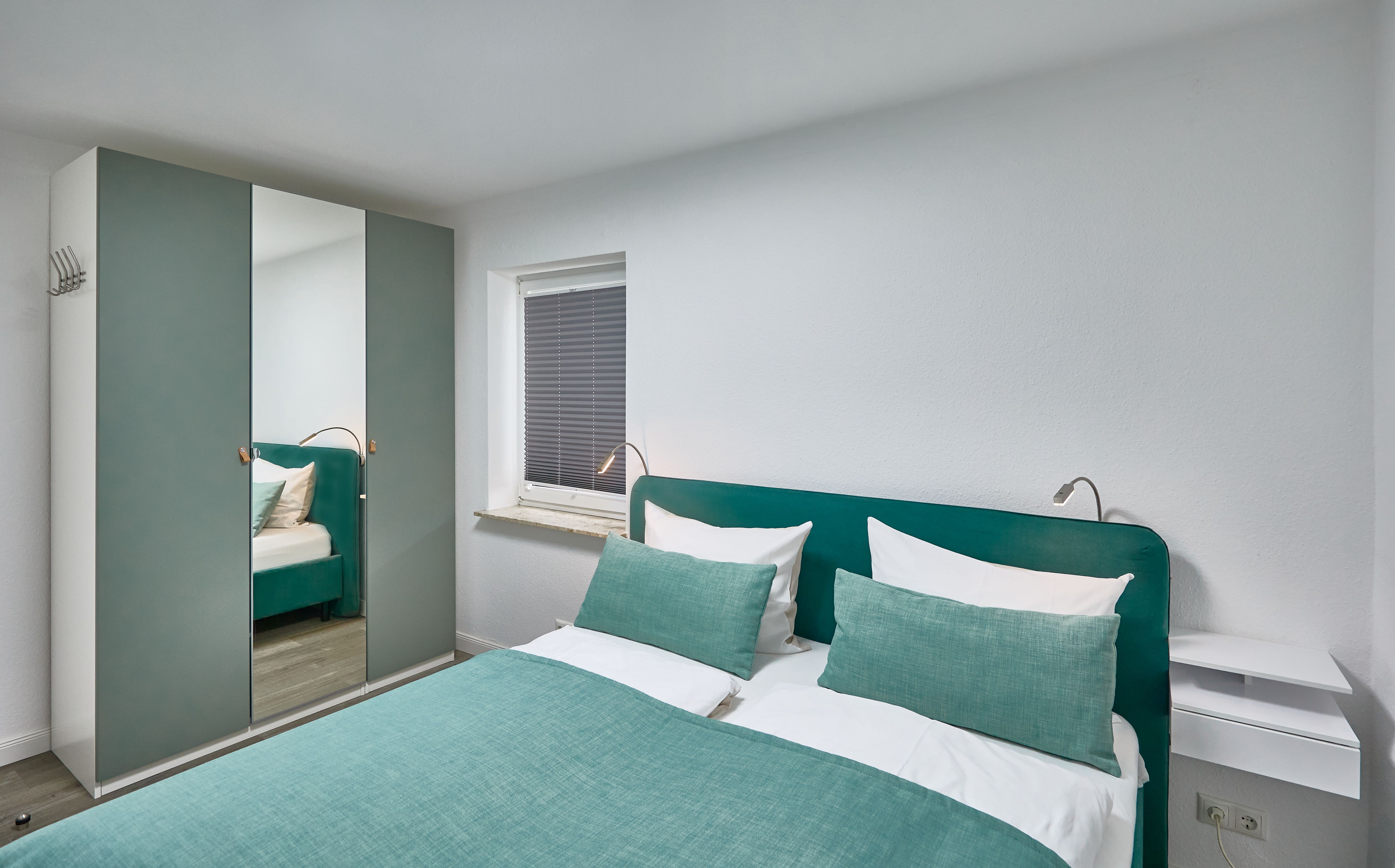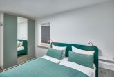 Der Eingangsbereich, mit einer praktischen Garderobe ausgestattet, führt Sie direkt ins Schlafzimmer. Dort erwartet Sie ein geräumiger Kleiderschrank, ein kuscheliges Doppelbett und Verdunklungsmöglichkeiten für traumhafte Nächte. Das Duschbad mit WC punktet mit einem Außenfenster und einem Handtuchheizkörper.