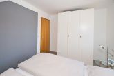 Maike 3b. Die schöne Ferienwohnung für bis zu 3 Personen liegt in der Anlage Maike im 1. OG eines Endreihenhauses und ist aufgeteilt mit einem kleinen Vorflur, Duschbad/WC, Schlafzimmer mit Doppelbett und einem weiteren Schlafbereich mit einem Einzelbett und Kleiderschrank für die 3. Person, dem Wohnbereich mit großem Esstisch und der gut ausgestatteten Küche. Vom Wohnbereich geht es auf den sonnigen Westbalkon. Eine Waschmaschine zur kostenfreien Nutzung steht für Sie im Badbereich zur Verfügung.