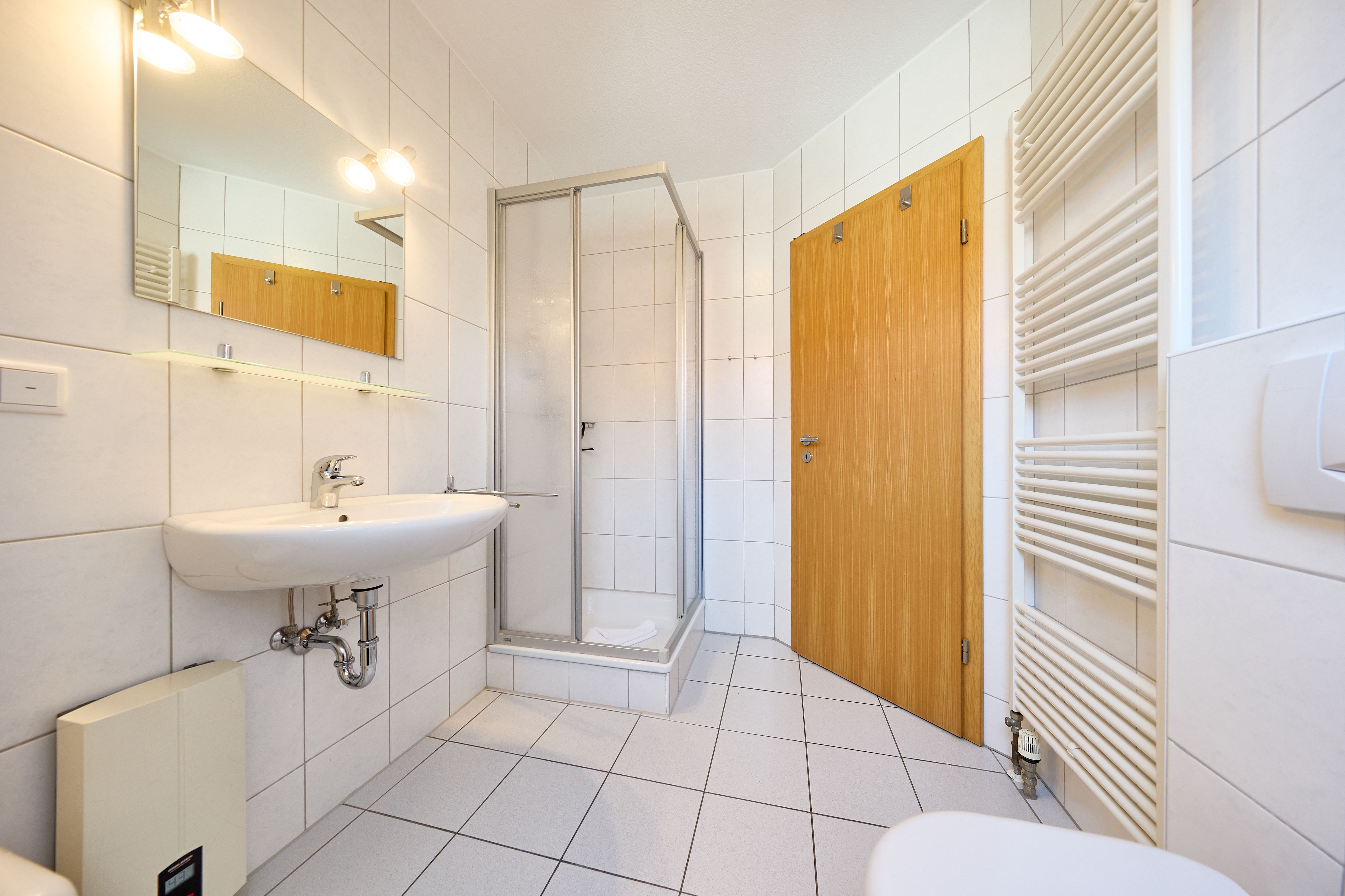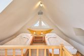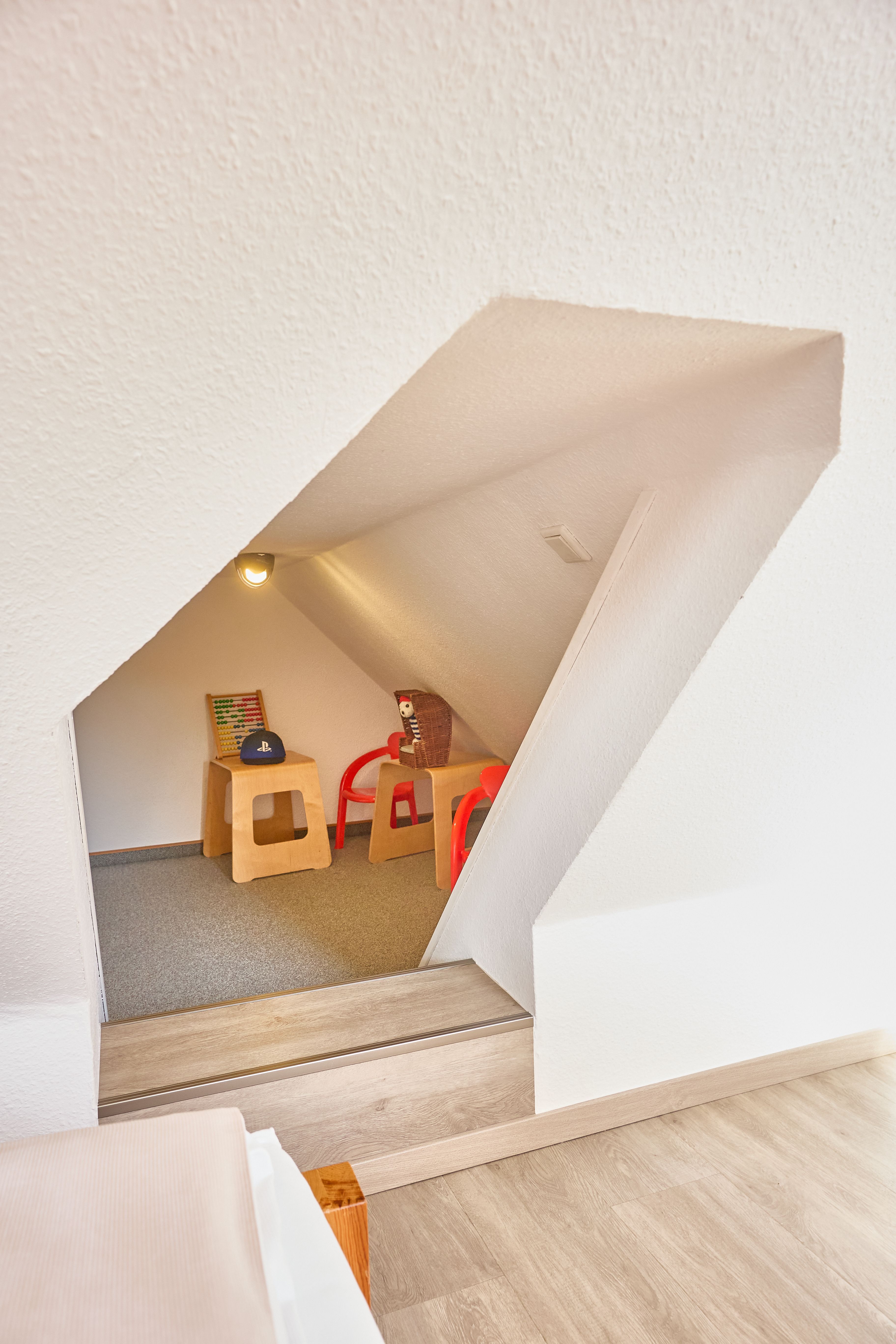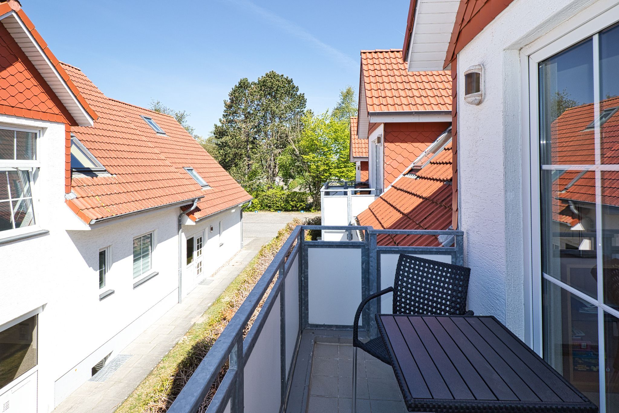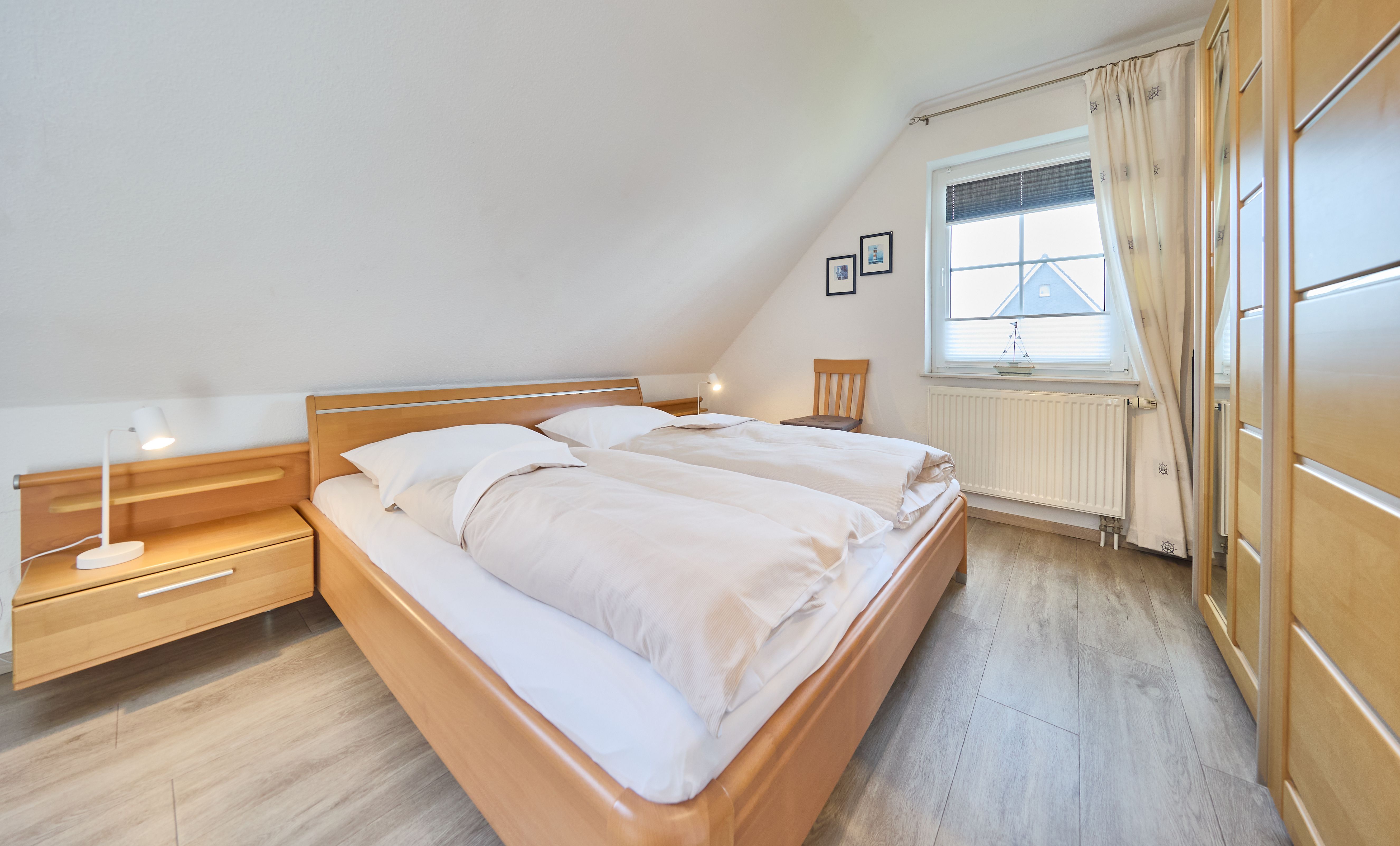 Neptun 12, Whg. 4, 3-Raum, 1.OG + DG, ca. 64m², bis zu 4 Personen, Kleiner Spielbereich für die Kleinen im Dachgeschoss. Die Ferienwohnung ist für bis zu 4 Personen geeignet und ist aufgeteilt mit einem separaten Schlafzimmer, mit einem Doppelbett (im 1.OG), einem Kinderzimmer (auch für Große) mit 2 Einzelbetten und einem Spielbereich für die Kleinen (im ausgebauten Dachgeschoss, ein fest eingebautes Treppenschutzgitter ist oberhalb der Treppe vorhanden), einem hellen Duschbad/WC, dem Wohnbereich mit Zugang zum Balkon und dem Essbereich mit der komfortablen Einbauküche. Der gemütliche und sonnige Balkon, mit Balkonmöbeln lädt zum urlauben ein.
