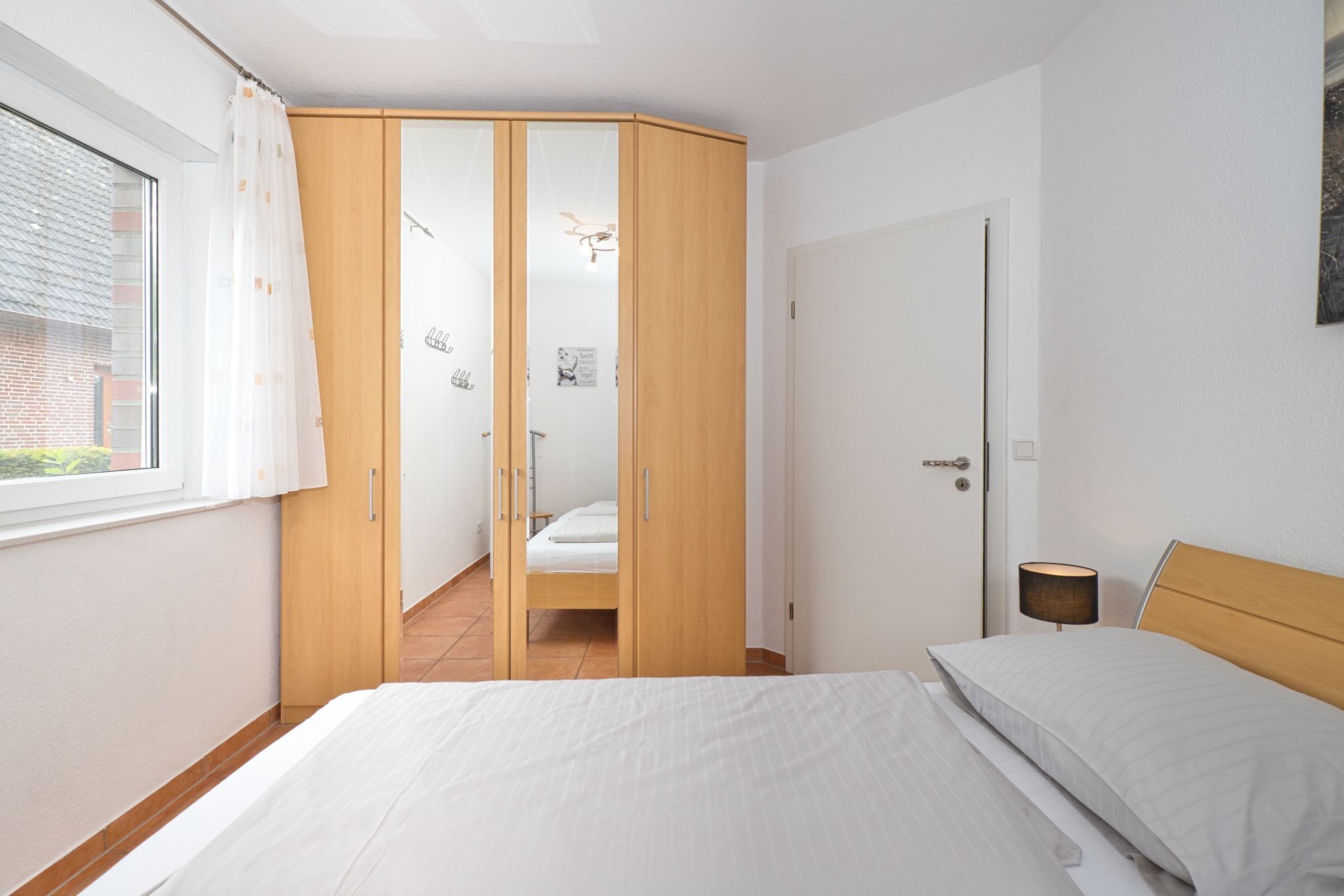 Im separaten Schlafzimmer erwartet Sie ein komfortables Doppelbett und ein großzügiger Kleiderschrank. Das moderne Duschbad ist mit einer bodengleichen, behindertengerechten Dusche, WC und einer praktischen Ablage ausgestattet.