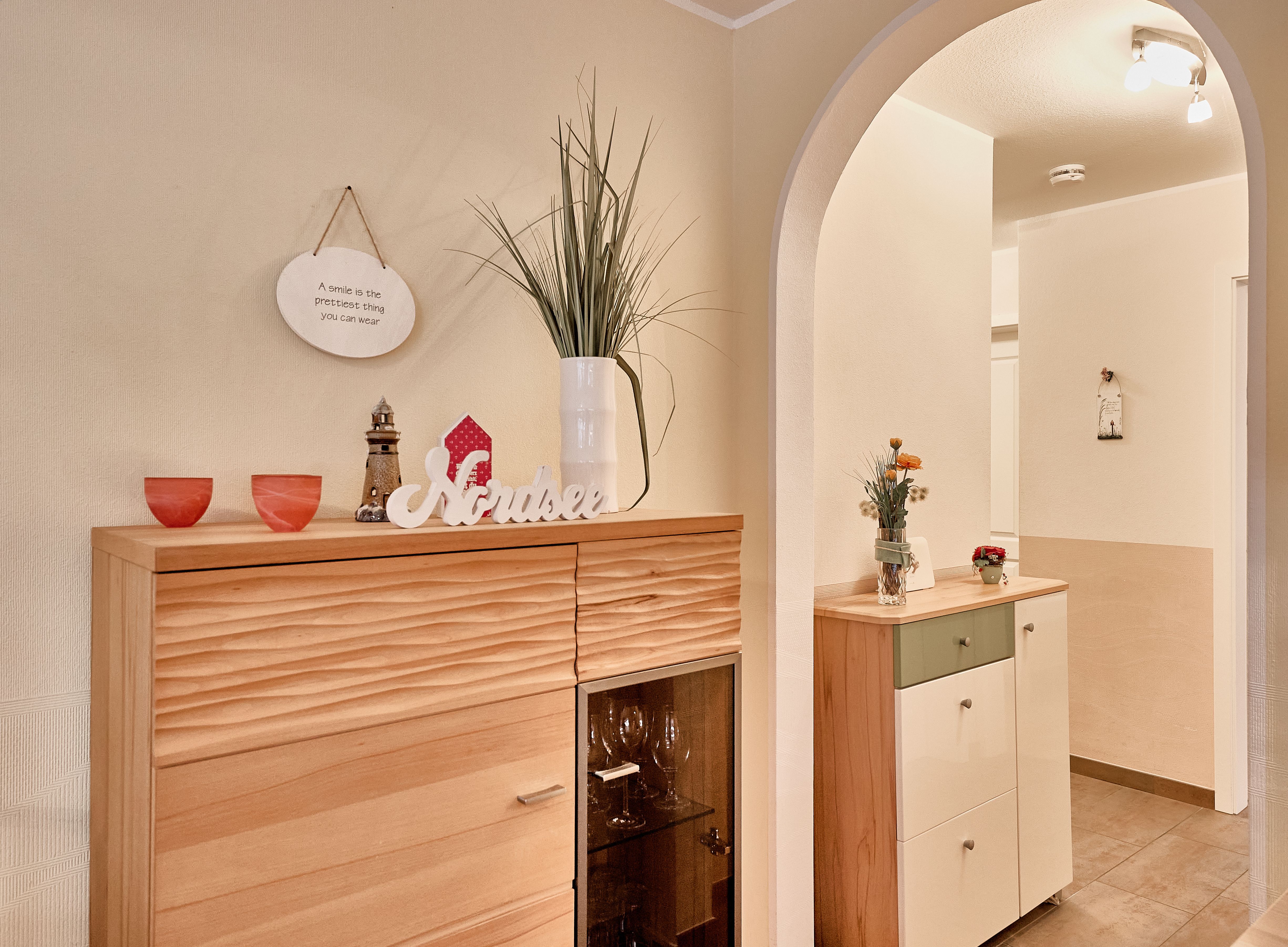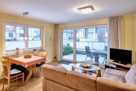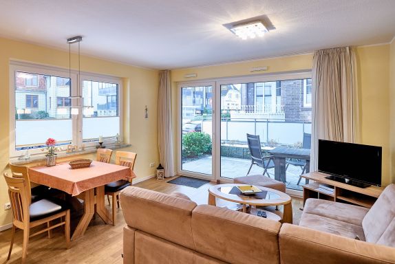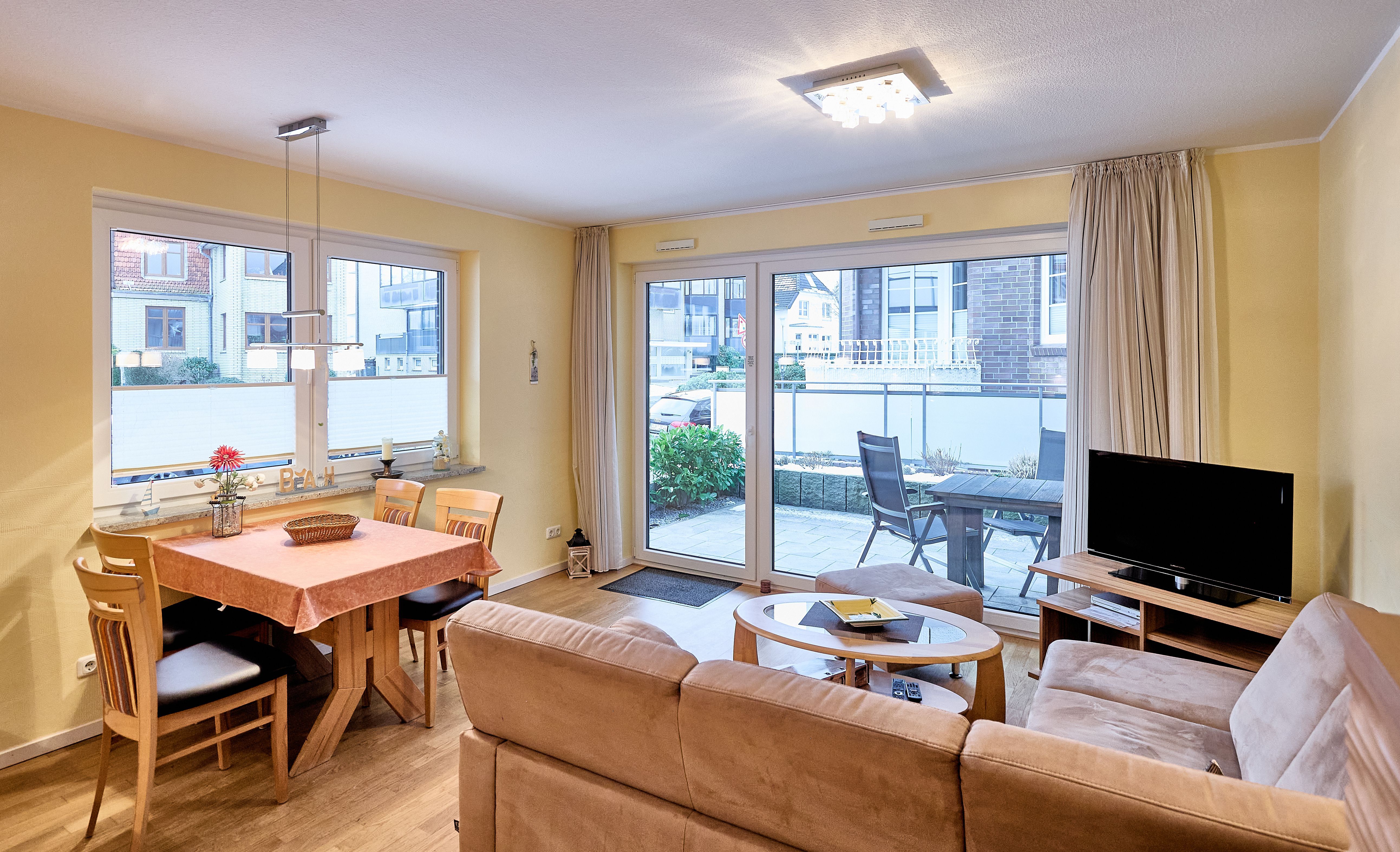 Wehrbergsdüne - FeWo 1. Eine weitere sehr hochwertige Ferienwohnung in strandnaher Lage direkt im Zentrum von Duhnen wird Sie in diesem Hause Herzlich Willkommen heißen. Diese Ferienwohnung wird für 2-4 Personen (3 Erw. und 1 Kind) für Sie hochwertig und gemütlich eingerichtet und wird an der Ausstattung nichts missen lassen. Großzügiger Wohn- und Essbereich mit einer tollen Einbauküche, 2 Schlafzimmer (1mal Doppelbett, 1mal Einzelbett mit einem Duoausschub für ein weiteres Kind), Bad mit Dusche/WC und Fenster, Stellplatz direkt am Haus, komplett möblierte Südwest Terrasse.