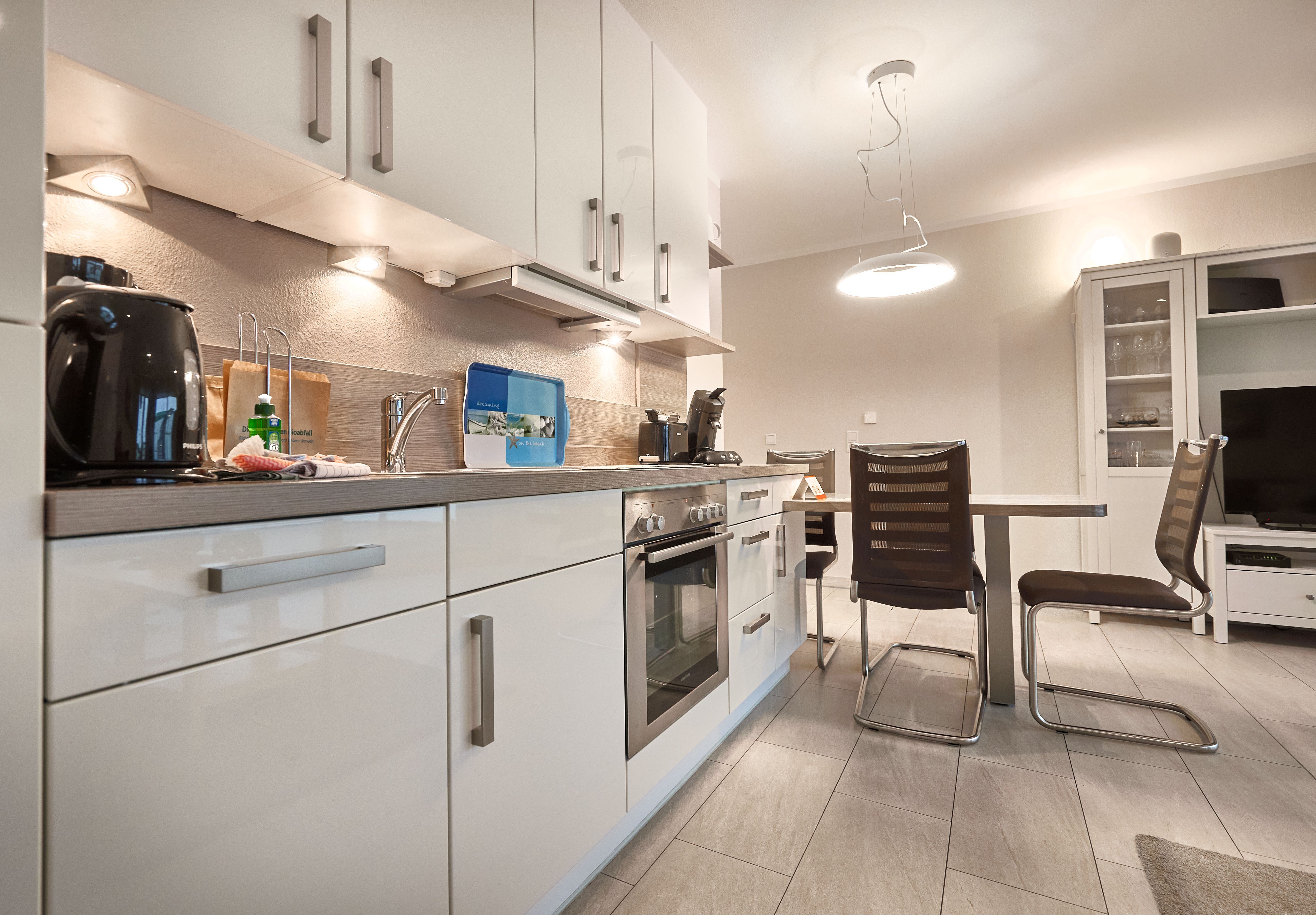 • Zur Ausstattung gehören unter anderem 2 HDTV-Flatscreens (1x 50 Zoll SMART TV), eine Hifi-Anlage mit iPod-Docking Station sowie eine Senseo-Kaffeepadmaschine.