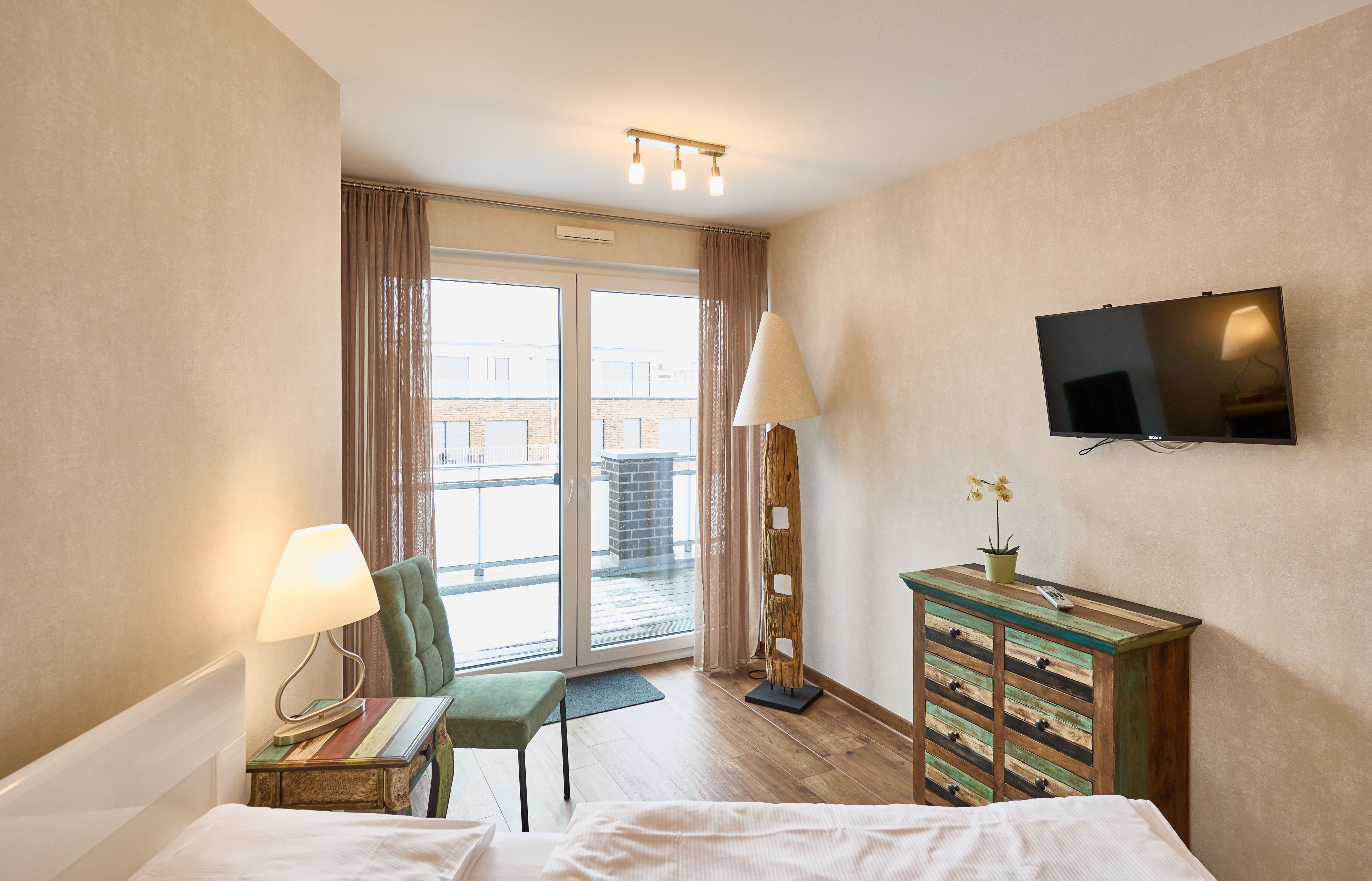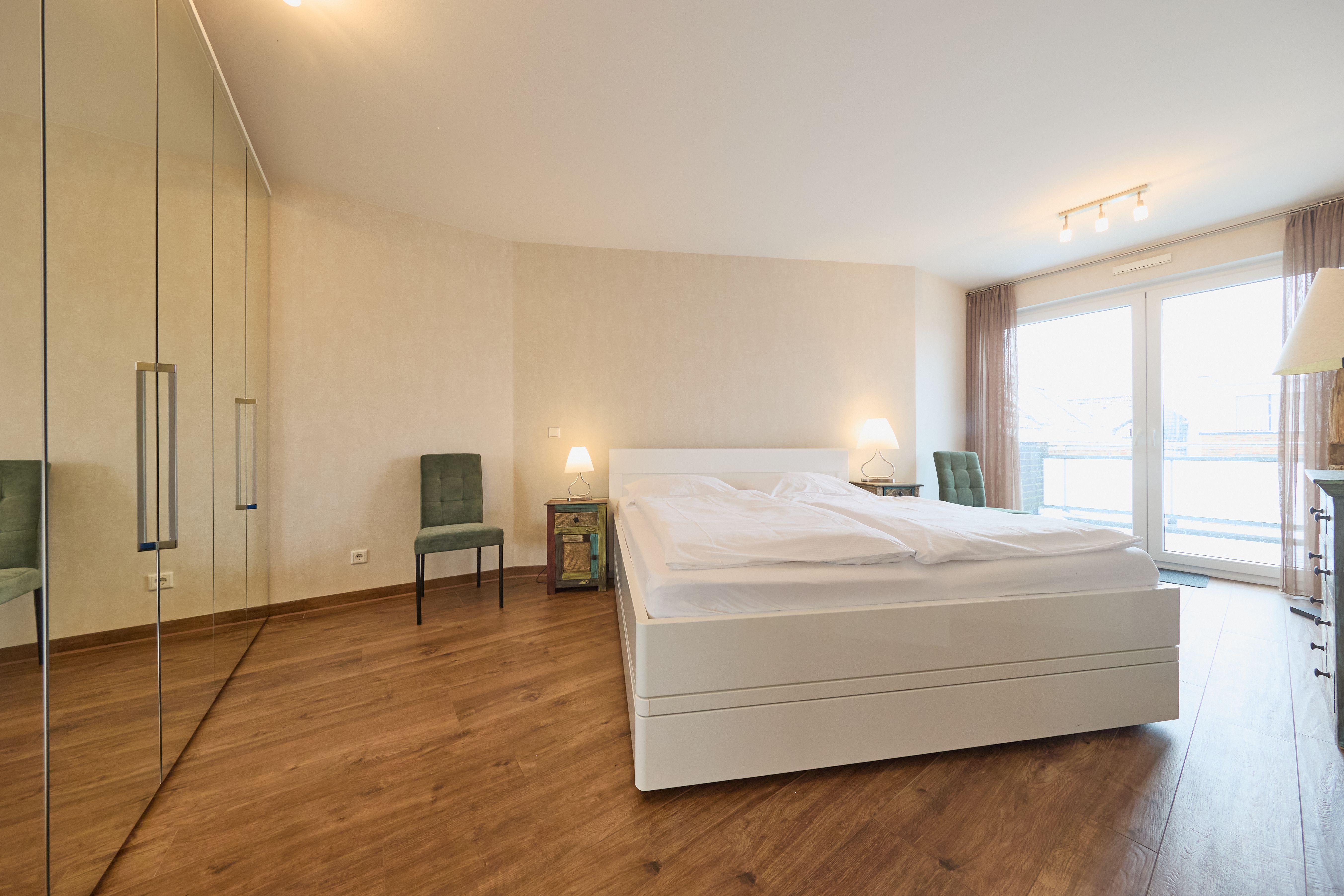 Für Unterhaltung sorgt ein umfangreiches Medienangebot: Die Wohnung verfügt über MagentaTV mit Sky/WOW (inkl. aller Sportübertragungen, wie 1. und 2. Bundesliga, Formel 1 und mehr), Netflix, Disney+, Prime Video und Apple TV. So können Sie bei schlechtem Wetter aus einer riesigen Auswahl von Filmen, Serien und Live-Sportevents wählen und die Zeit bequem verbringen. Die Smart-TVs im Wohn- und Essbereich sowie im Hauptschlafzimmer bieten dank einer schwenkbaren Wandhalterung die Möglichkeit, den Bildschirm mühelos der Sitzposition anzupassen.