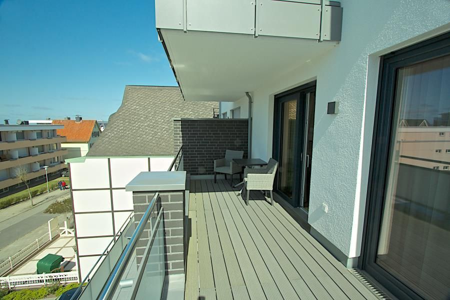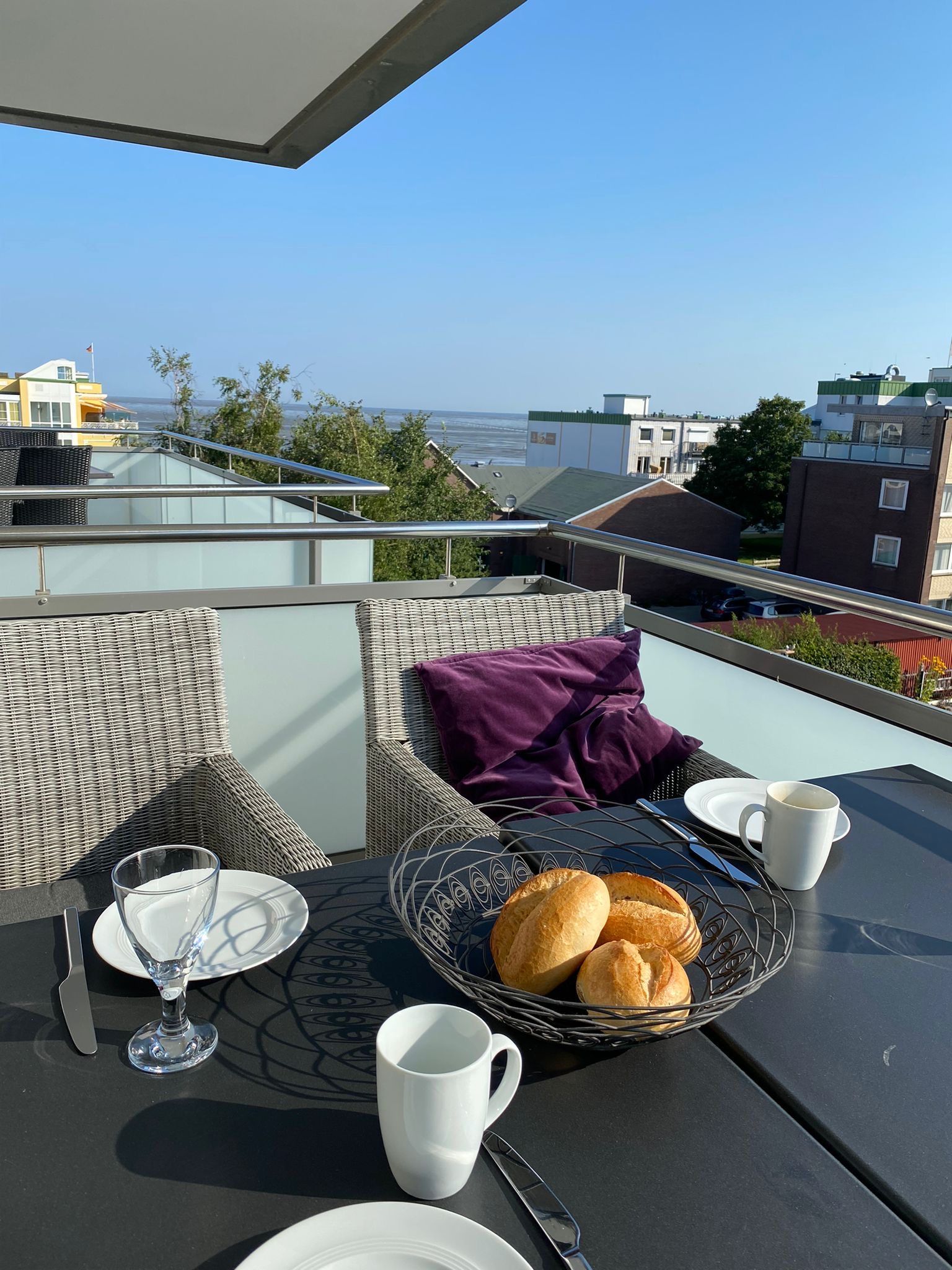 Willkommen in der Ferienwohnung Nordico in Duhnen, Nordstraße 8a, Wohnung 8. Diese elegante 3-Zimmer-Wohnung bietet Ihnen auf ca. 80 m² Platz für bis zu 4 Personen und begeistert mit einem traumhaften Meerblick, zwei Balkonen, einem Fahrstuhl sowie einem PKW-Außenstellplatz und einer Garage.