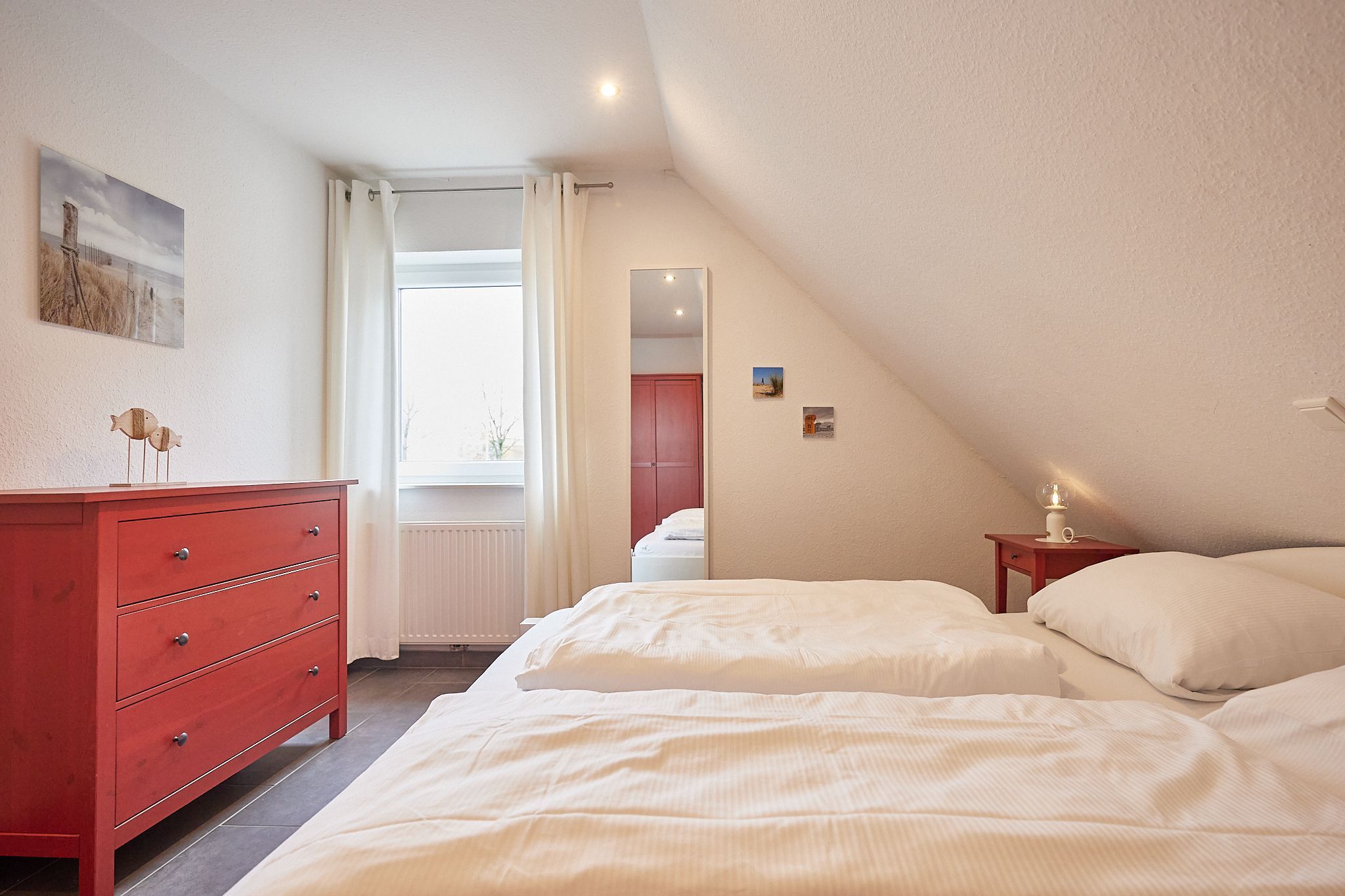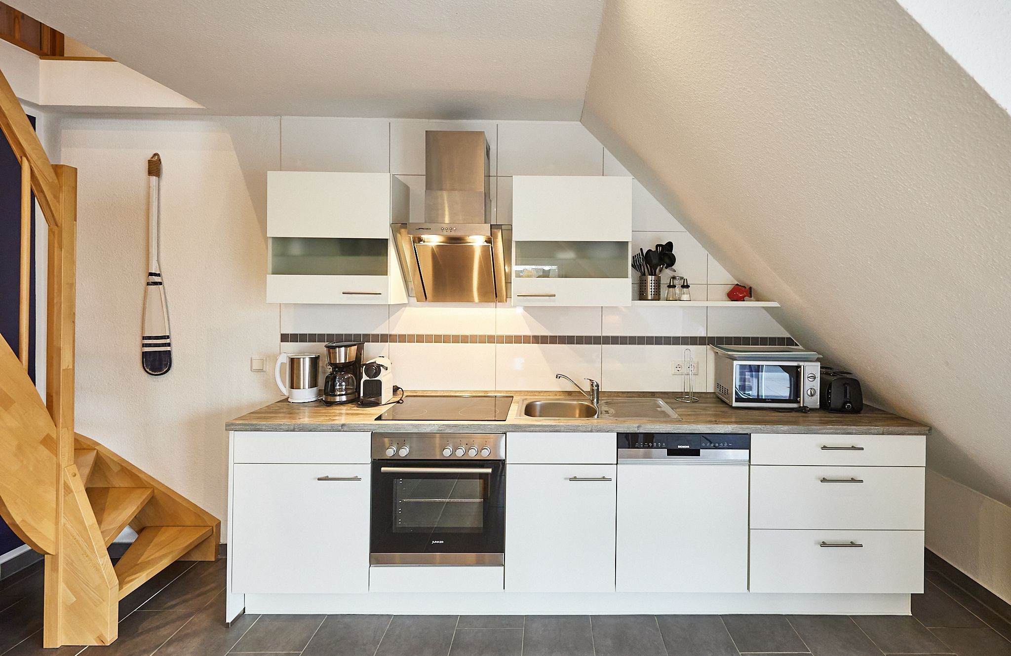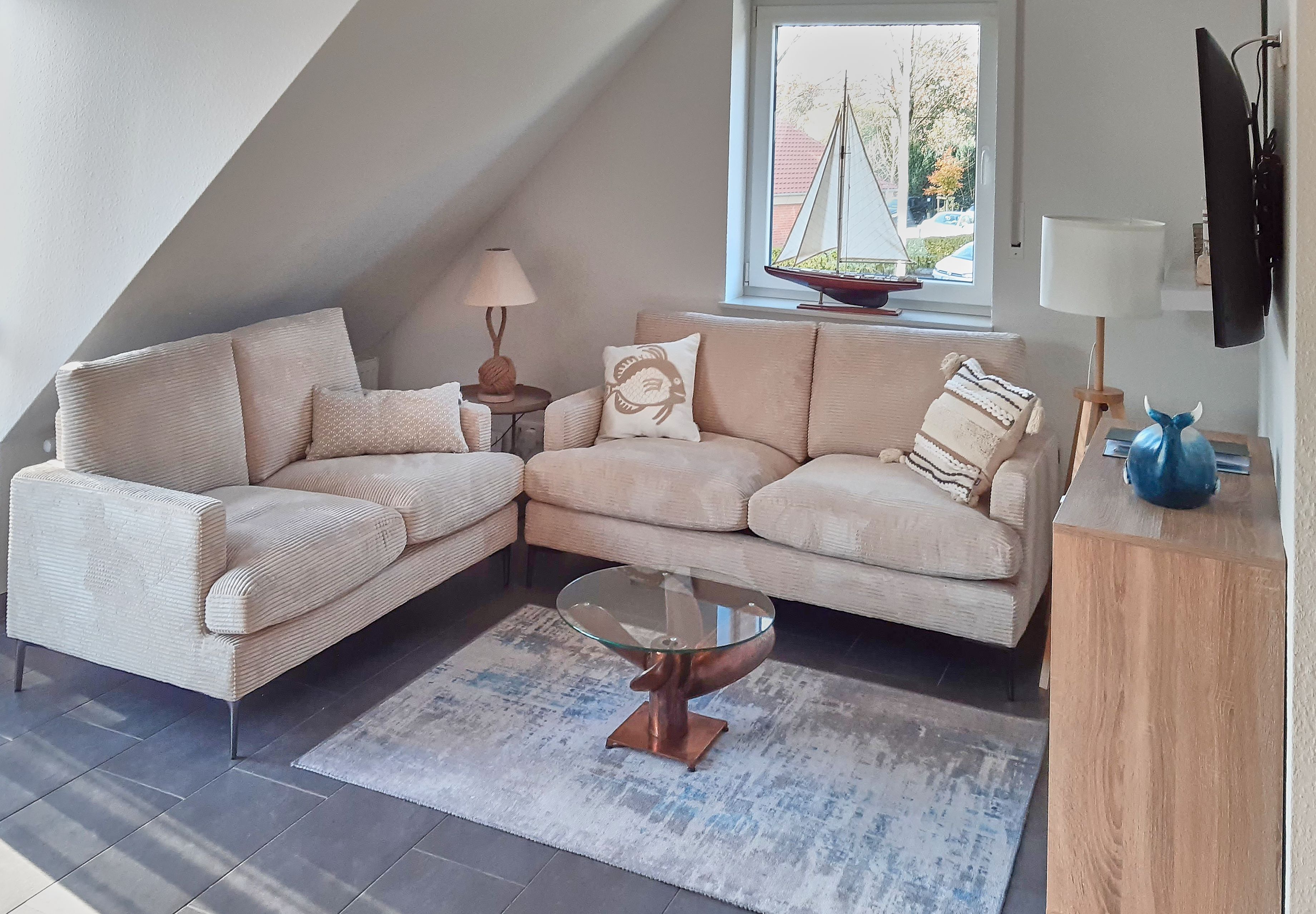 In dieser modernen und hellen, im maritimen Stil eingerichteten Wohnung Liegeplatz im Herzen von Döse empfängt Sie schon beim Betreten Nordsee-Flair. Ein geräumiger Südbalkon mit gemütlichen Balkonmöbeln lädt ganztägig zum Sonnenbaden und Entspannen ein. Die Wohnung verfügt über einen großzügigen und komfortablen Wohn- und Essbereich mit stilvollem Mobiliar und SAT-Fernsehen sowie einer komplett ausgestatteten Einbauküche. Die zwei Schlafzimmer sind mit einem Doppelbett und zwei Einzelbetten ausgestattet. Ein neuwertiges Duschbad mit WC und Fußbodenheizung ist ebenfalls vorhanden. Bitte beachten Sie, dass das 2. Schlafzimmer sich im Dachgeschoss befindet und diese über eine Treppe (siehe Fotogalerie) erreichbar ist.
