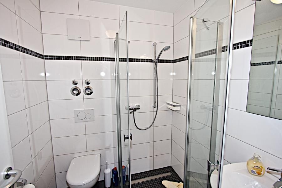 Sie haben 2 Duschbäder mit WC, im Untergeschoss sogar mit Fenster für Tageslicht. Eines befindet sich im Erdgeschoss und eines im Untergeschoss. In der Anlage befindet sich noch eine zur Wohnung dazugehörige Waschmaschine und ein Trockner, für unsere Gäste dieser Wohnung zu alleinigen Nutzung.